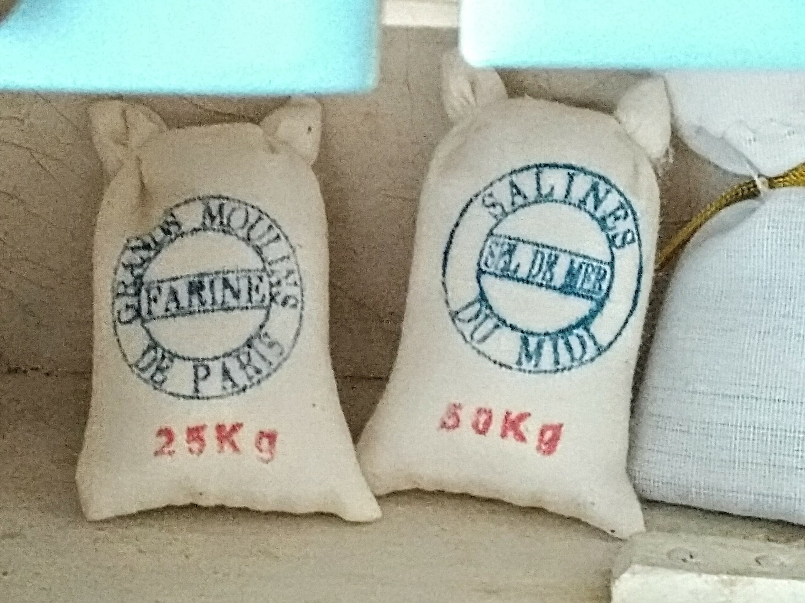 Cena je za sadu dvou kusů – pytel s moukou a pytel se solí.