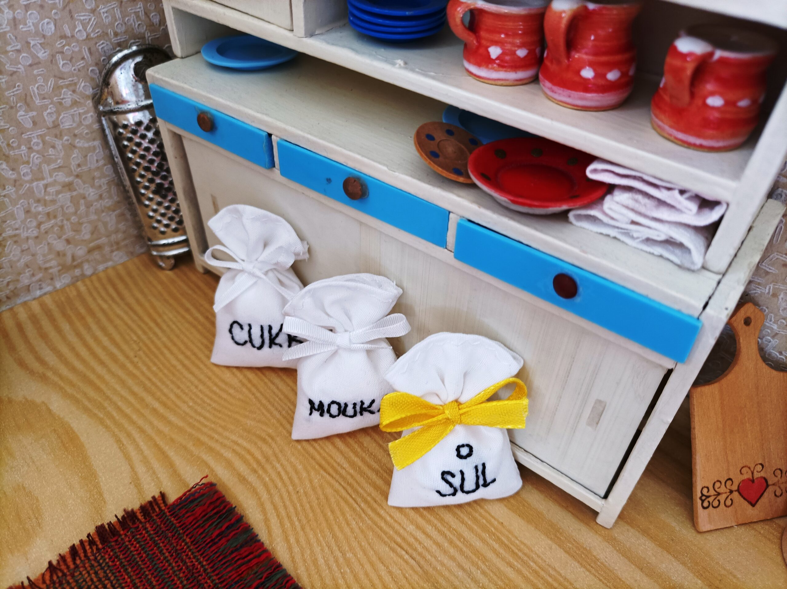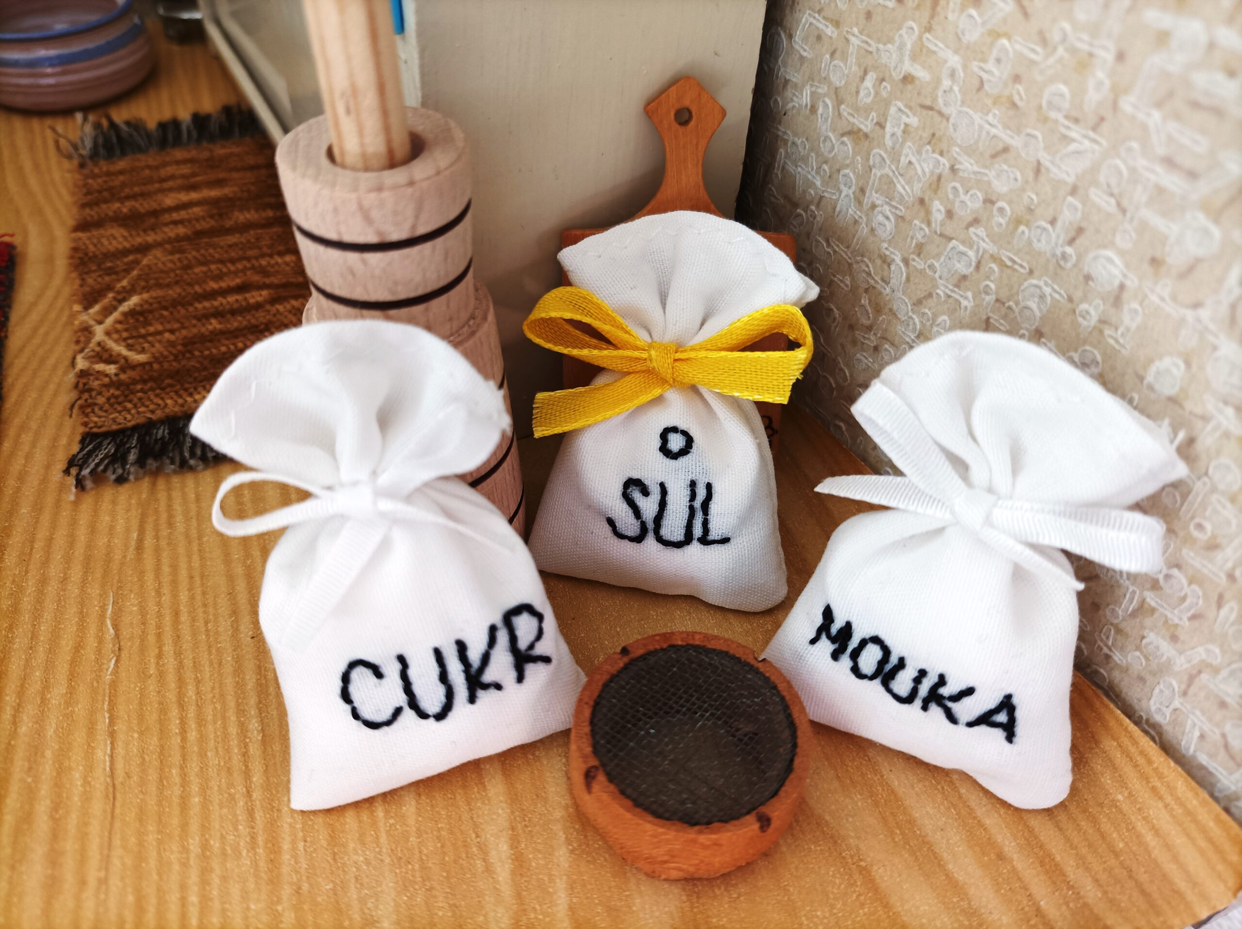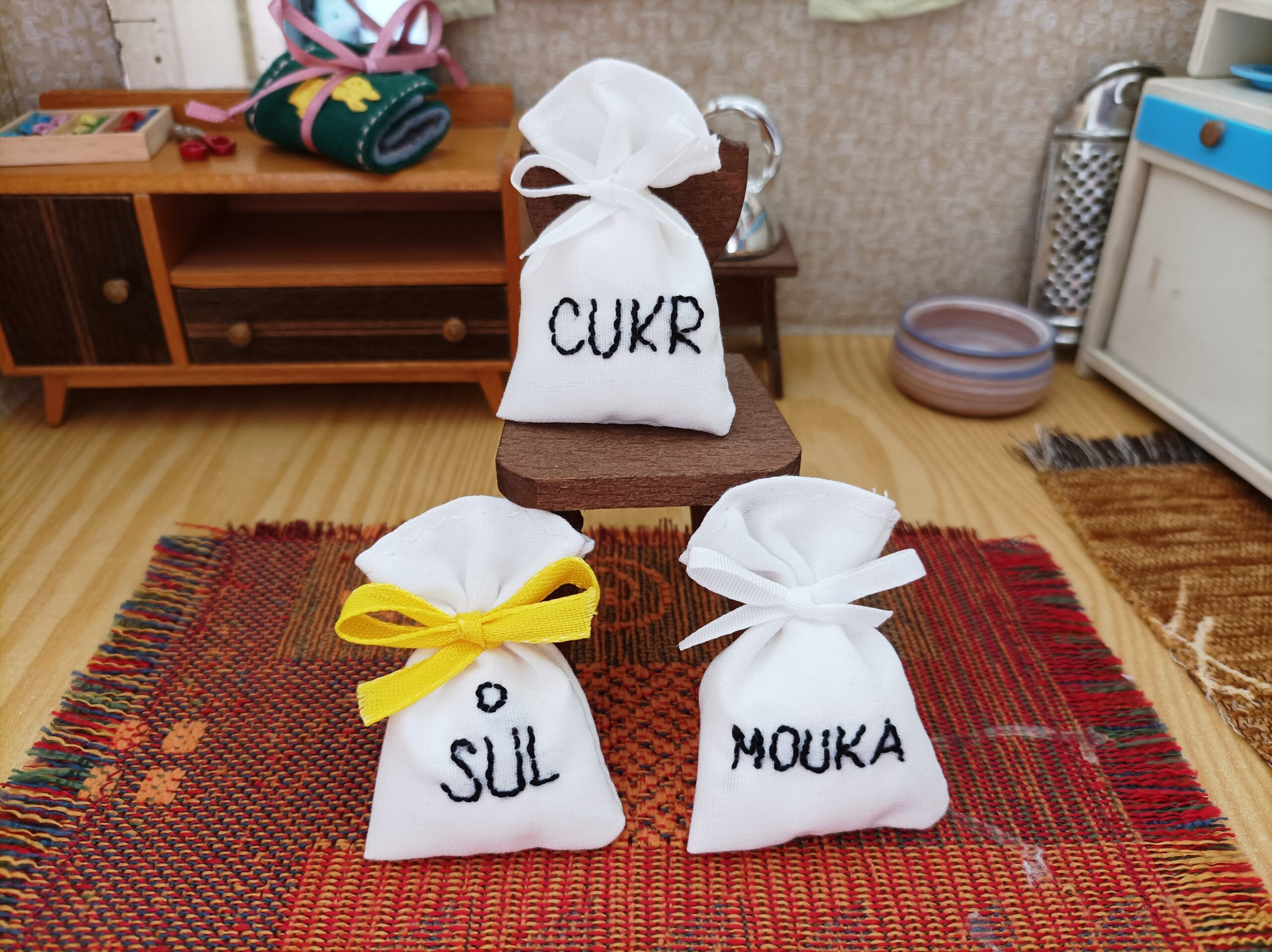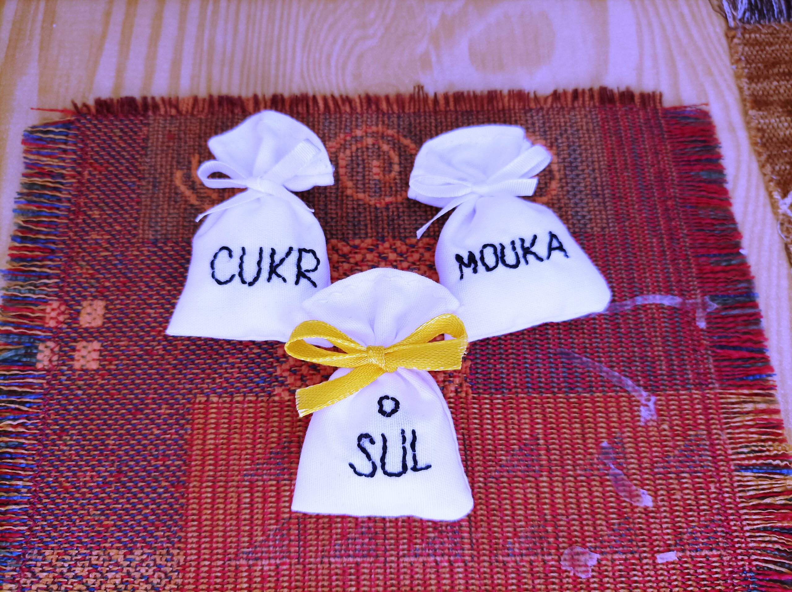Vyšívané pytlíky na zásoby do kuchyně nebo koloniálu.