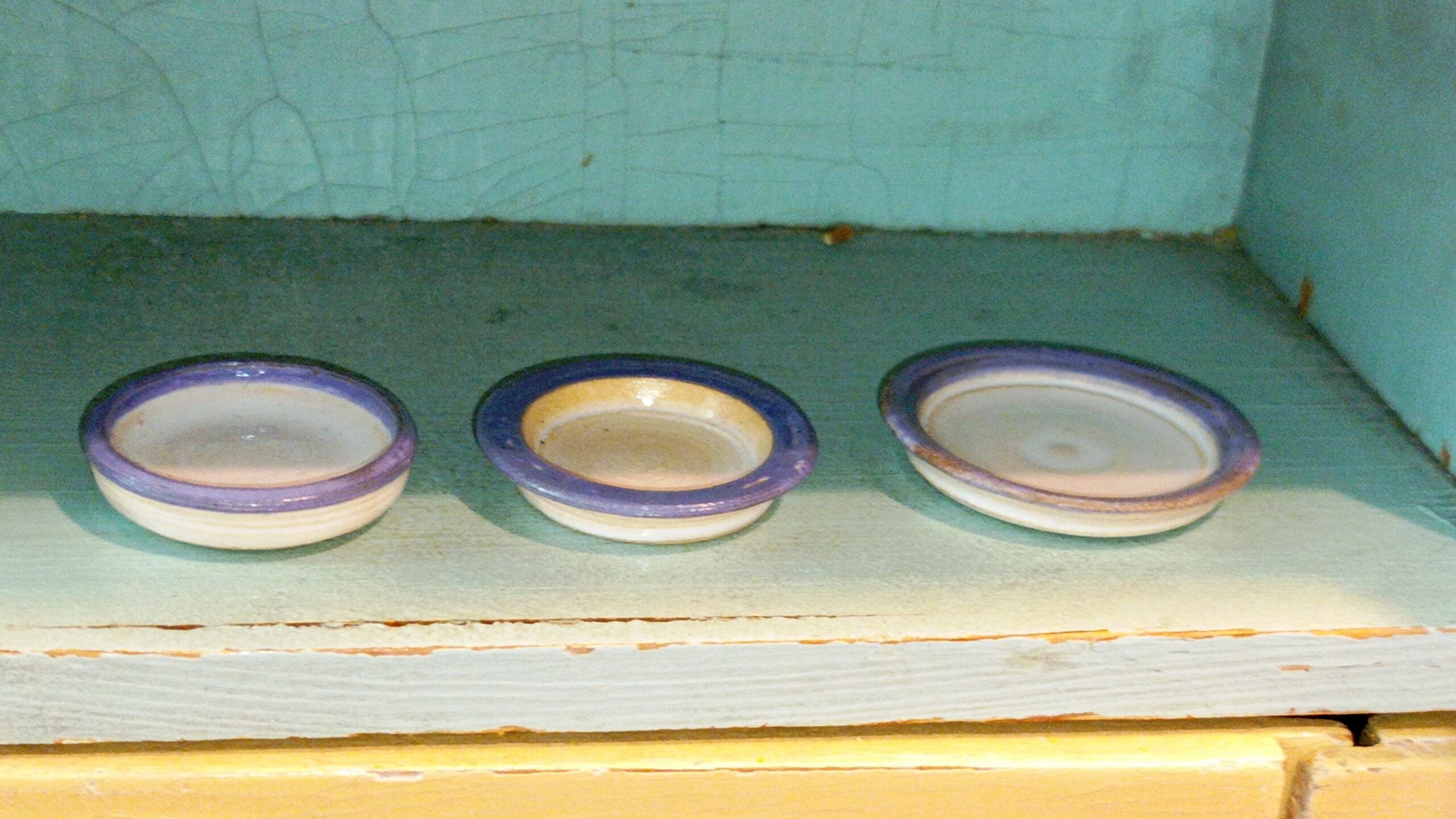 3 talířky s modrým okrajem