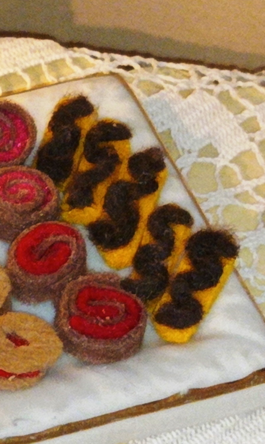 Oranžová chňapka jako doplněk do kuchyňky pro panenky délka bez poutka: 4,5 cm materiál: filc
