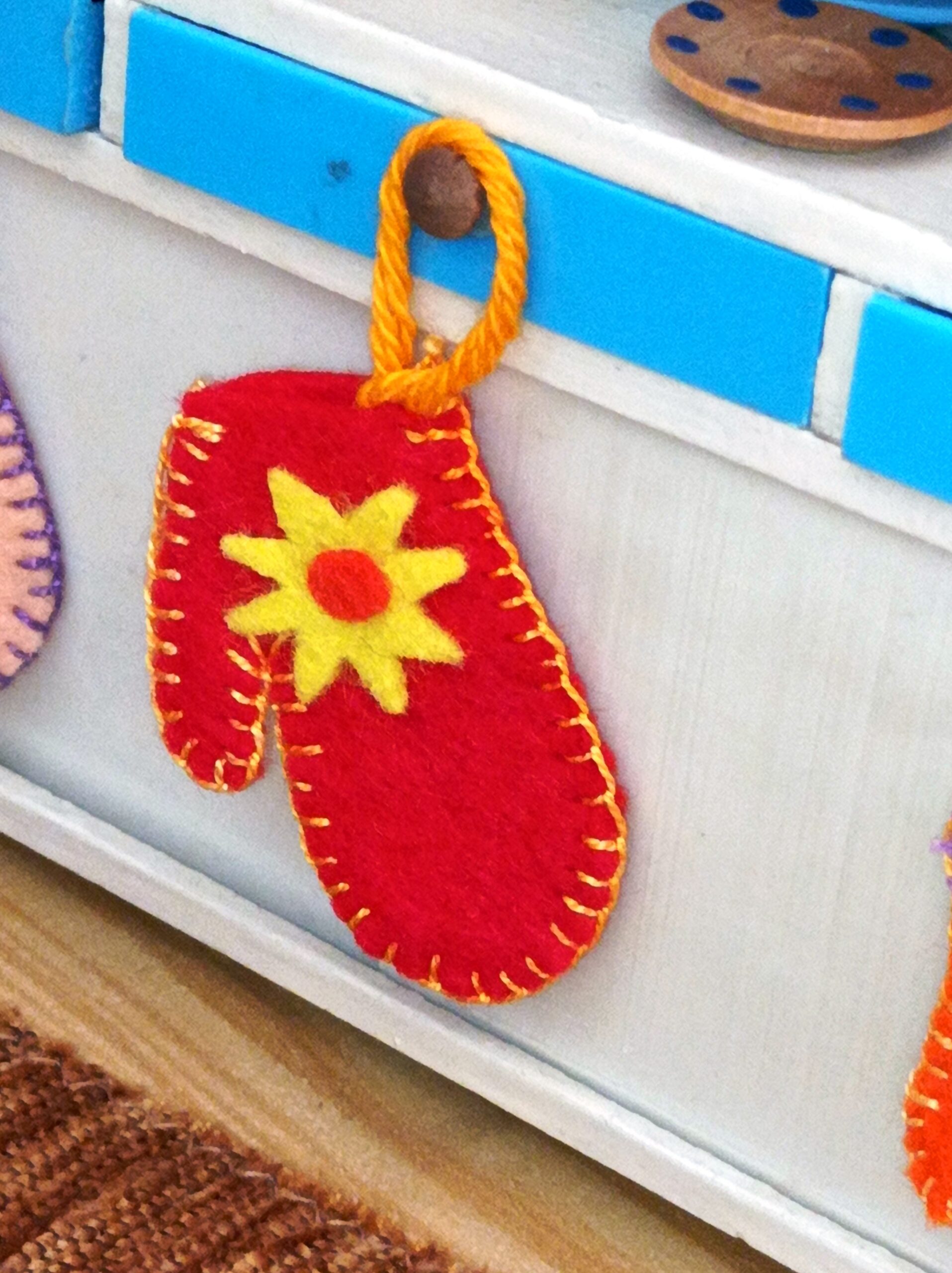 Červená chňapka jako doplněk do kuchyňky pro panenky