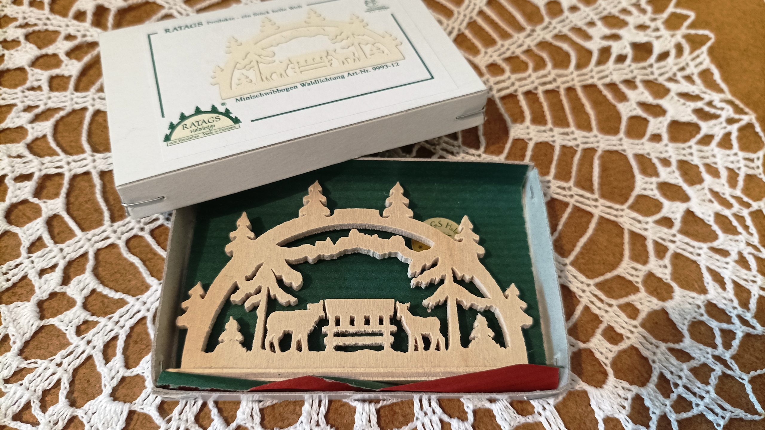Zmenšenina klasického německého svícnu, který se v originále jmenuje Schwibbogen.