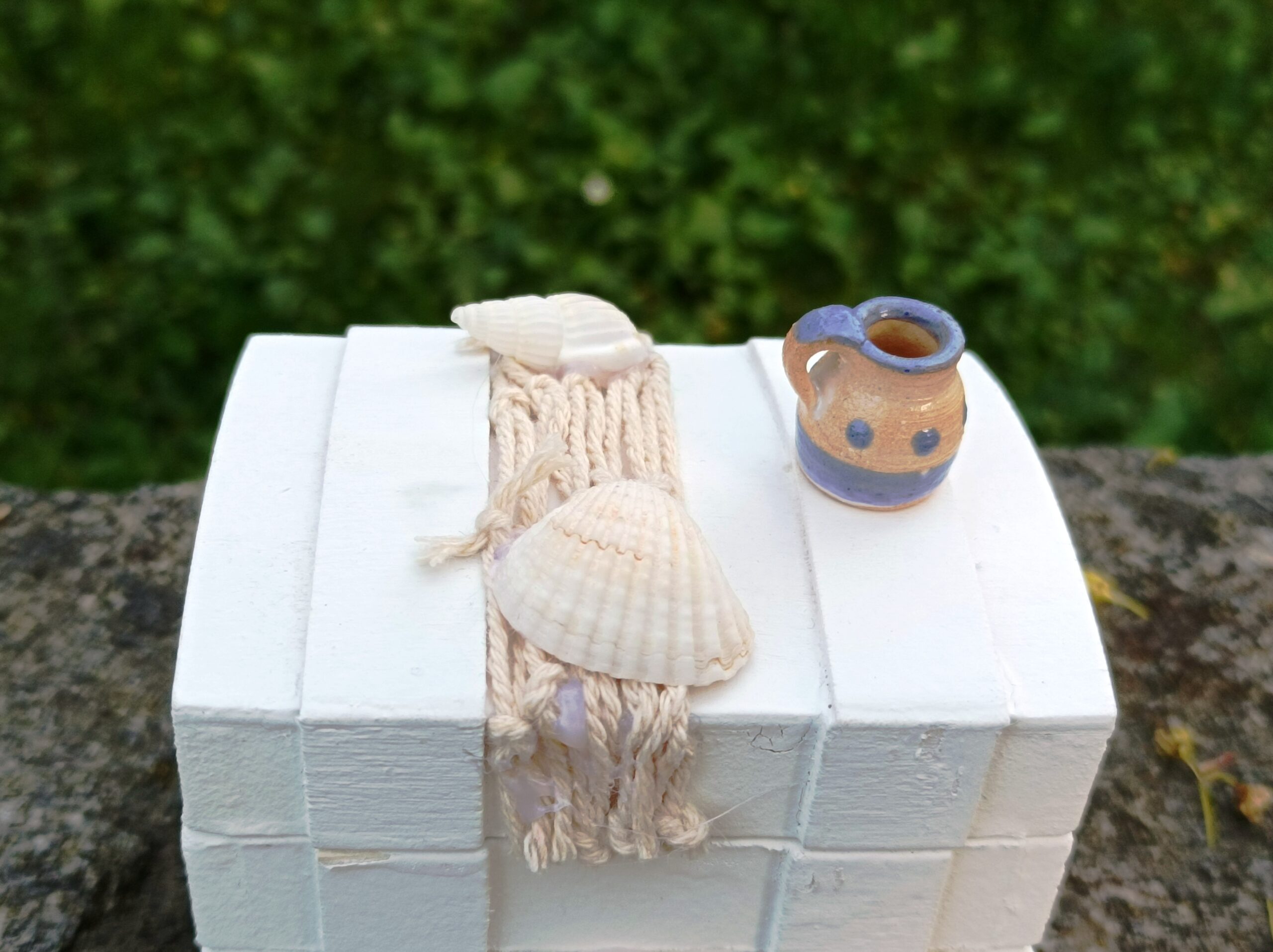 Truhla na poklady s rybářskou sítí a mušličkami