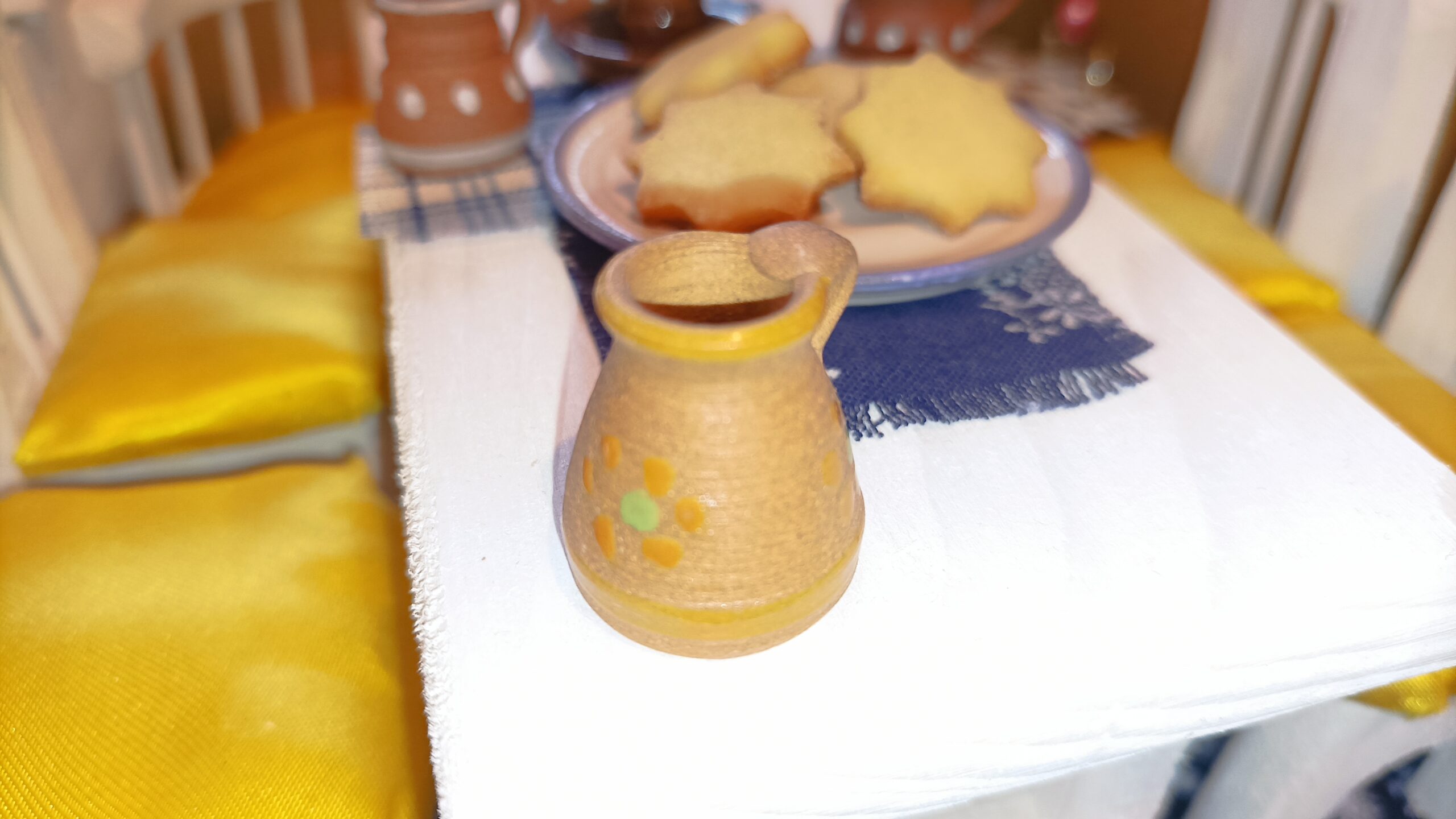 Hliněný džbánek se třemi nenápadnými kytičkami