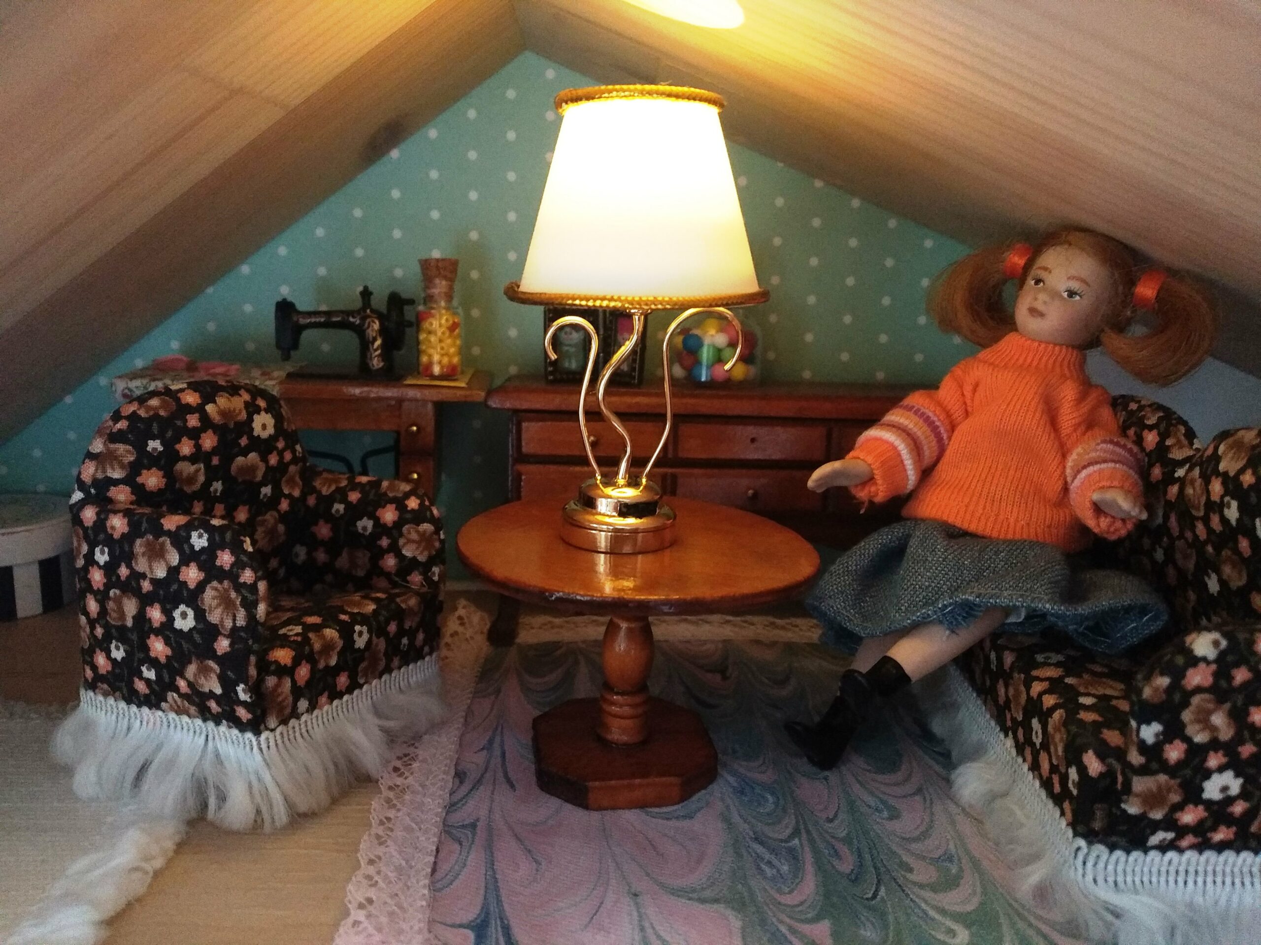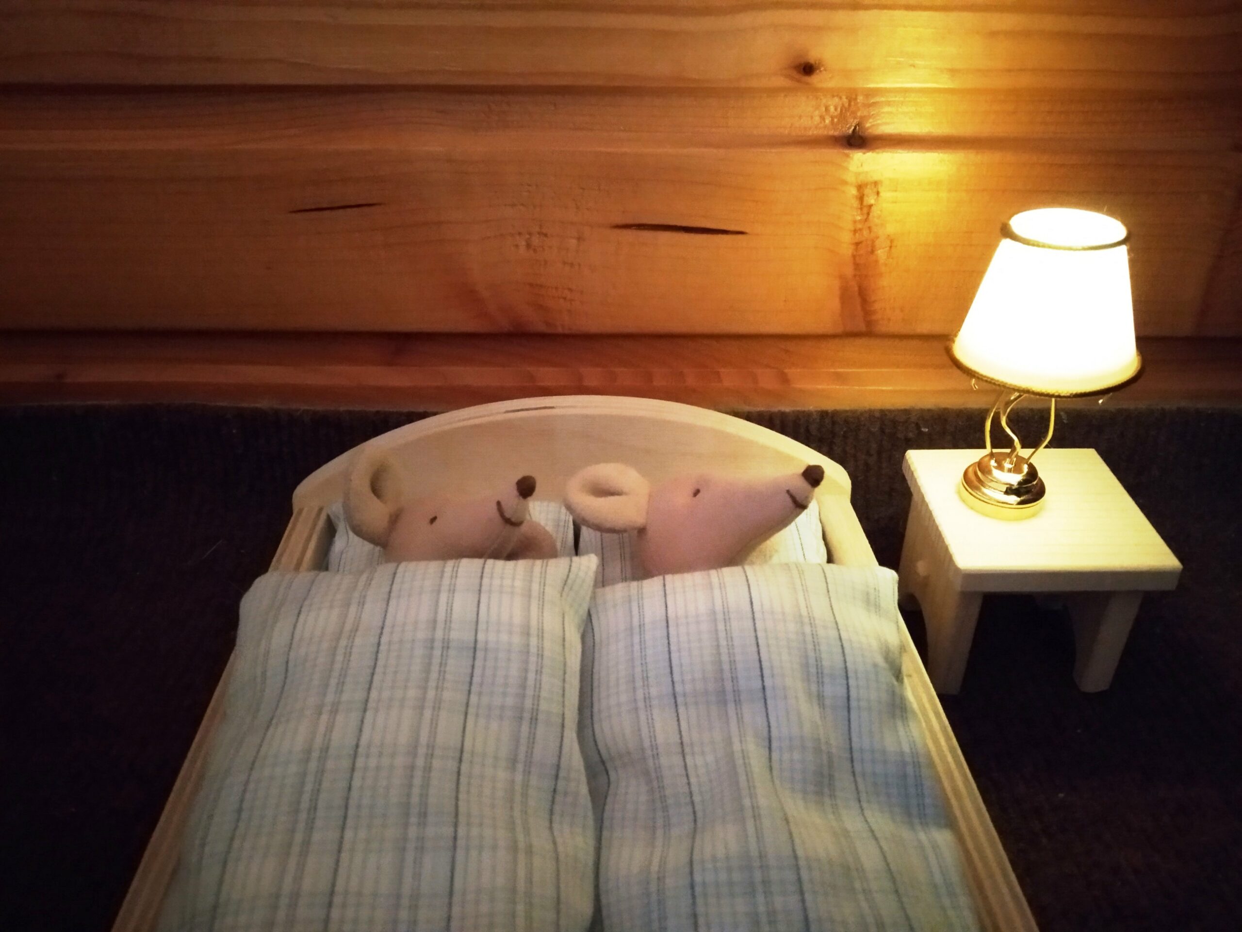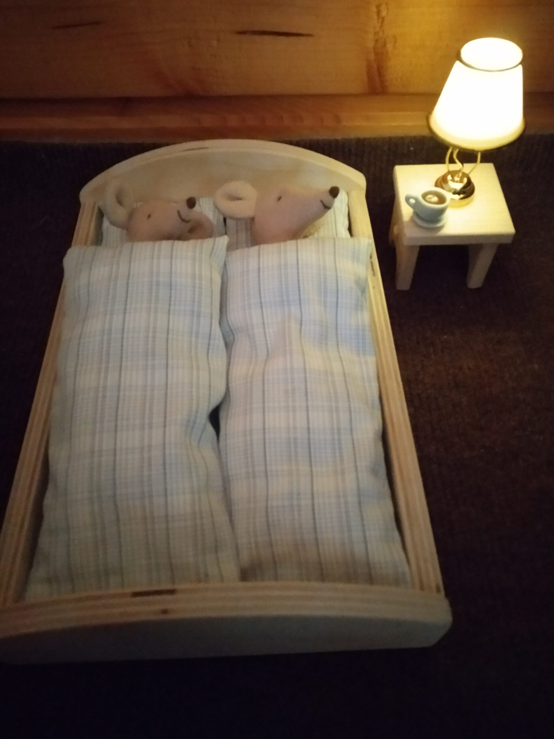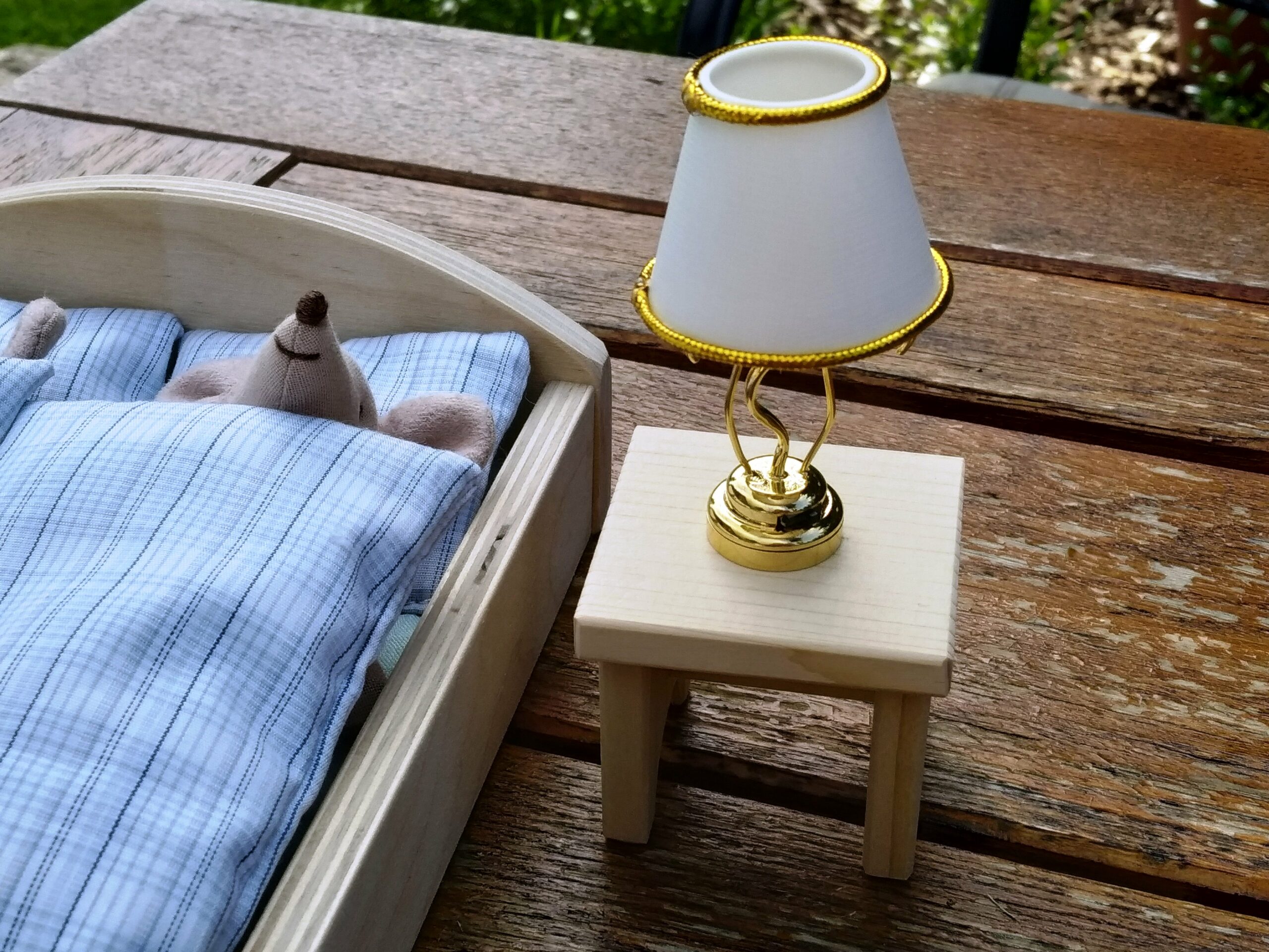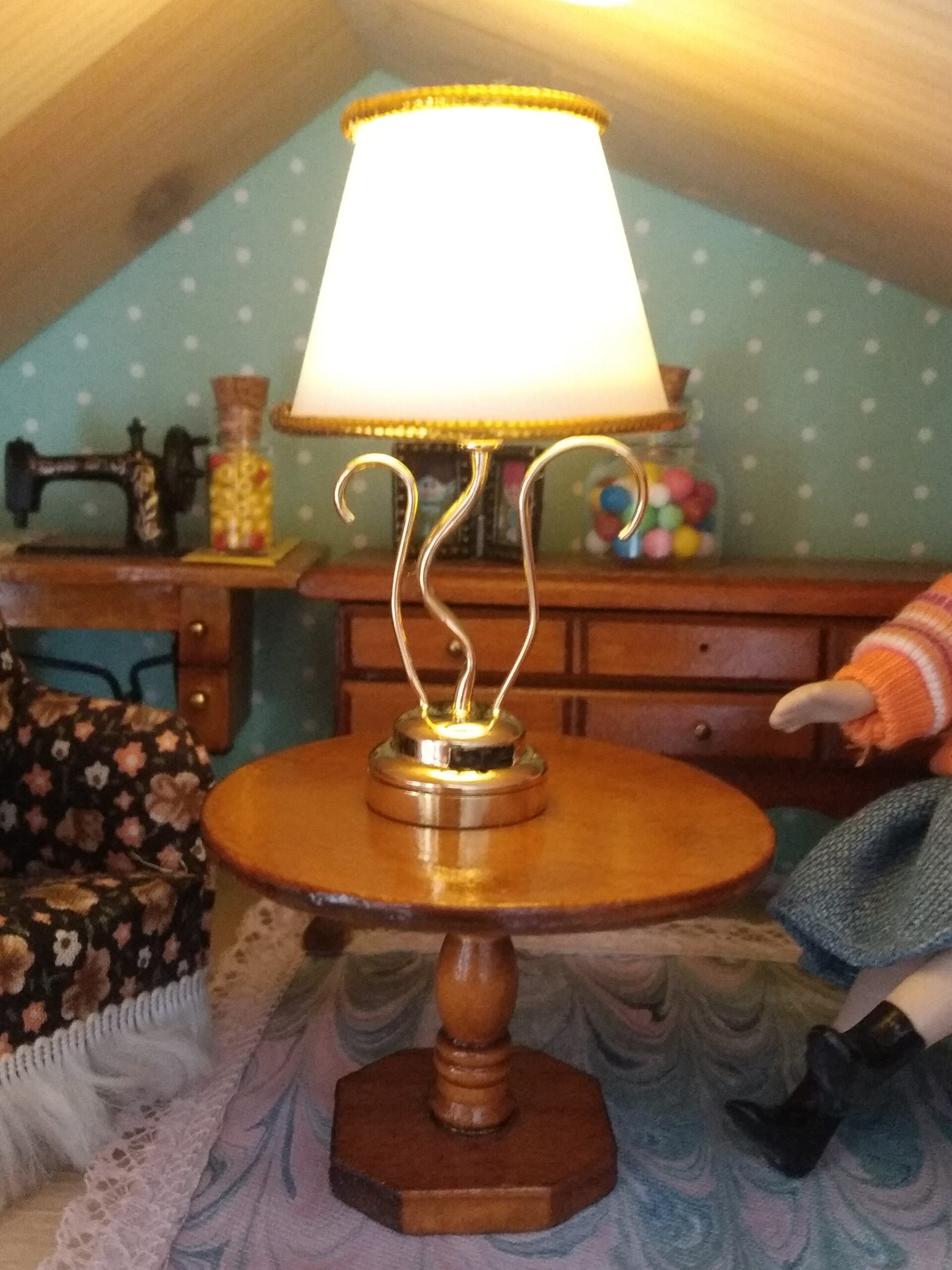Lampička má v základně jednoduchý vypínač jako skutečná lampa.