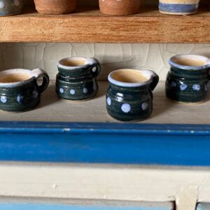 Jsou to hrníčky v poličce (poličky najdete v obchodě – do vyprodání), přední řada hrníčků na stole a hrníčky v kredenci (kromě těch na kredenci, ty spadají do větší kategorie).
