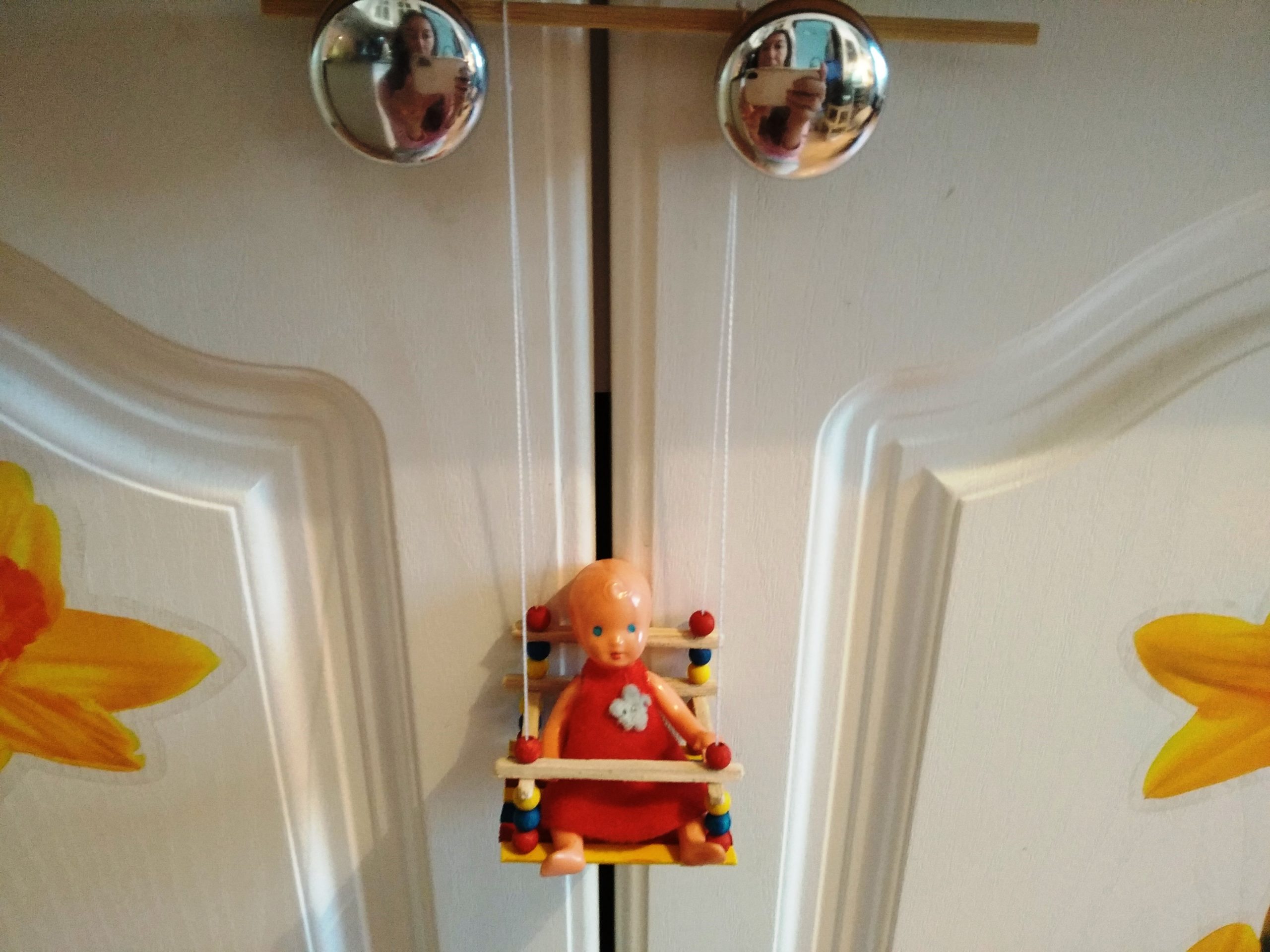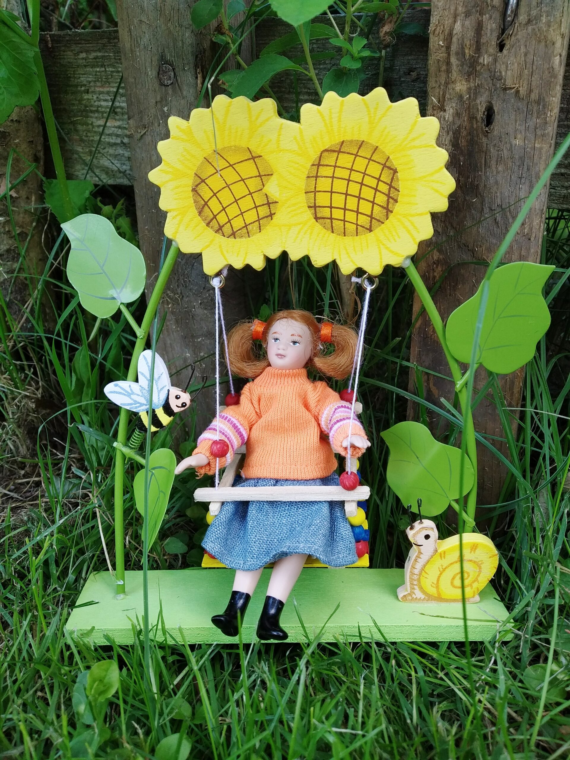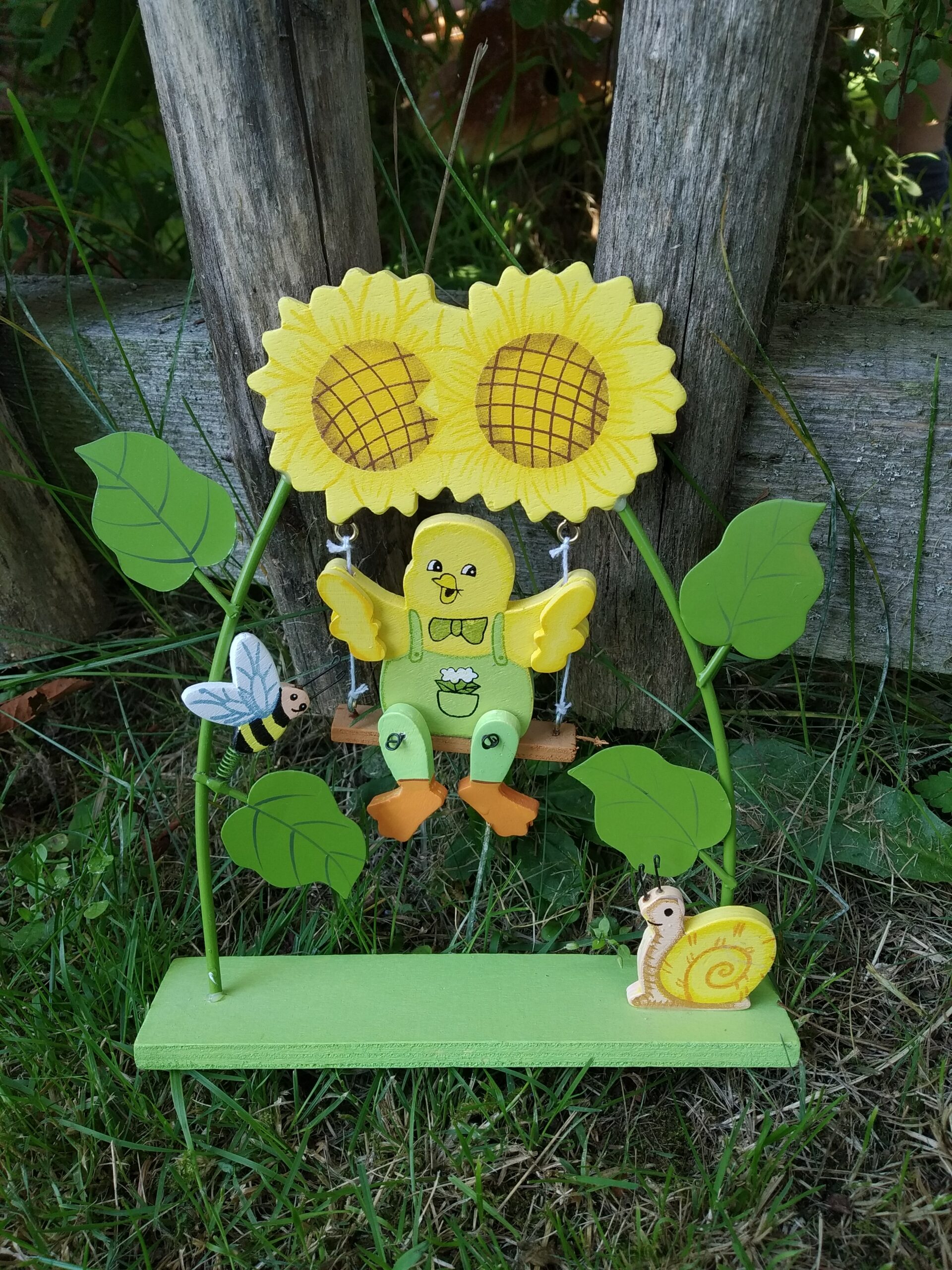 Nápad: Pokud doma náhodou máte podobnou dekoraci – kuře jsem odmontovala a konstrukce výborně slouží pro houpačku (viz poslední dvě fotky).