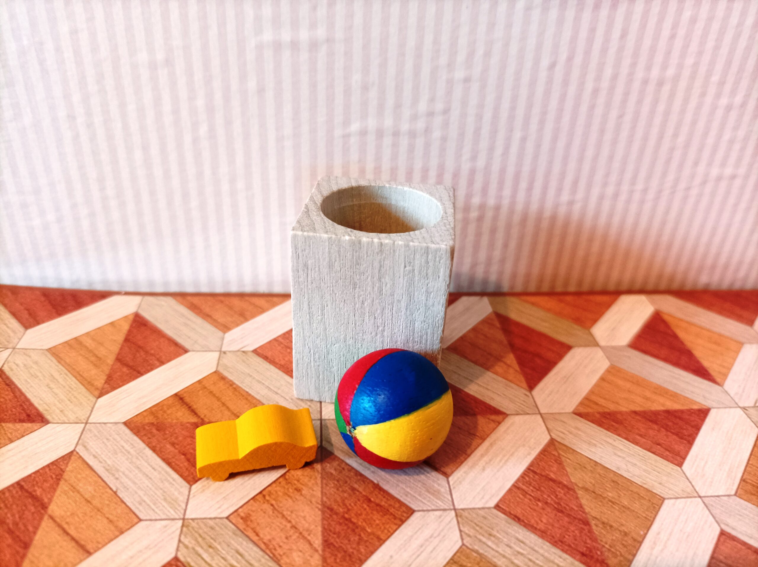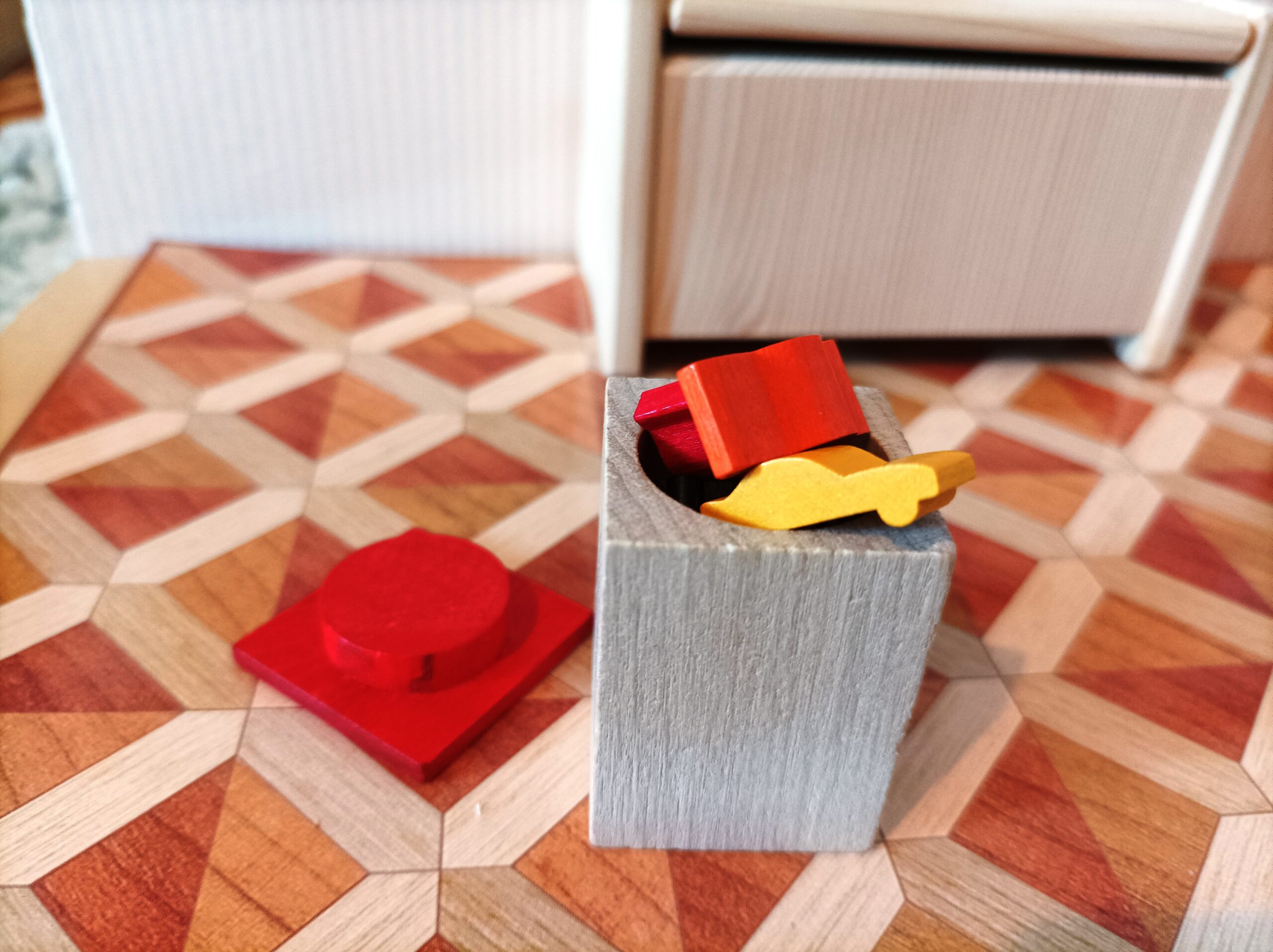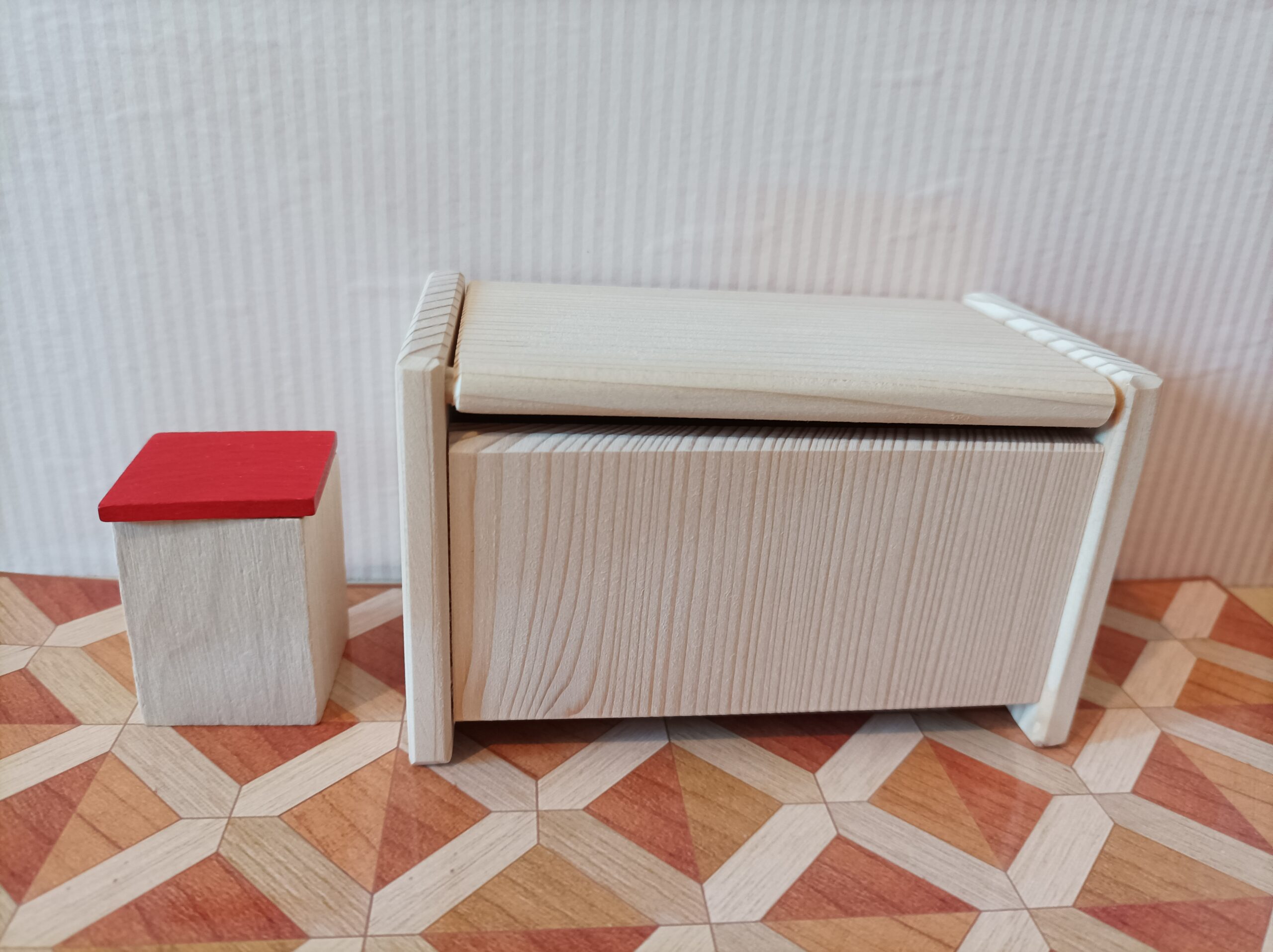 Dřevěný koš, který má široké využití od koše na hračky, koše do kanceláře nebo třeba židlička navíc.