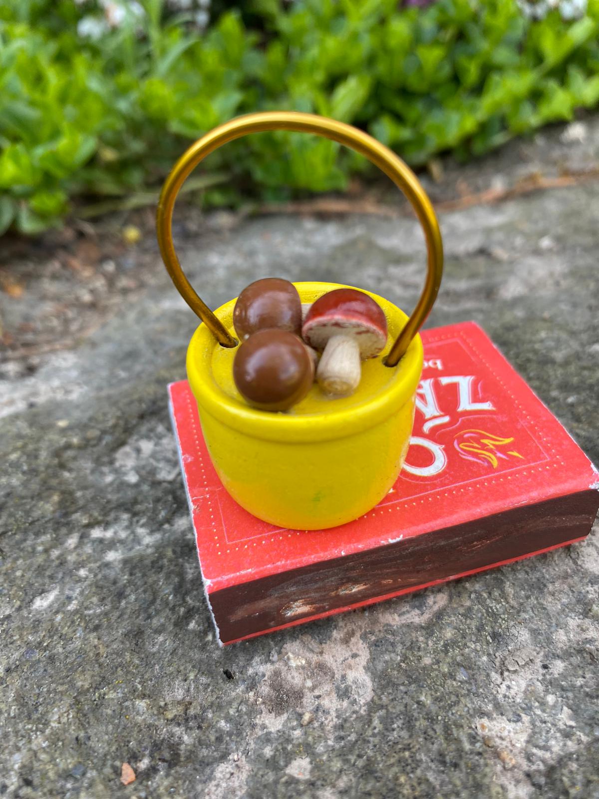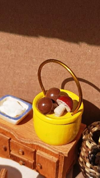 Dřevěný košík a dřevěné houbičky