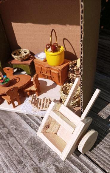 Výstavní koutek / Pokojíček K vlastnímu vytapetování, dozdobení a zařízení. Je to ten s koupelnou. délka: 28 cm výška: 20,5 cm poloměr: 31,2 cm materiál:…