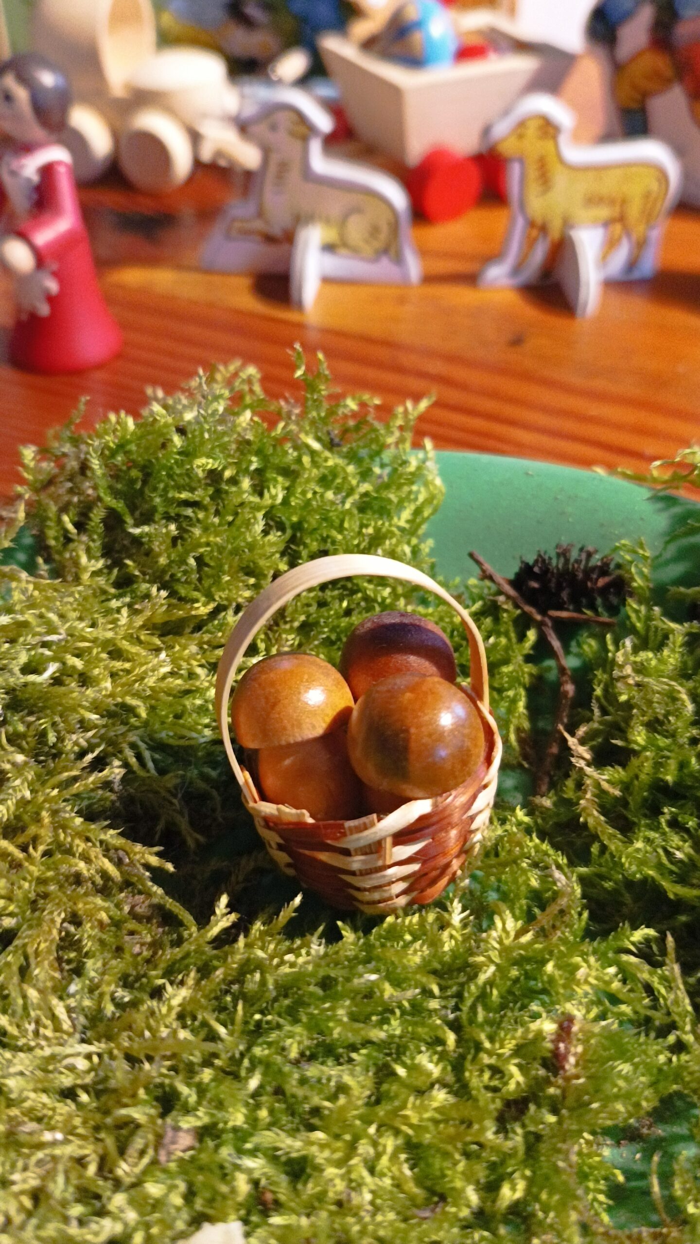 Košík se 3 velkými dřevěnými hřiby.