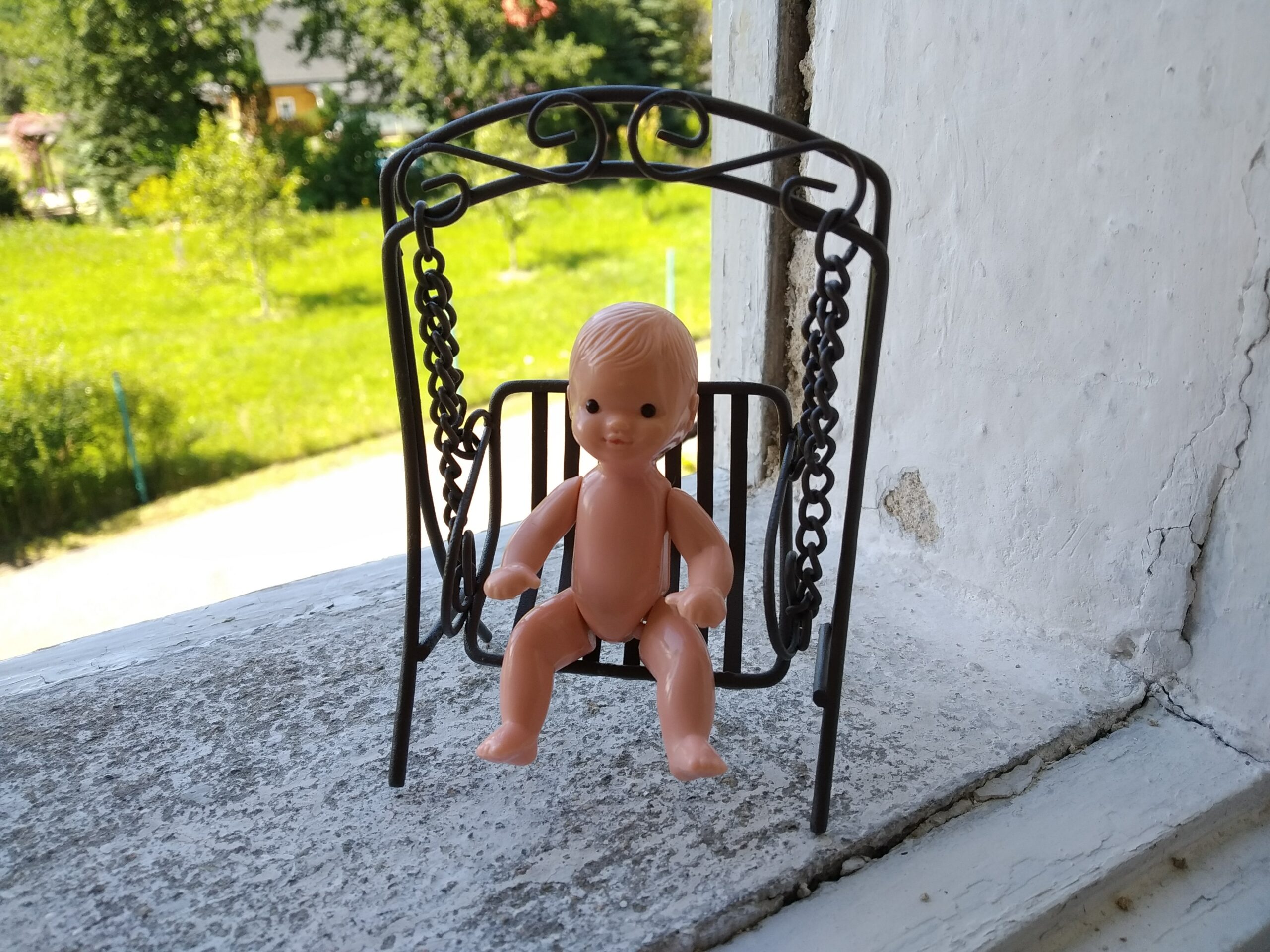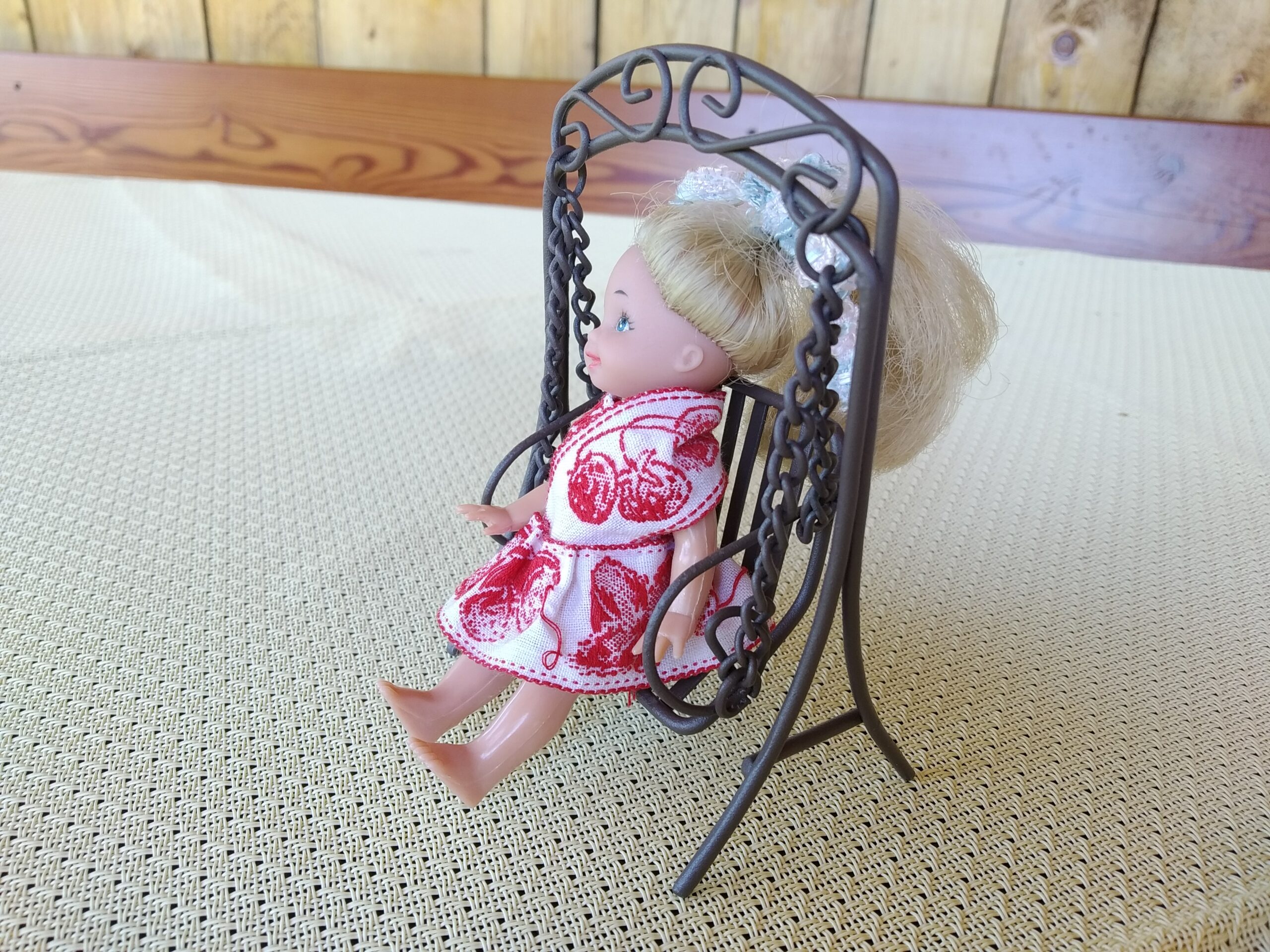 Panenky – figurantky – sedí celkem pohodlně, ale pro jistotu bychom doporučili je k houpačce třeba jemně přivázat nitkou, aby nevyklouzávaly.