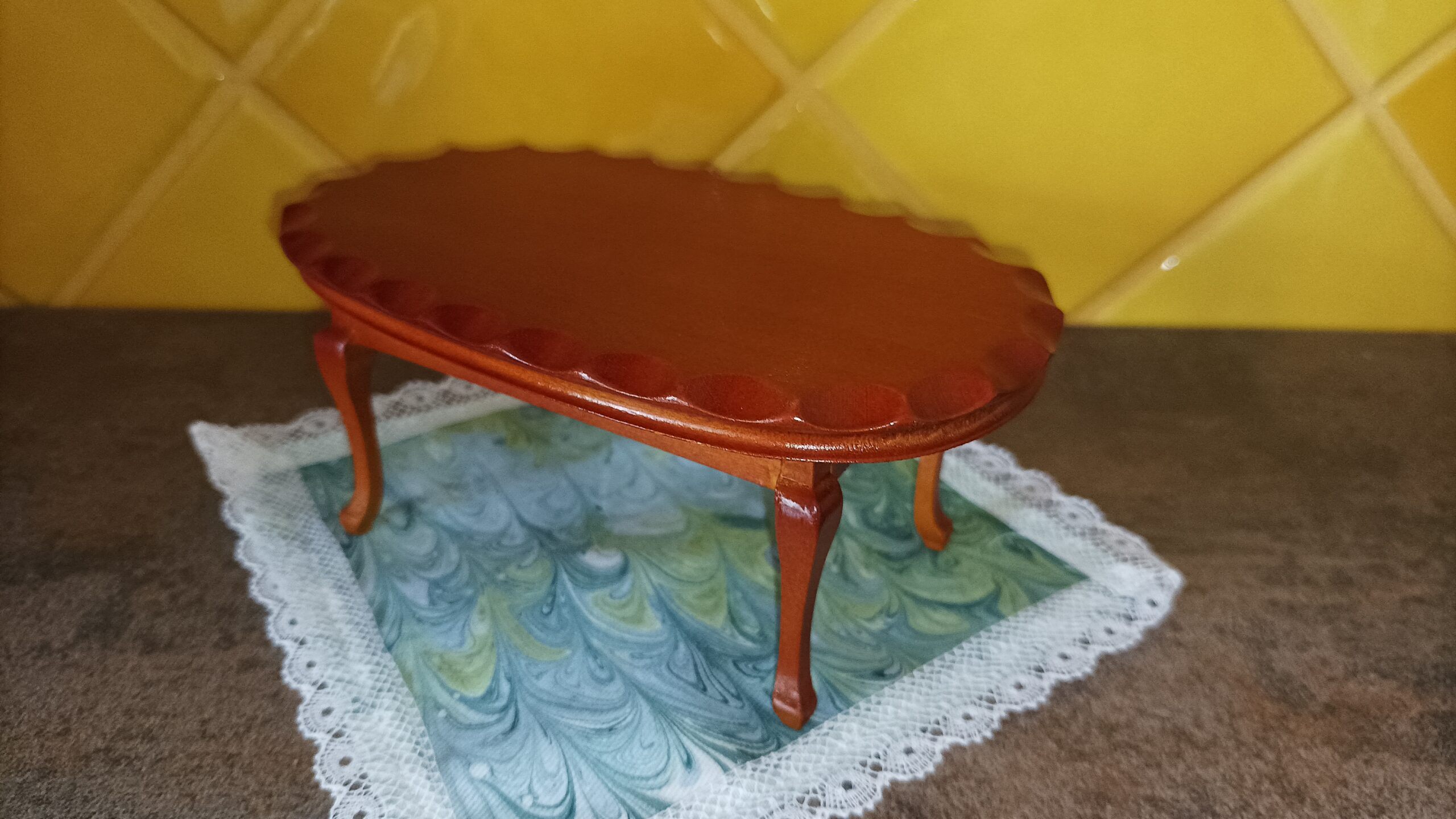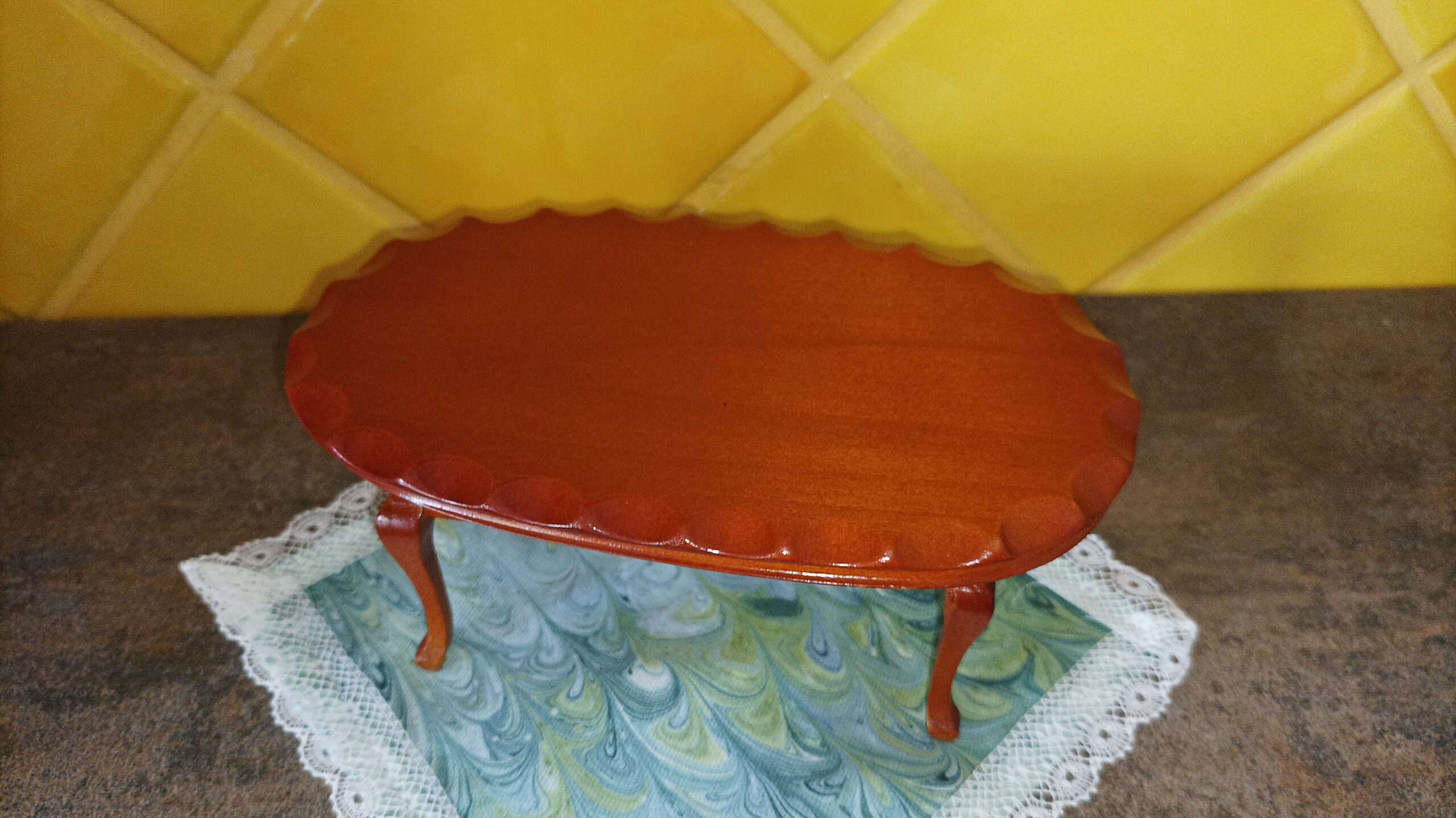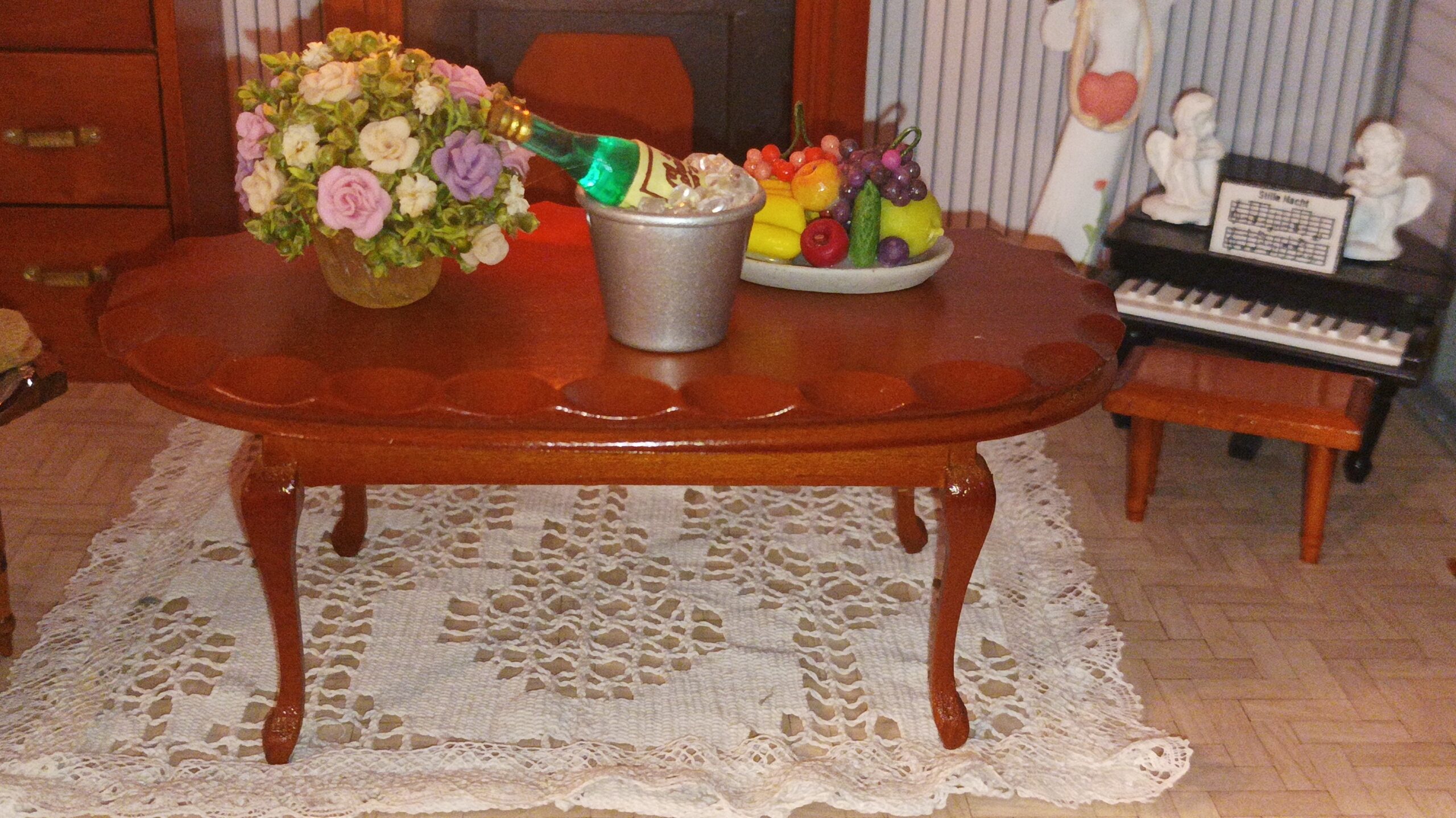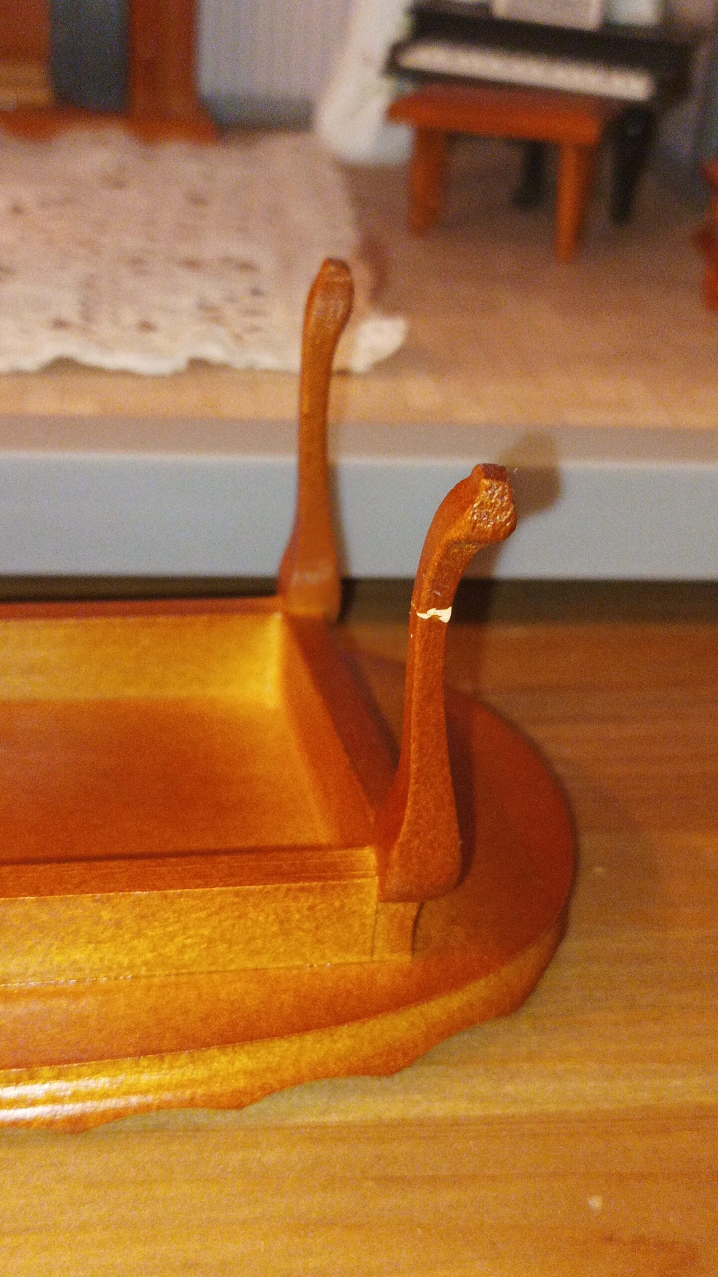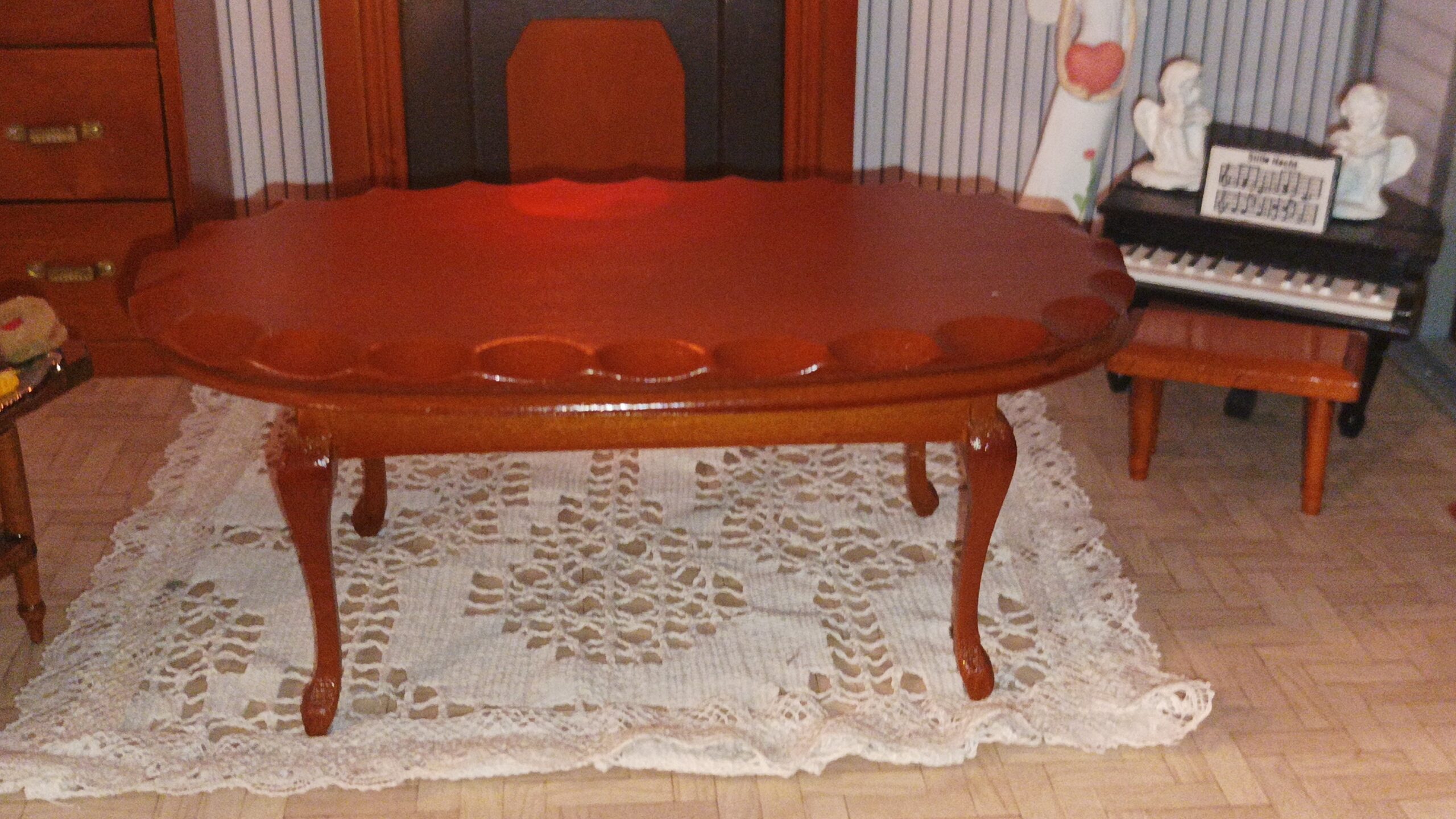 Výstavní koutek / Pokojíček K vlastnímu vytapetování, dozdobení a zařízení. Je to ten s koupelnou. délka: 28 cm výška: 20,5 cm poloměr: 31,2 cm materiál:…