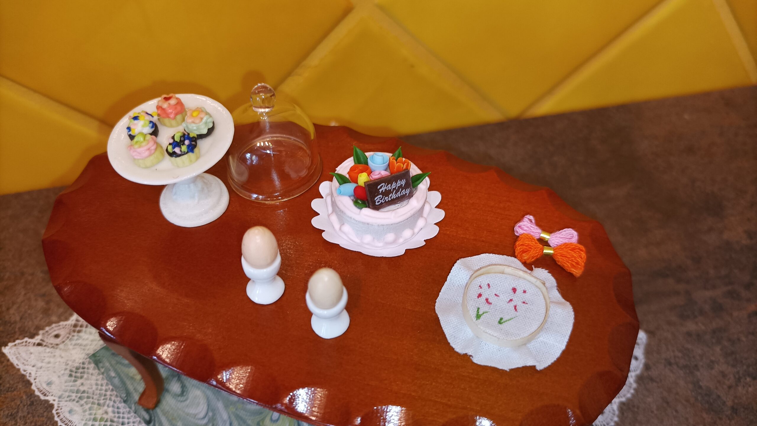 Záclonka do domečku pro panenky šířka: 15,5 cm délka: 13 cm Prodáváme 2 kusy, které se liší jen barvou korálků na konci konzole – růžové a žluté.…