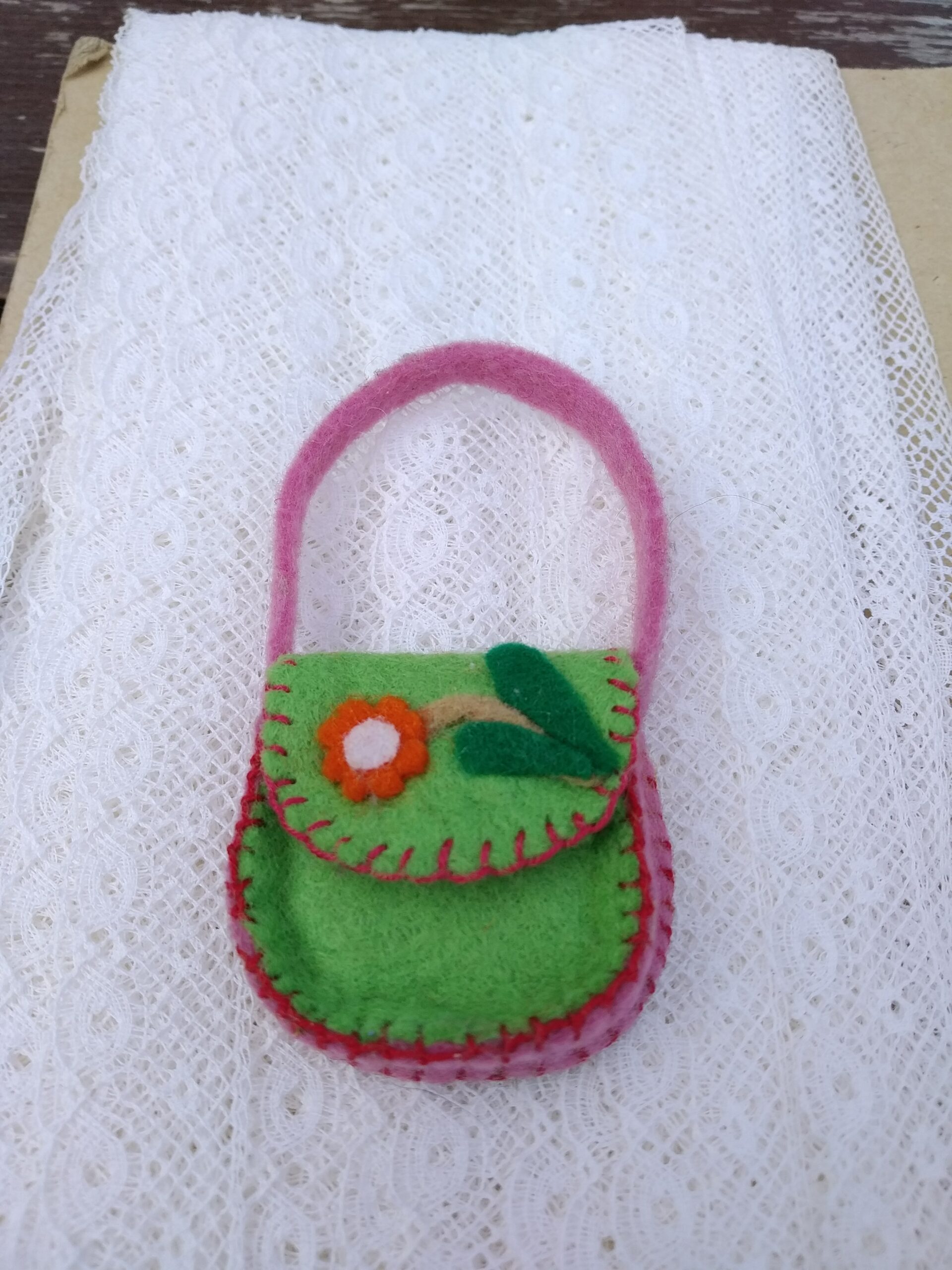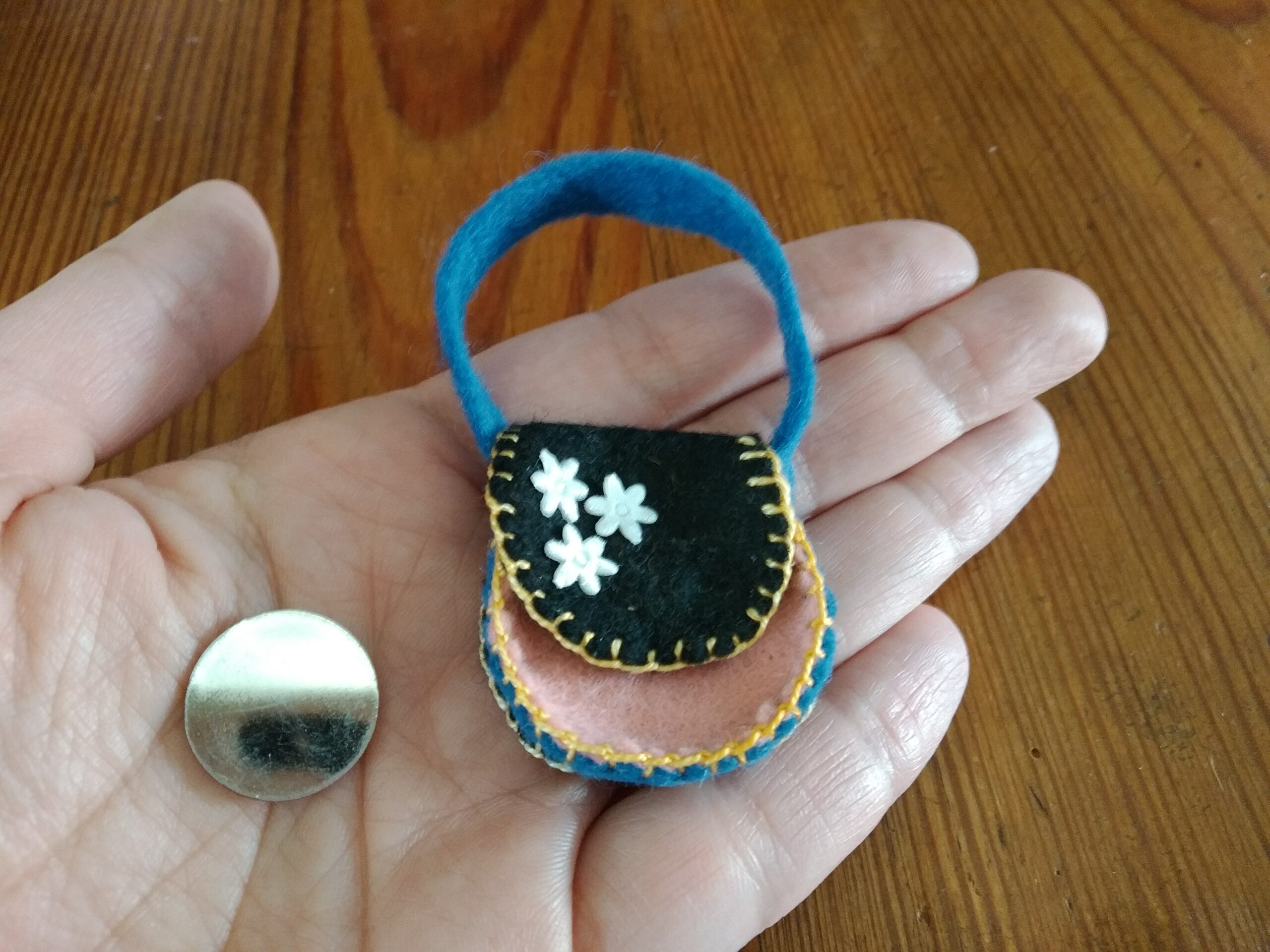 Hnědá chňapka jako doplněk do kuchyňky pro panenky délka bez poutka: 4,5 cm materiál: filc