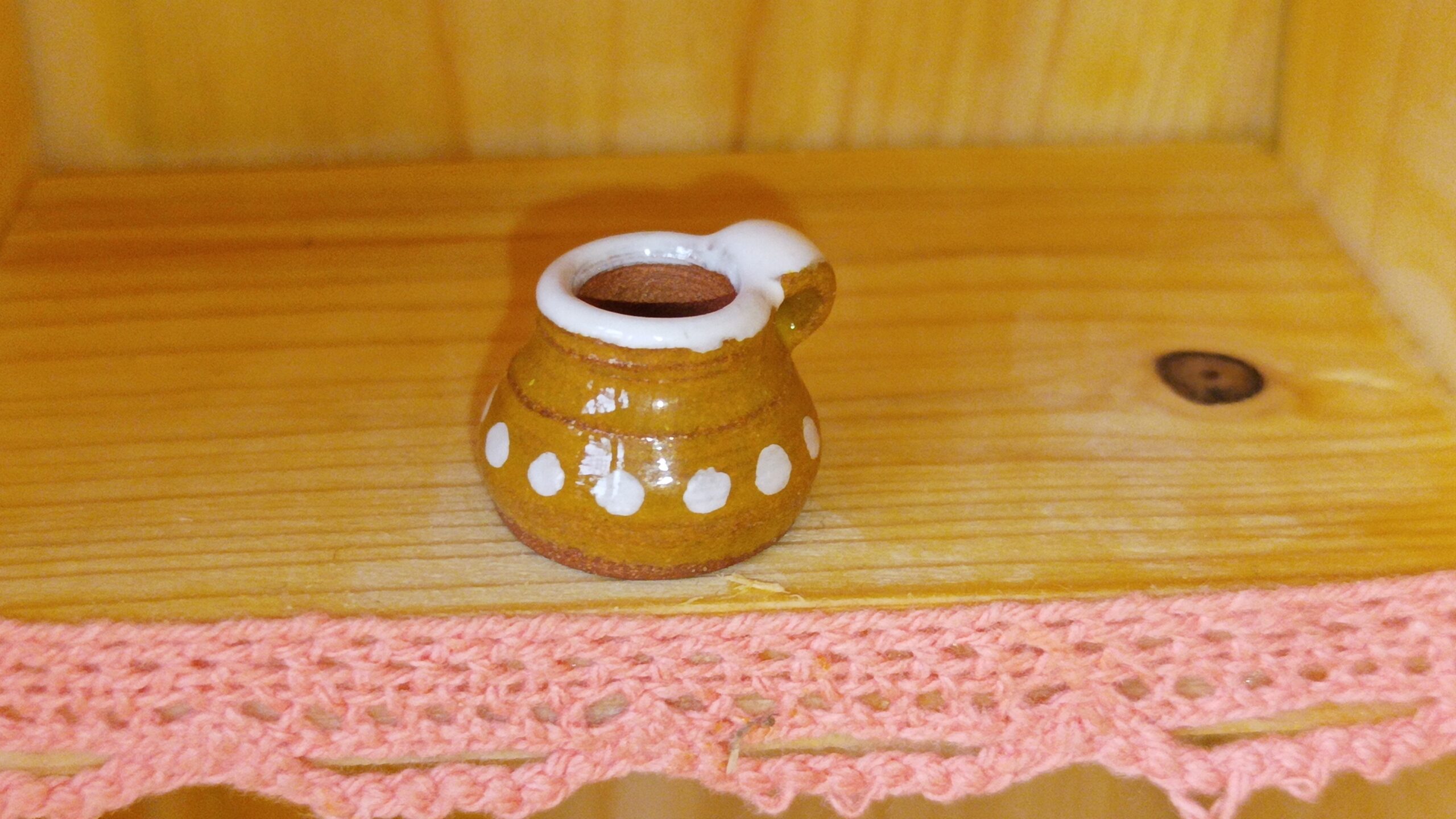 Malinkatý džbáneček s puntíčky žluto-hnědý