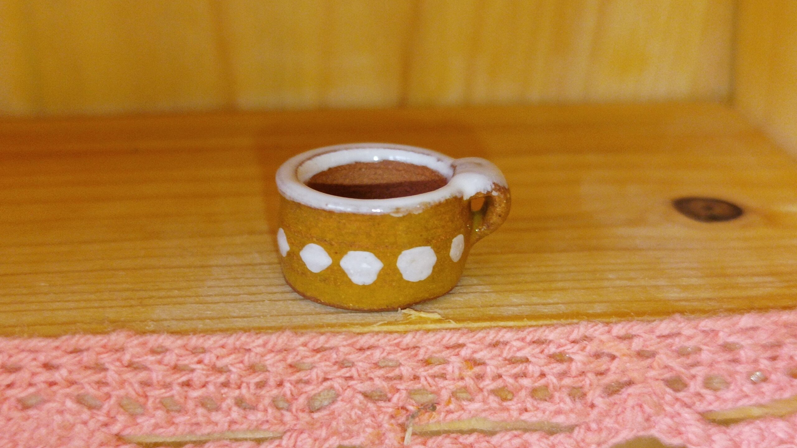 Malinkatý hrníček s puntíčky žluto-hnědý č. 2