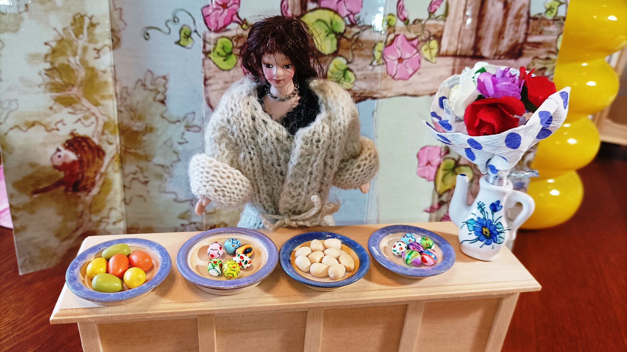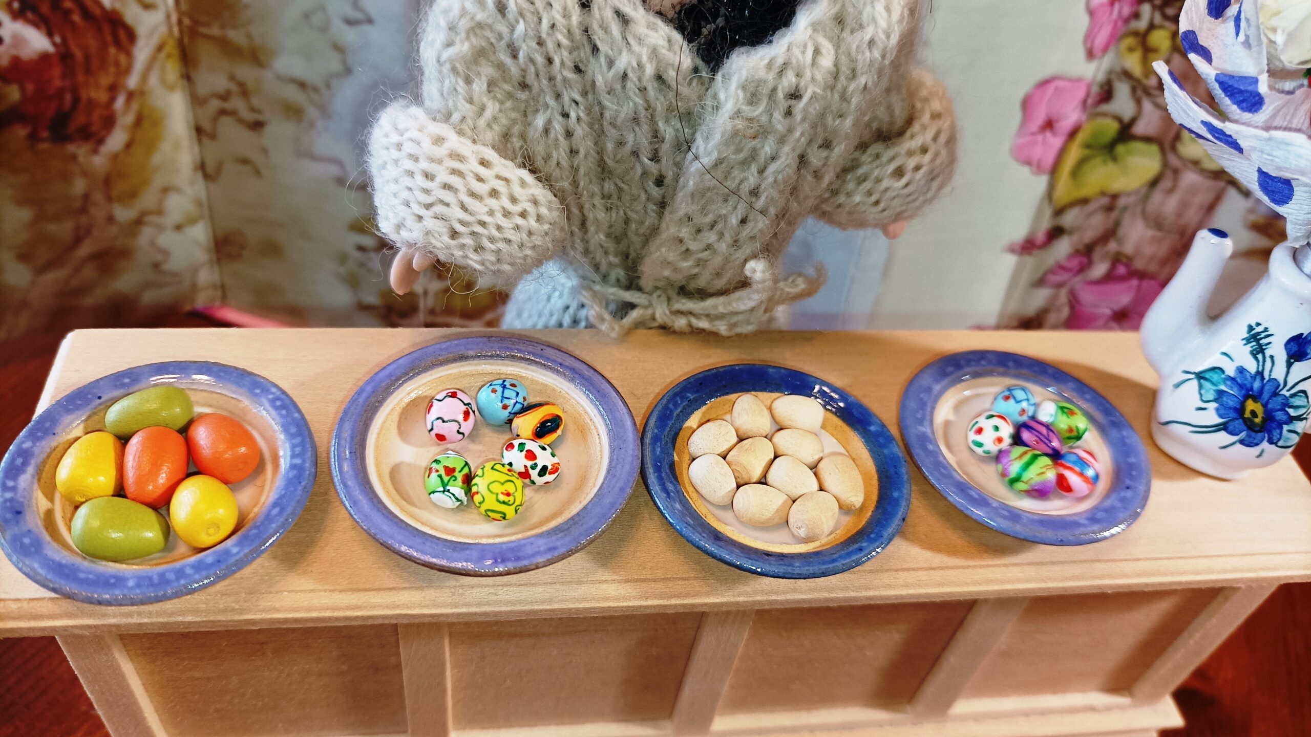 Na fotkách vidíte i dřevěná jednobarevná vajíčka z naší stálé nabídky.