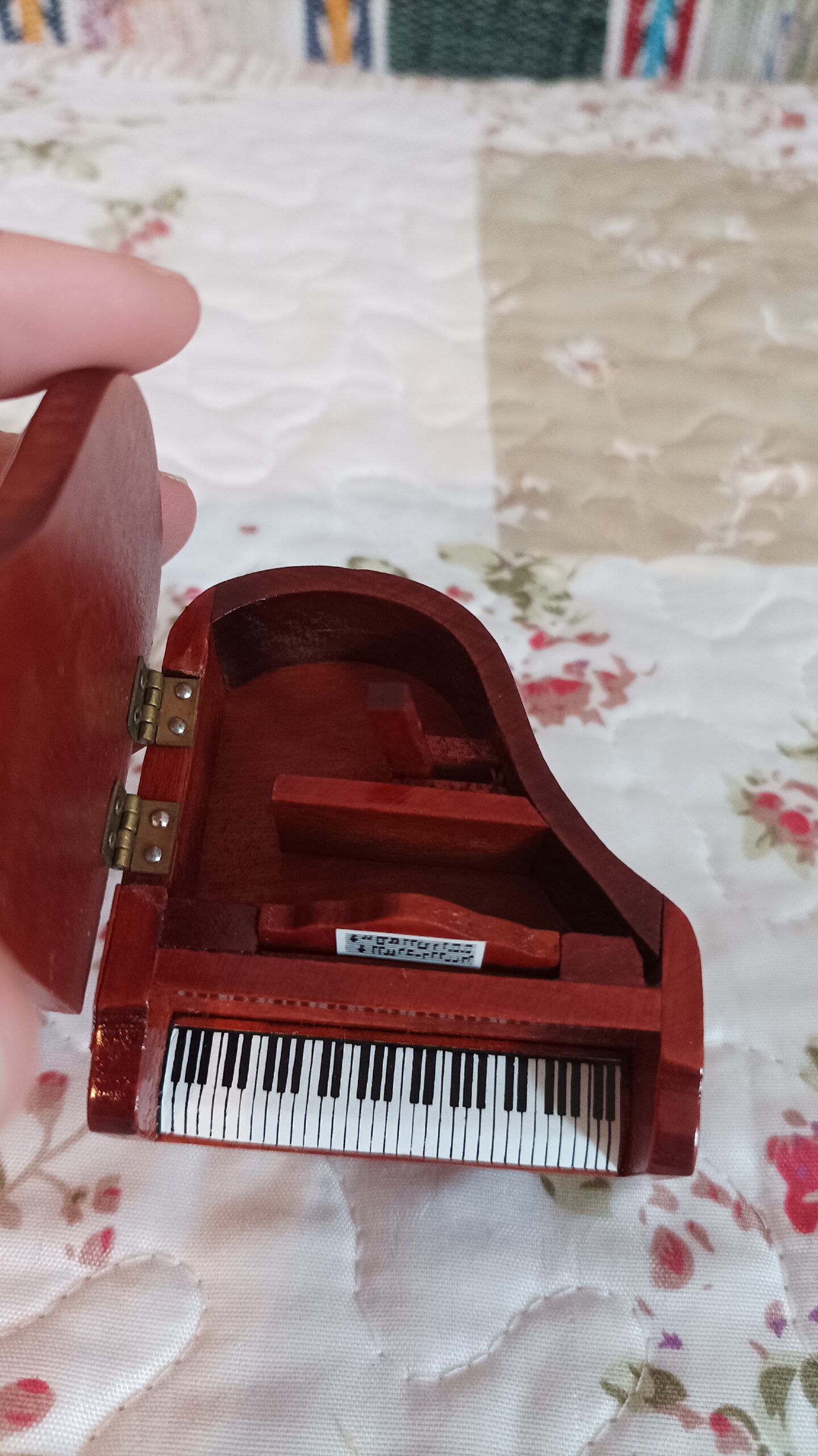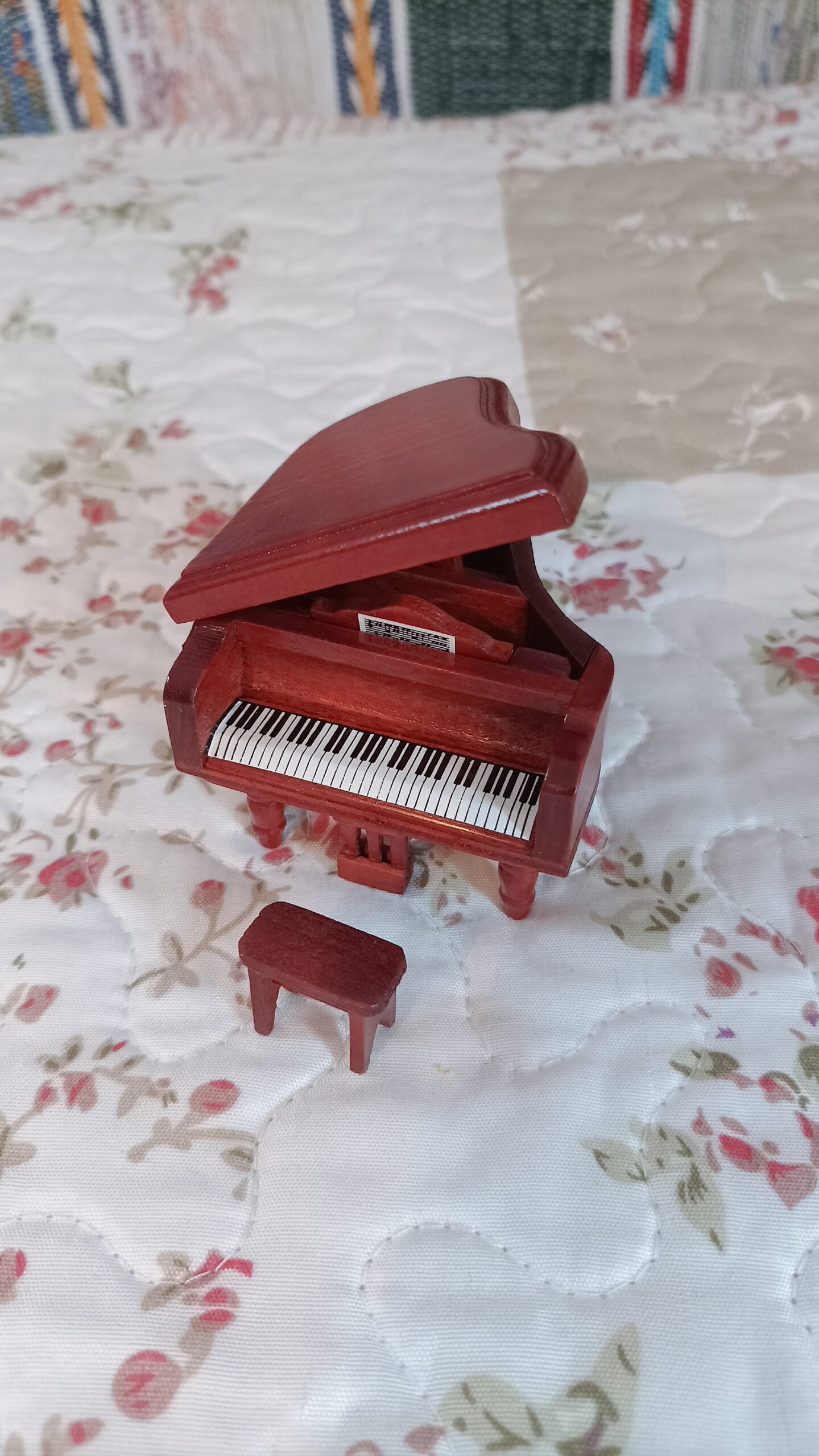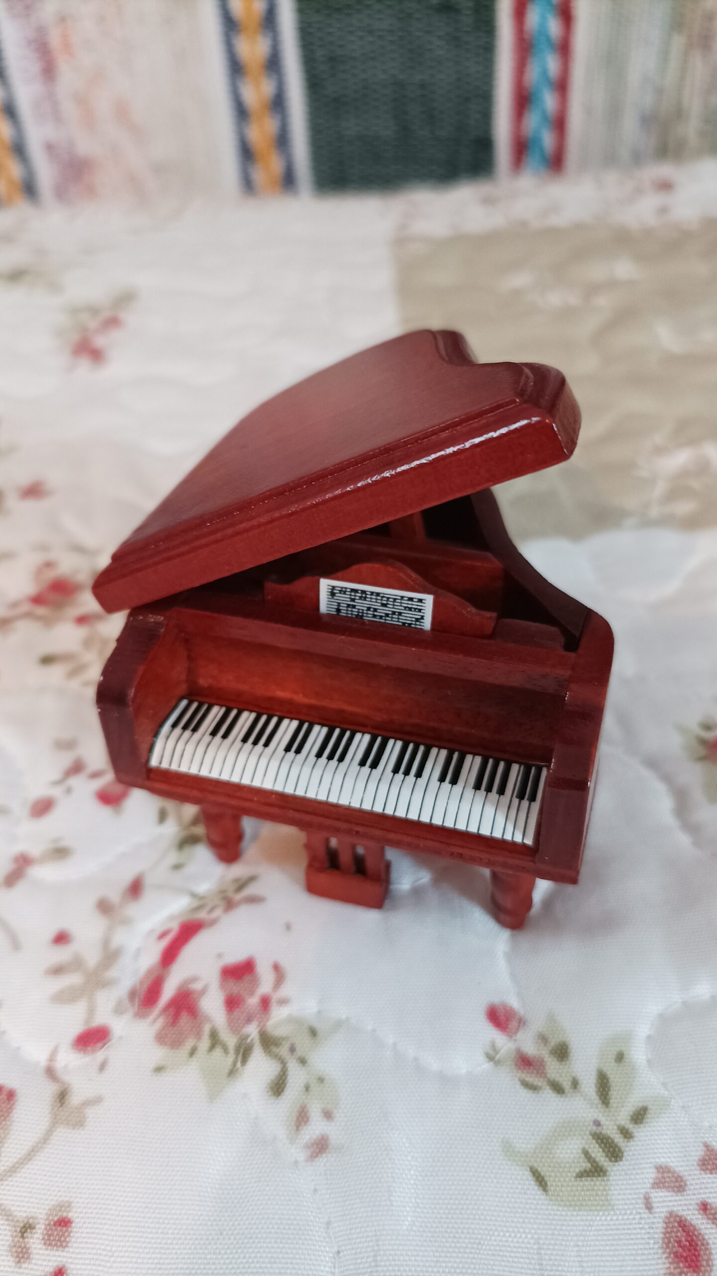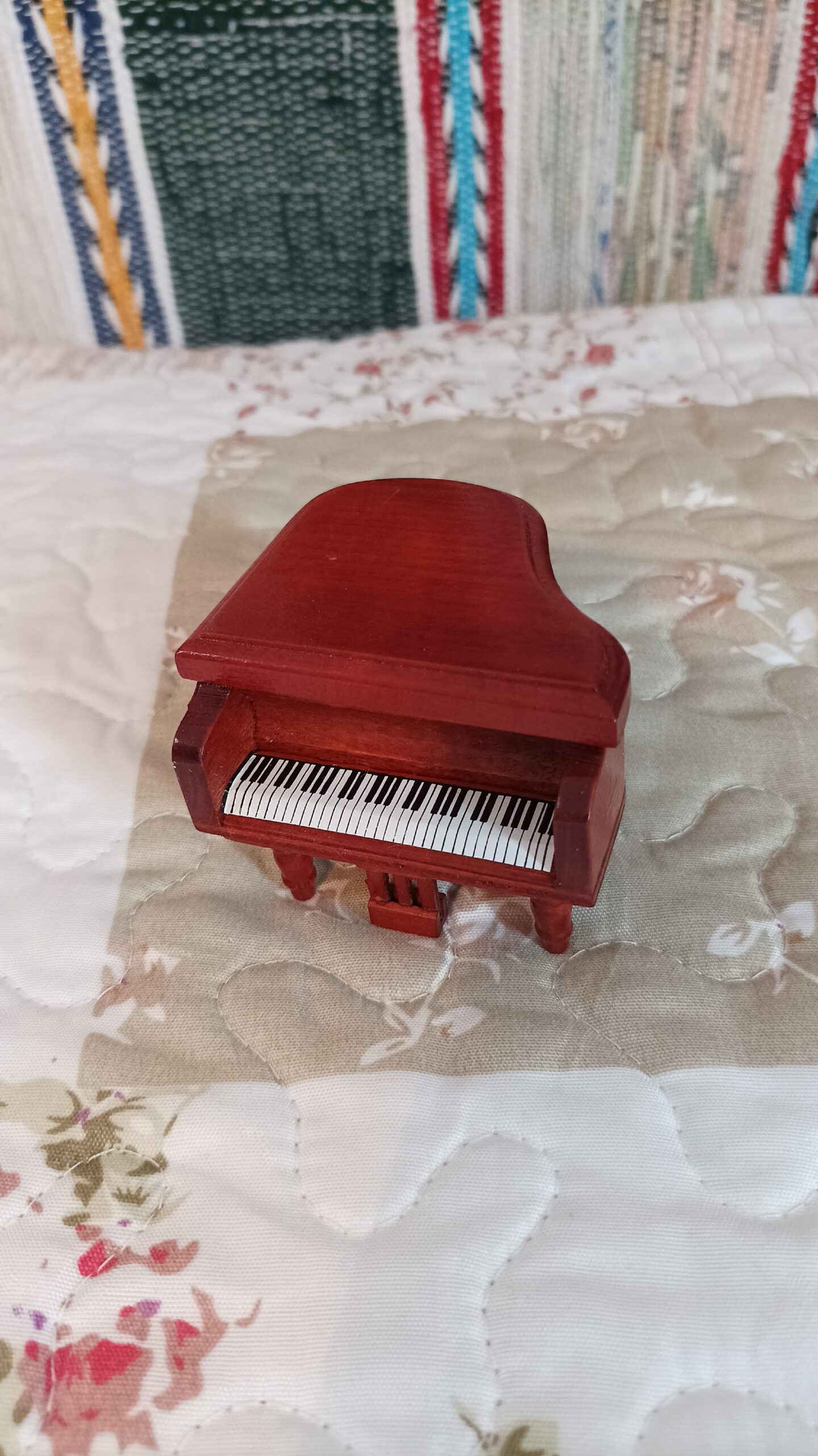 Malý dřevěný klavír v krásném provedení.