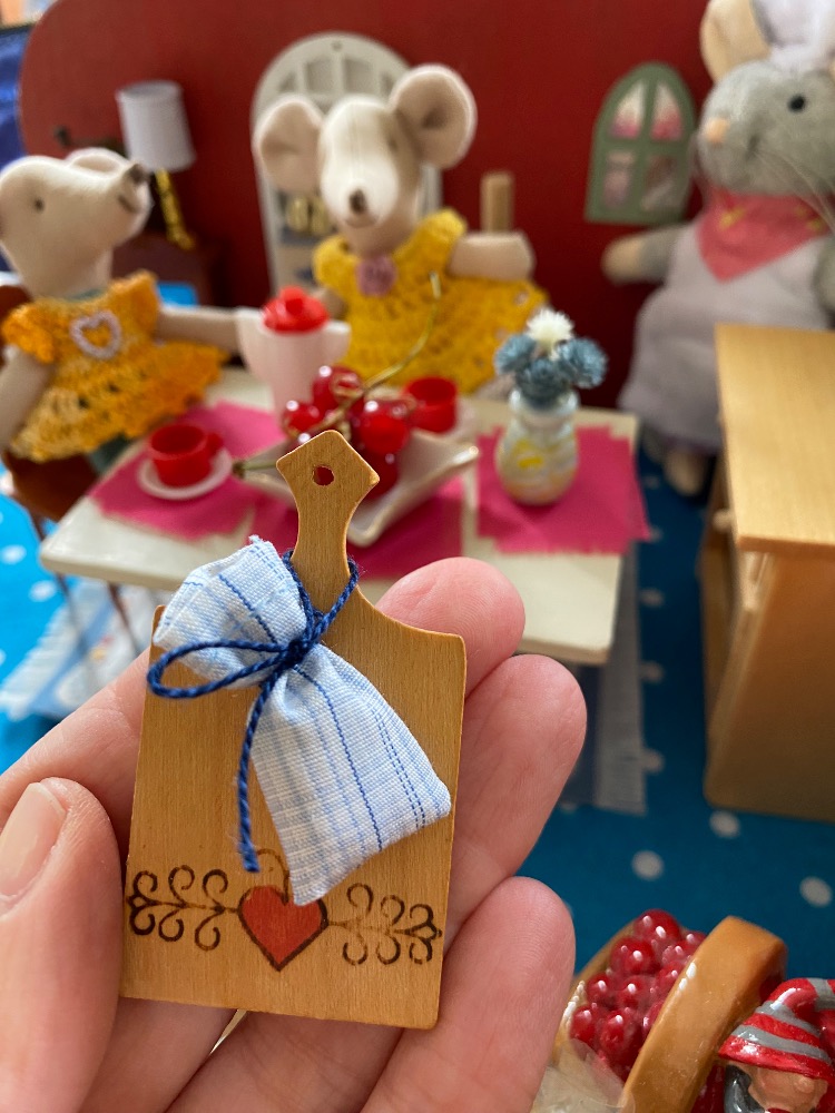 Šedá chňapka jako doplněk do kuchyňky pro panenky délka bez poutka: 4,5 cm materiál: filc