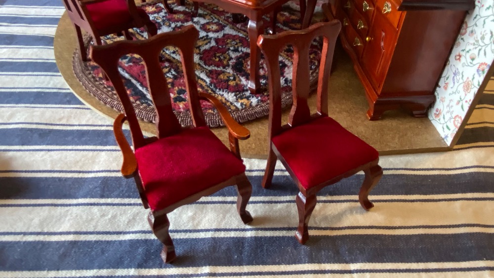 Židle mají pěkné sametové polstrování.