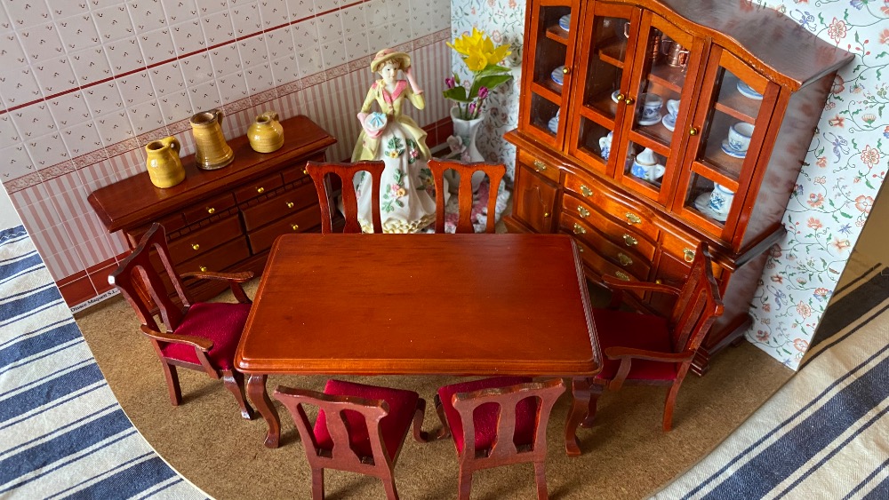 Skříňka v odstínu přírodního dubu Odpovídá měřítku 1:12. výška: 7,9 (včetně rantlu 8,8 cm) šířka: 7,4 cm hloubka: 5 cm V naší současné nabídce je…