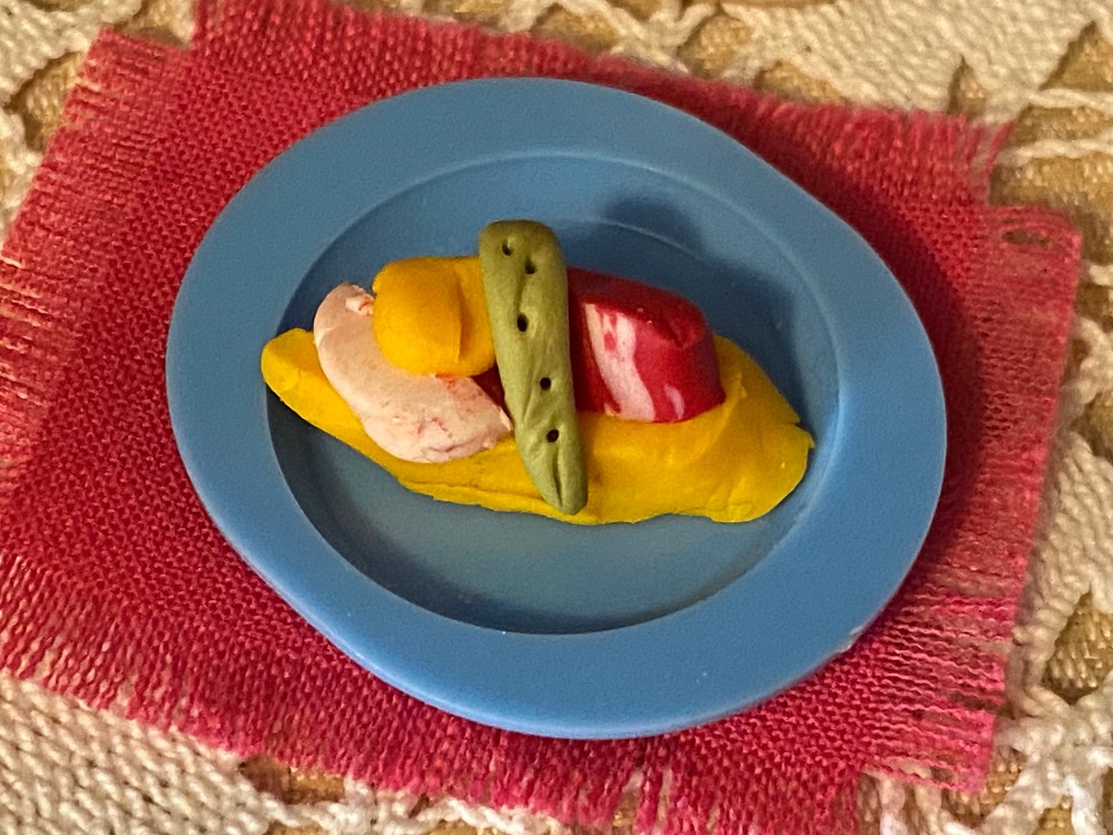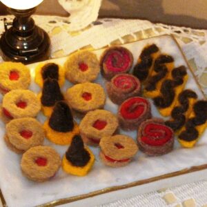 Vytvořena z filce. výška: asi 13 mm Na fotu se skutečnými dortíky.