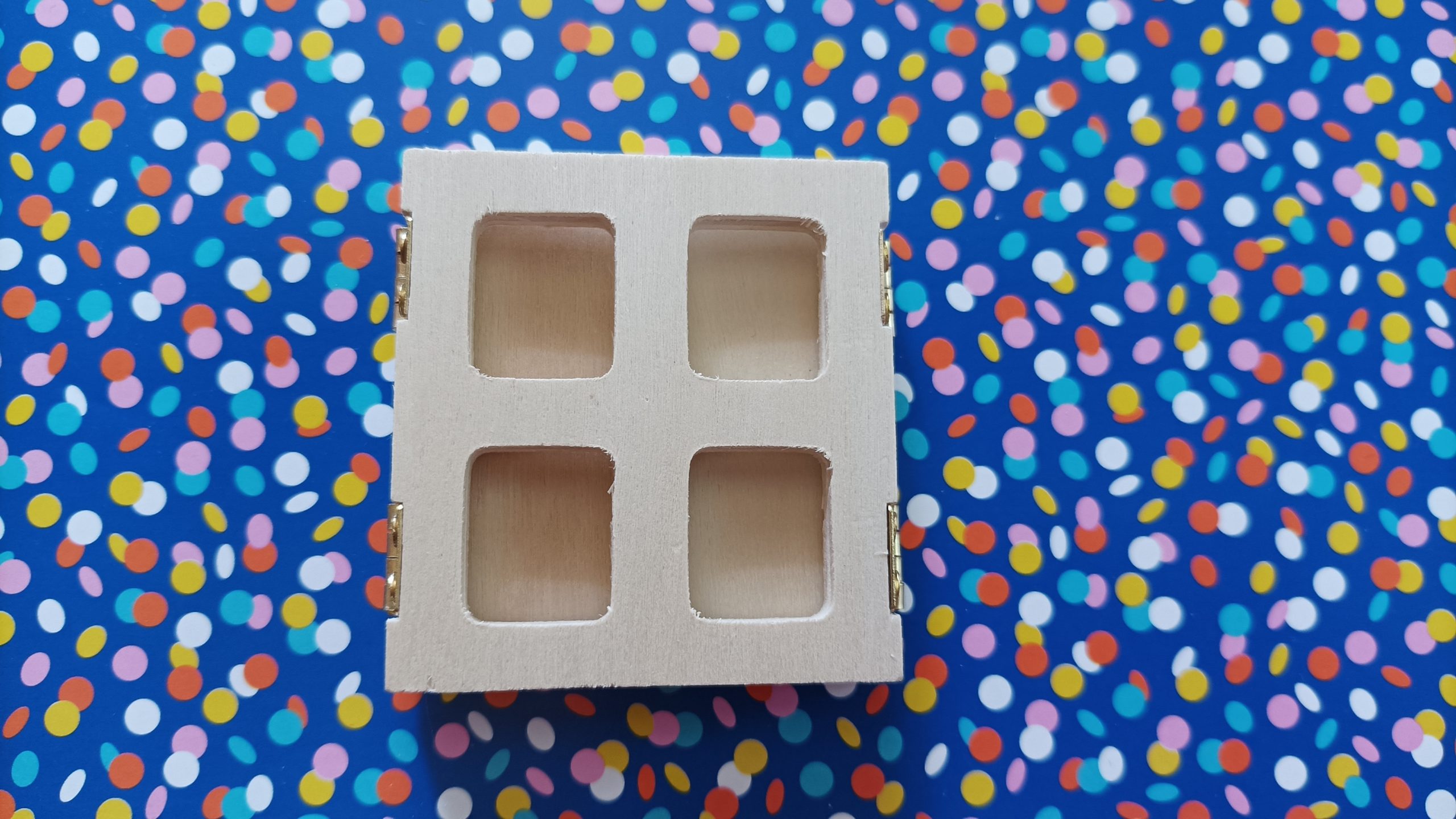 Se zaklapnutými okenicemi měří okénko 5,8 cm šíře a 6 cm výška.