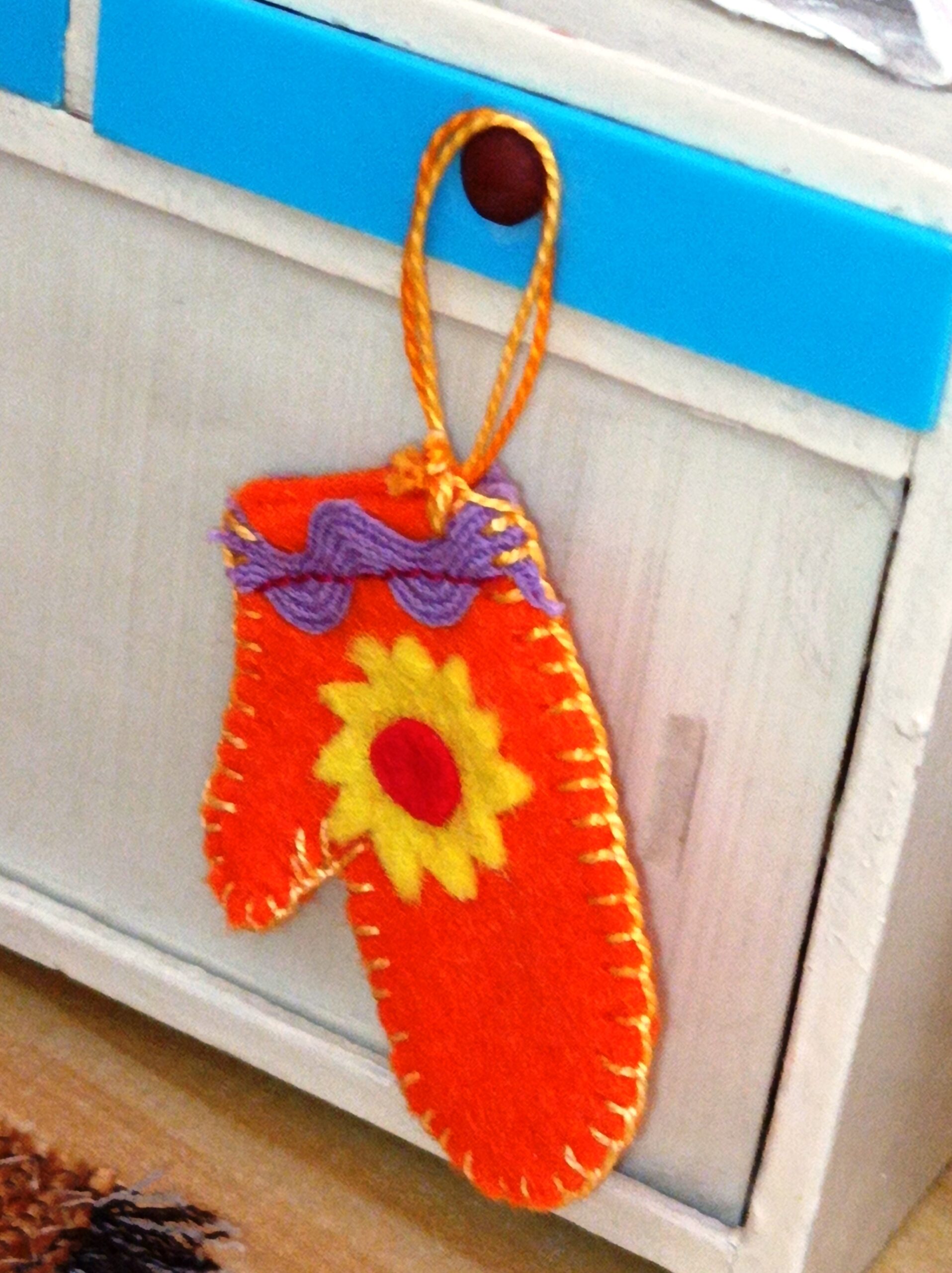 Lososová chňapka jako doplněk do kuchyňky pro panenky délka bez poutka: 4,5 cm materiál: filc