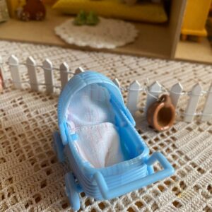 délka: 5,5 cm (včetně madla) výška: 4,4 cm Kolečka se netočí. Panenky na fotu najdete v naší nabídce. Vyrobeno v Německu.