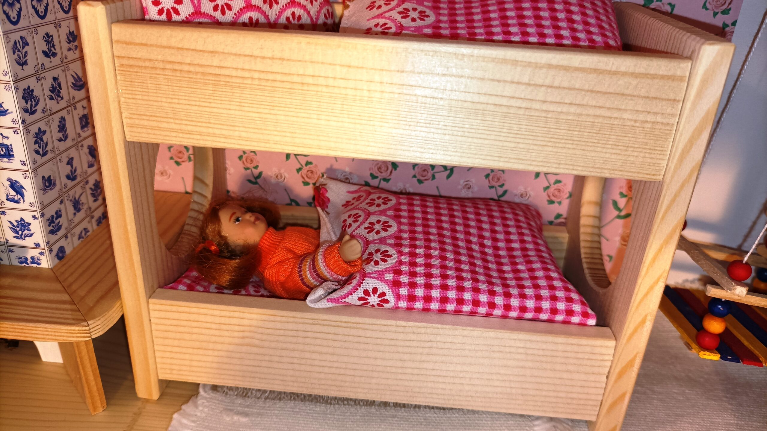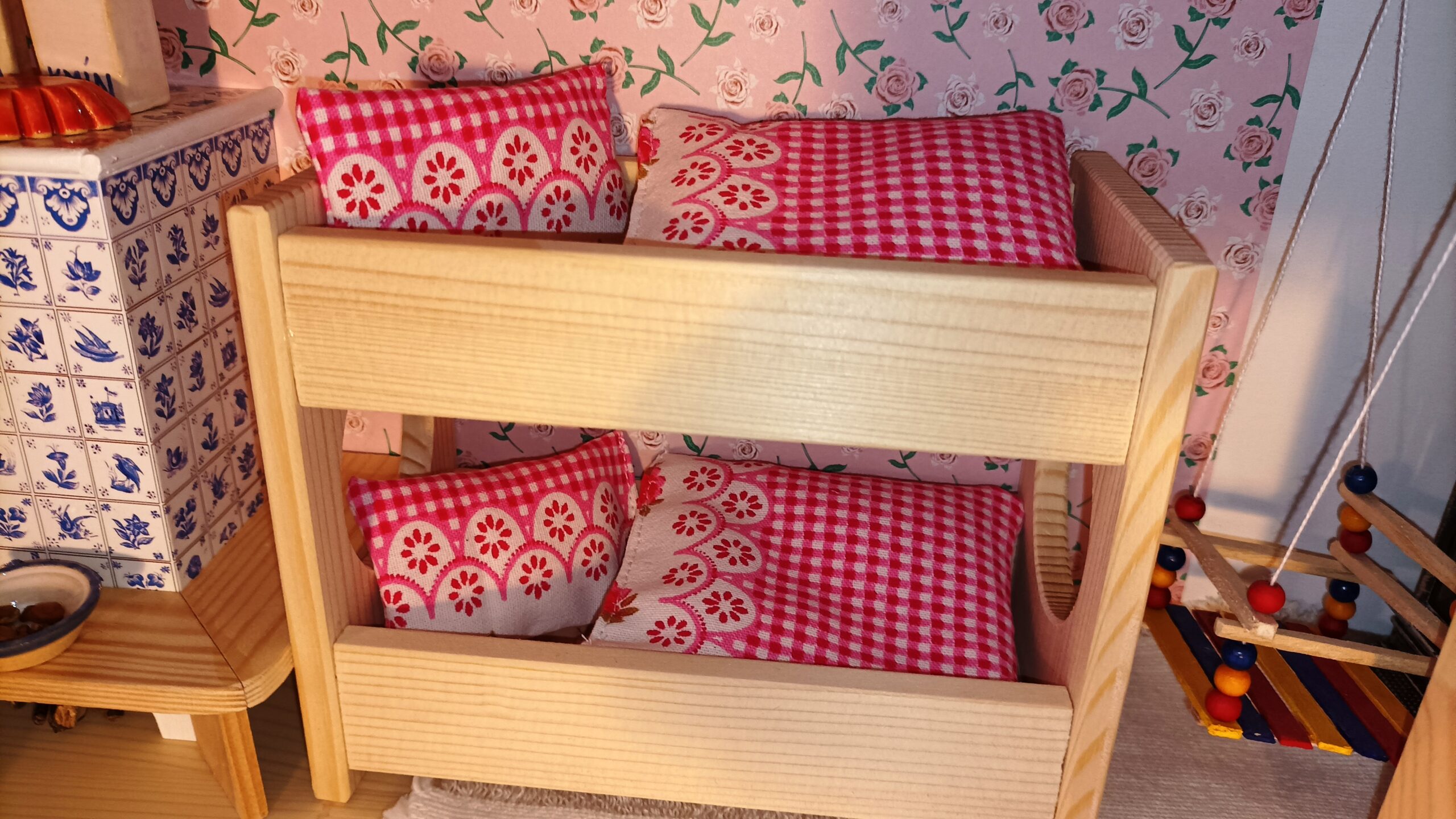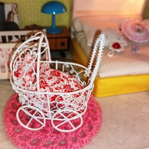 Záclonka do domečku pro panenky šířka: 15 cm délka: 15,5 cm Prodáváme 2 kusy, které se liší jen barvou korálků na konci konzole – zelené…