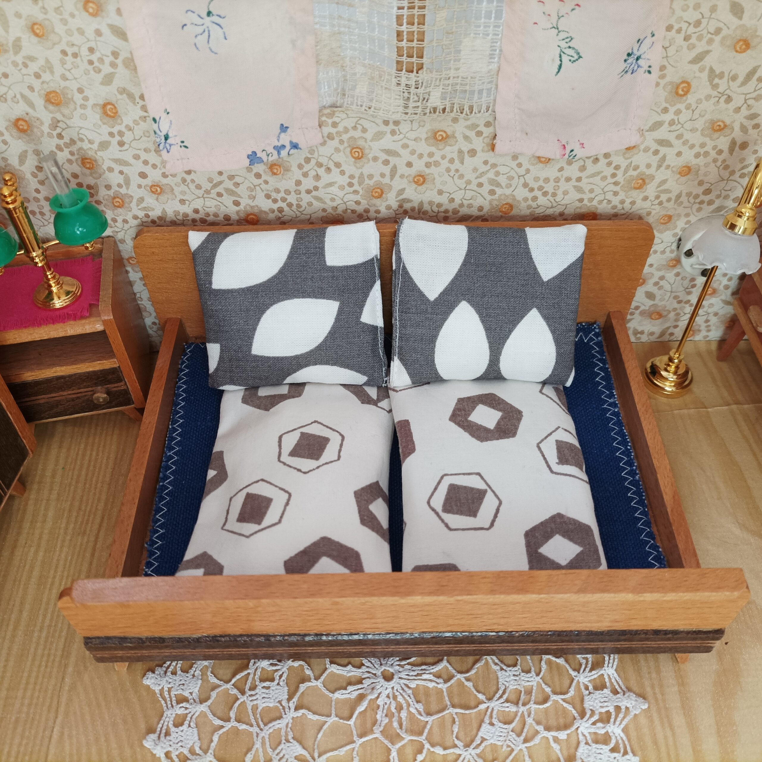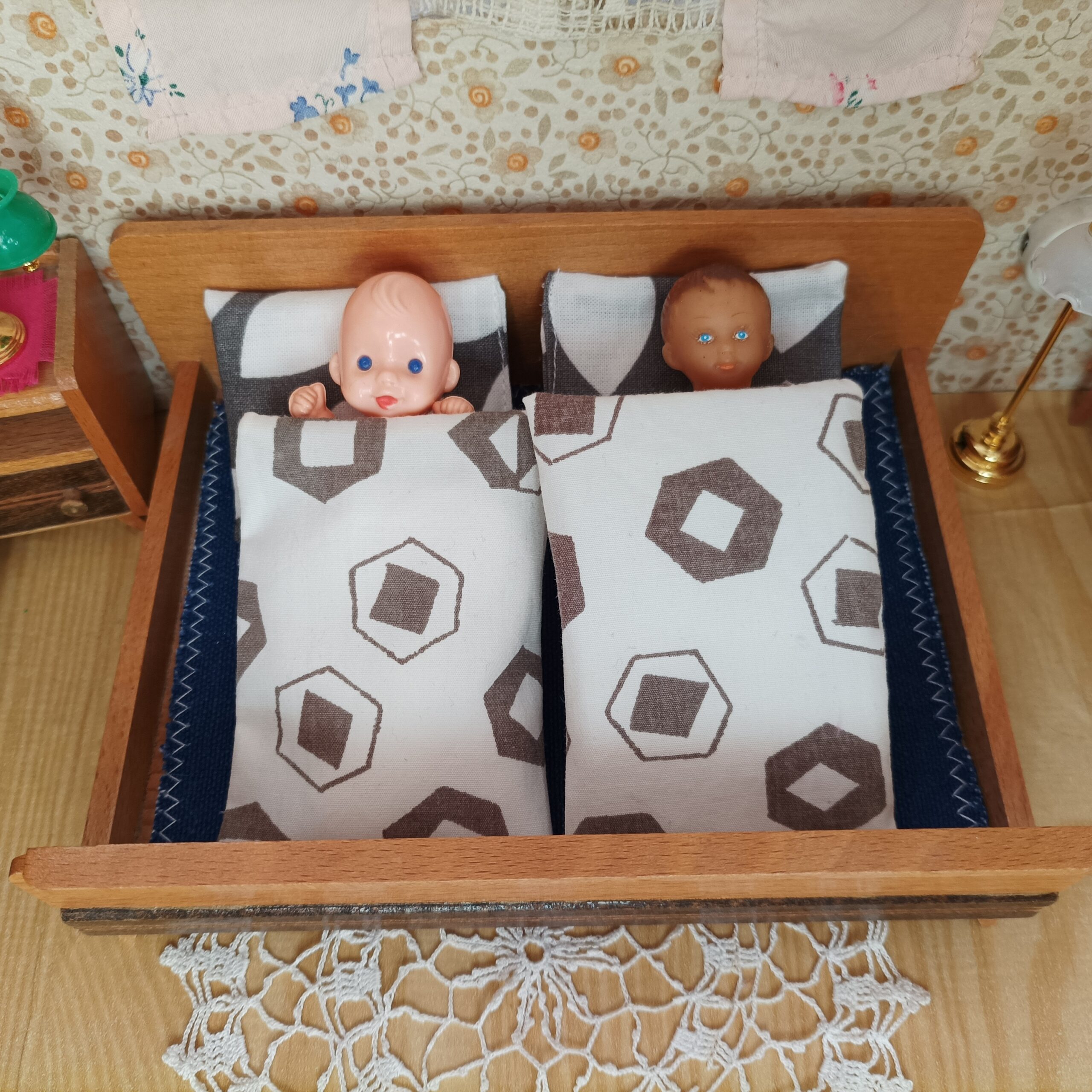 Postýlka pro ilustraci měří 12 x 16.5 cm. 12 cm je rozměr tak, jak panenka leží, 16,5 cm je šíře.