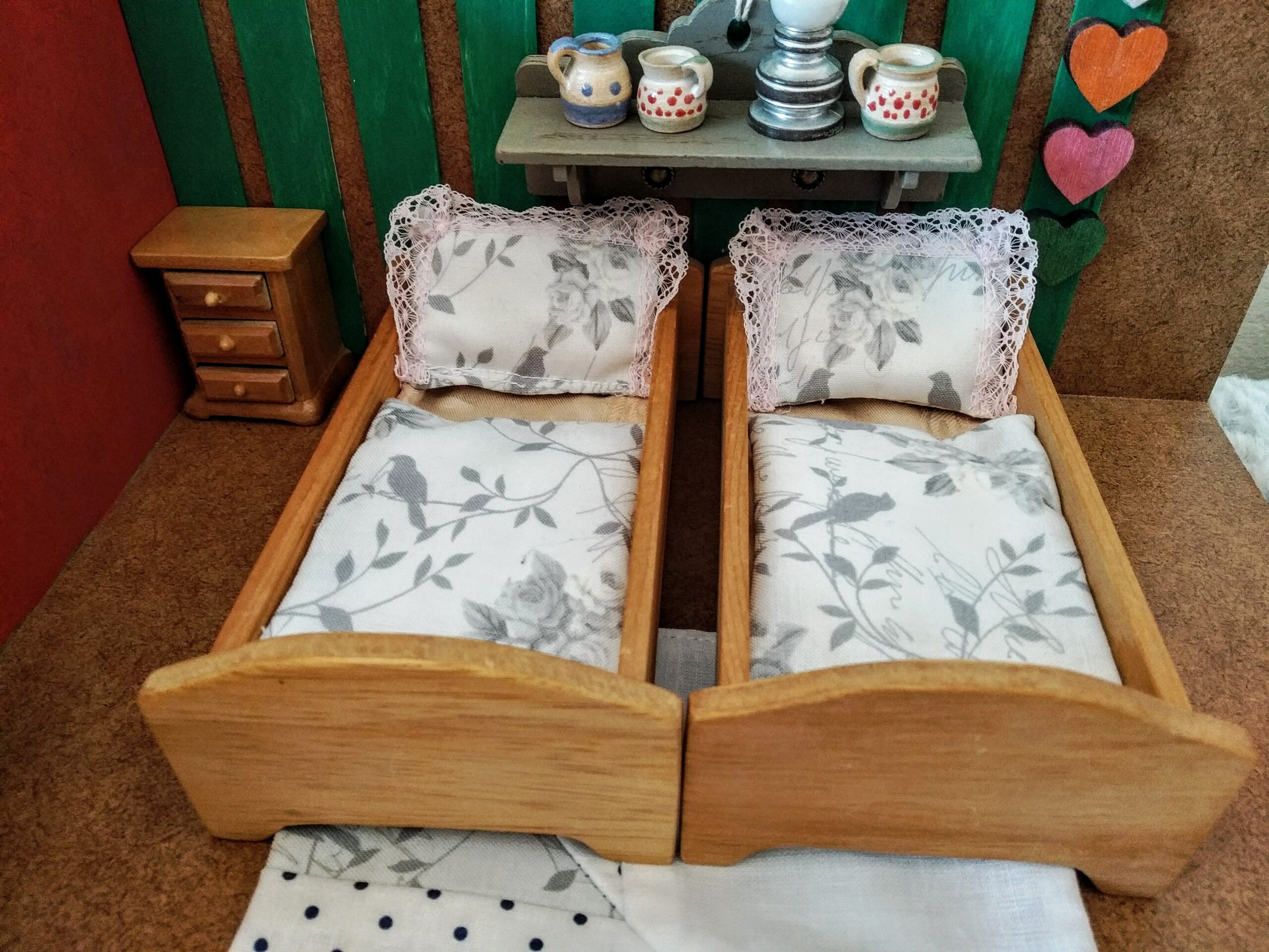Sada dvou peřinek a dvou polštářků do postýlek pro panenky