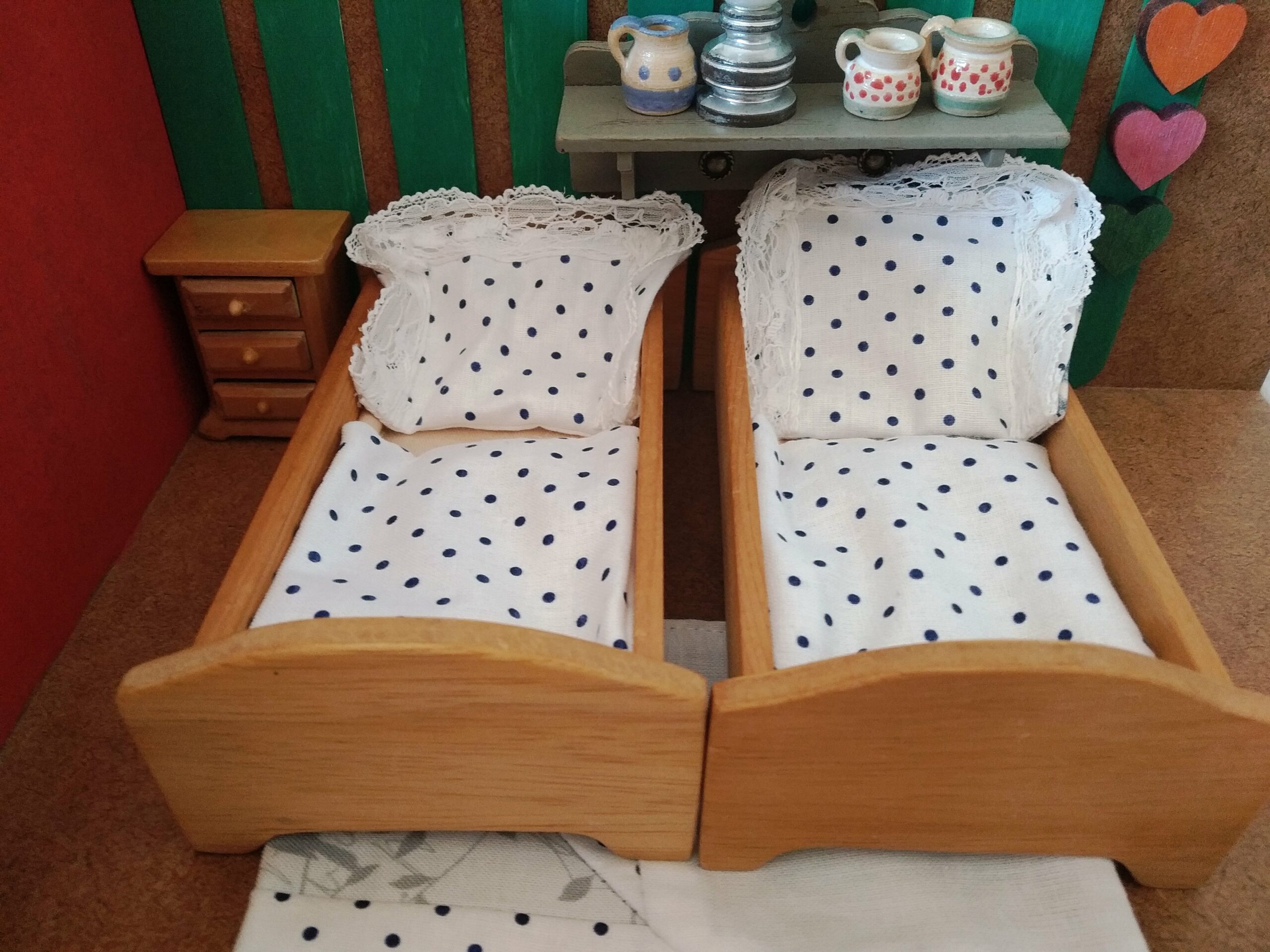 Sada dvou peřinek a dvou polštářků do postýlek pro panenky