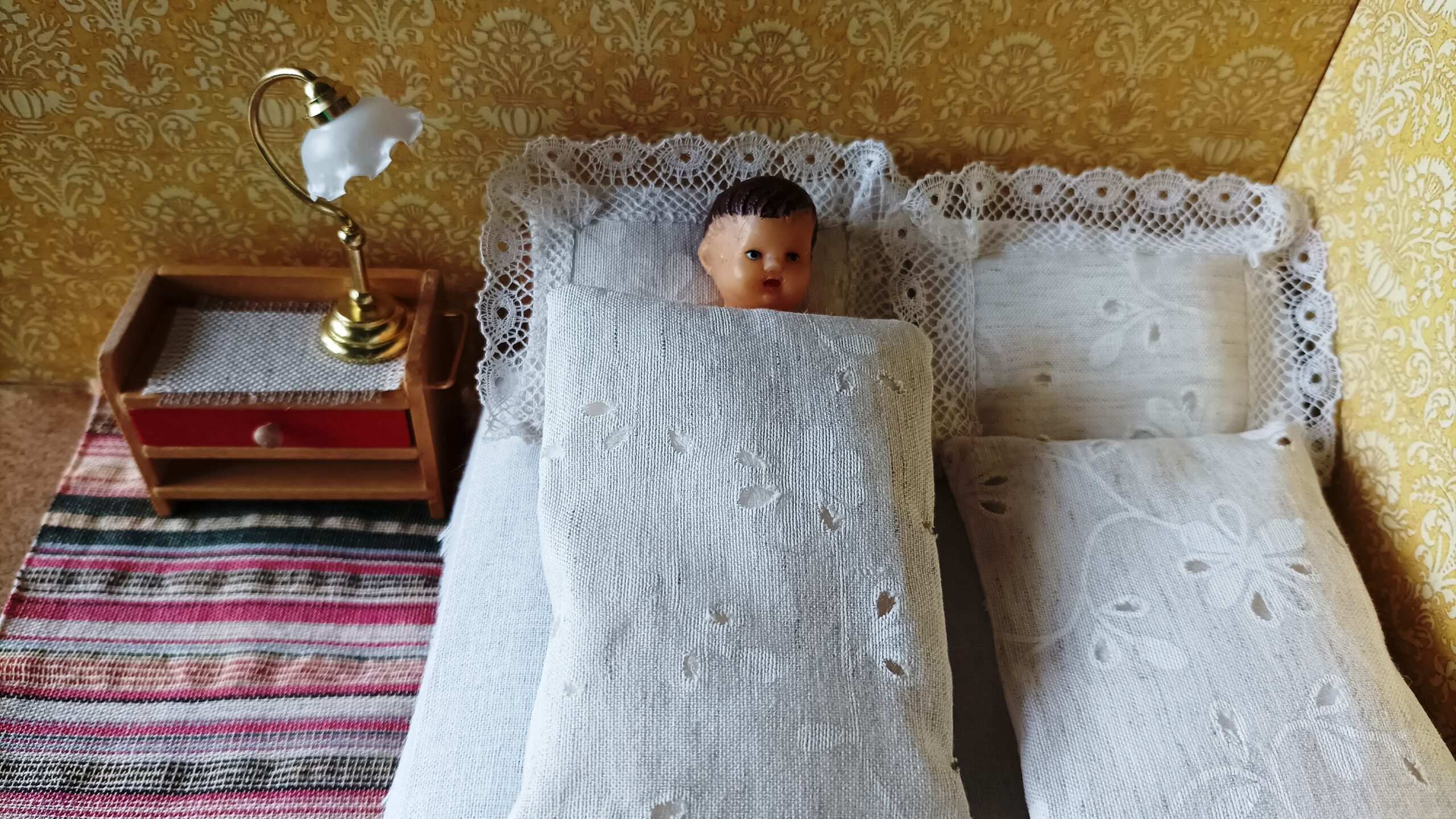 Postýlka pro ilustraci měří 11 cm – šíře a 15 cm délka.