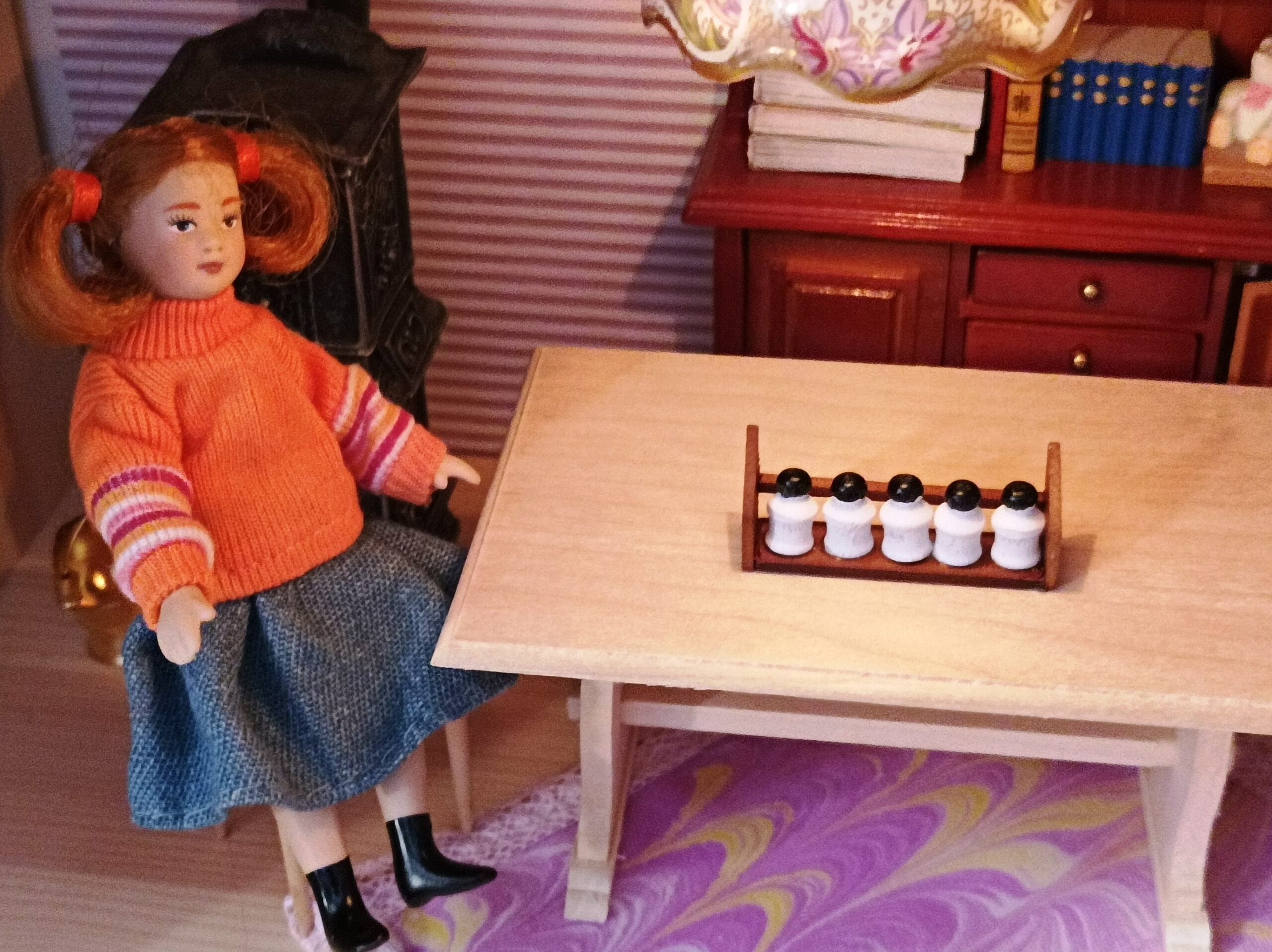 Polička a nalepené dózičky