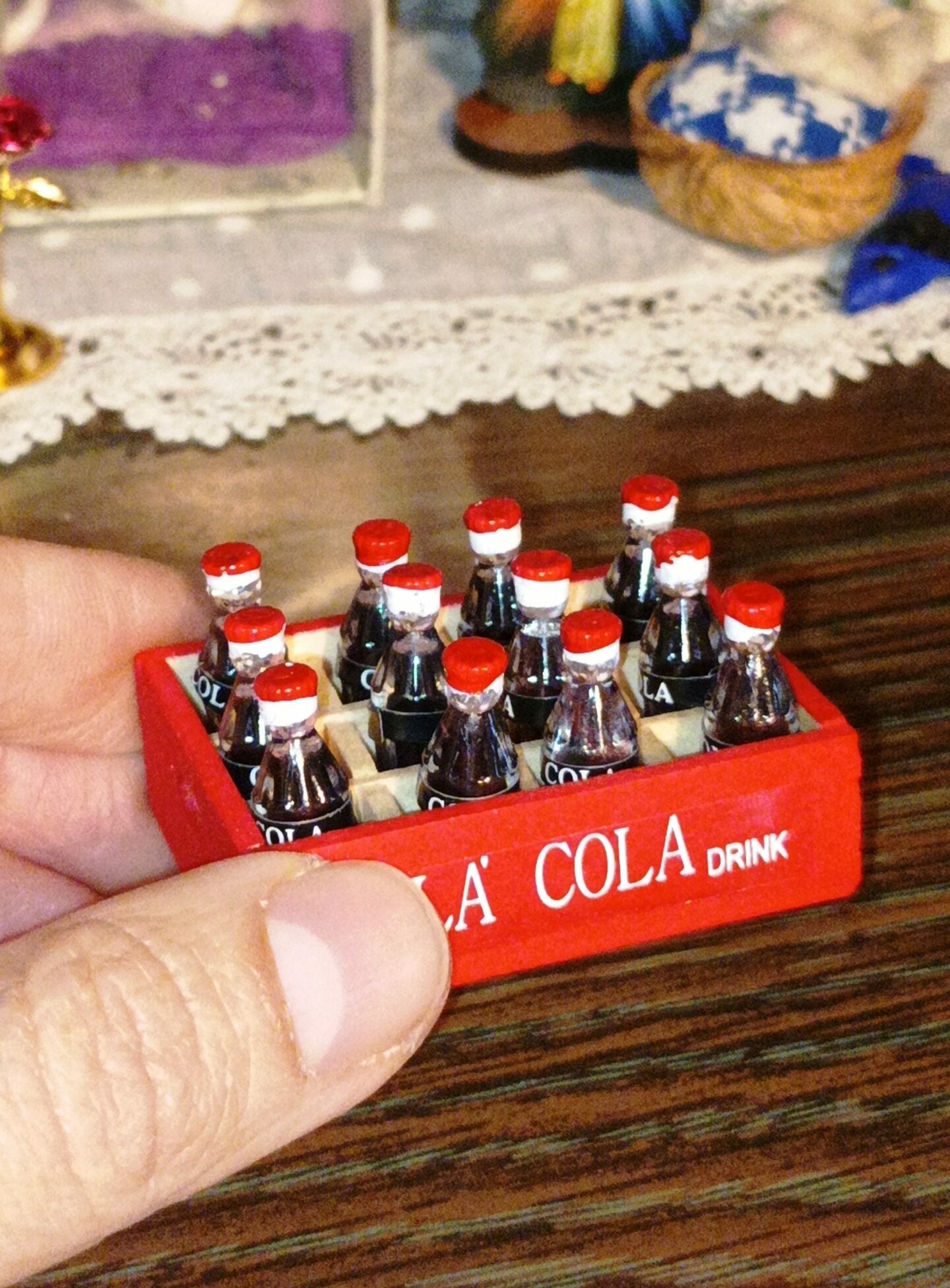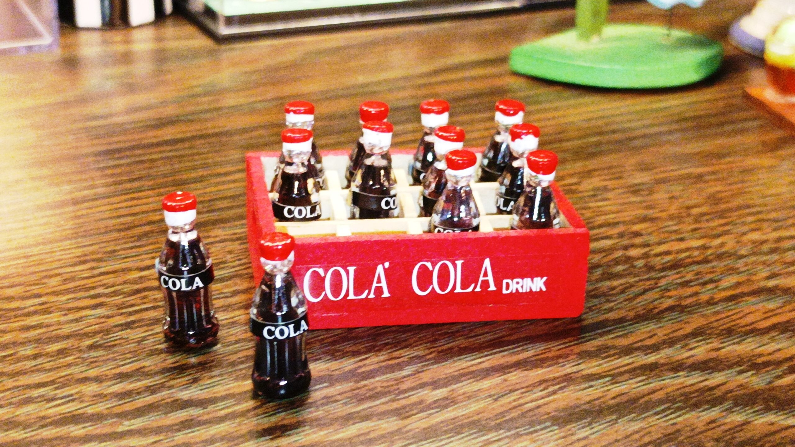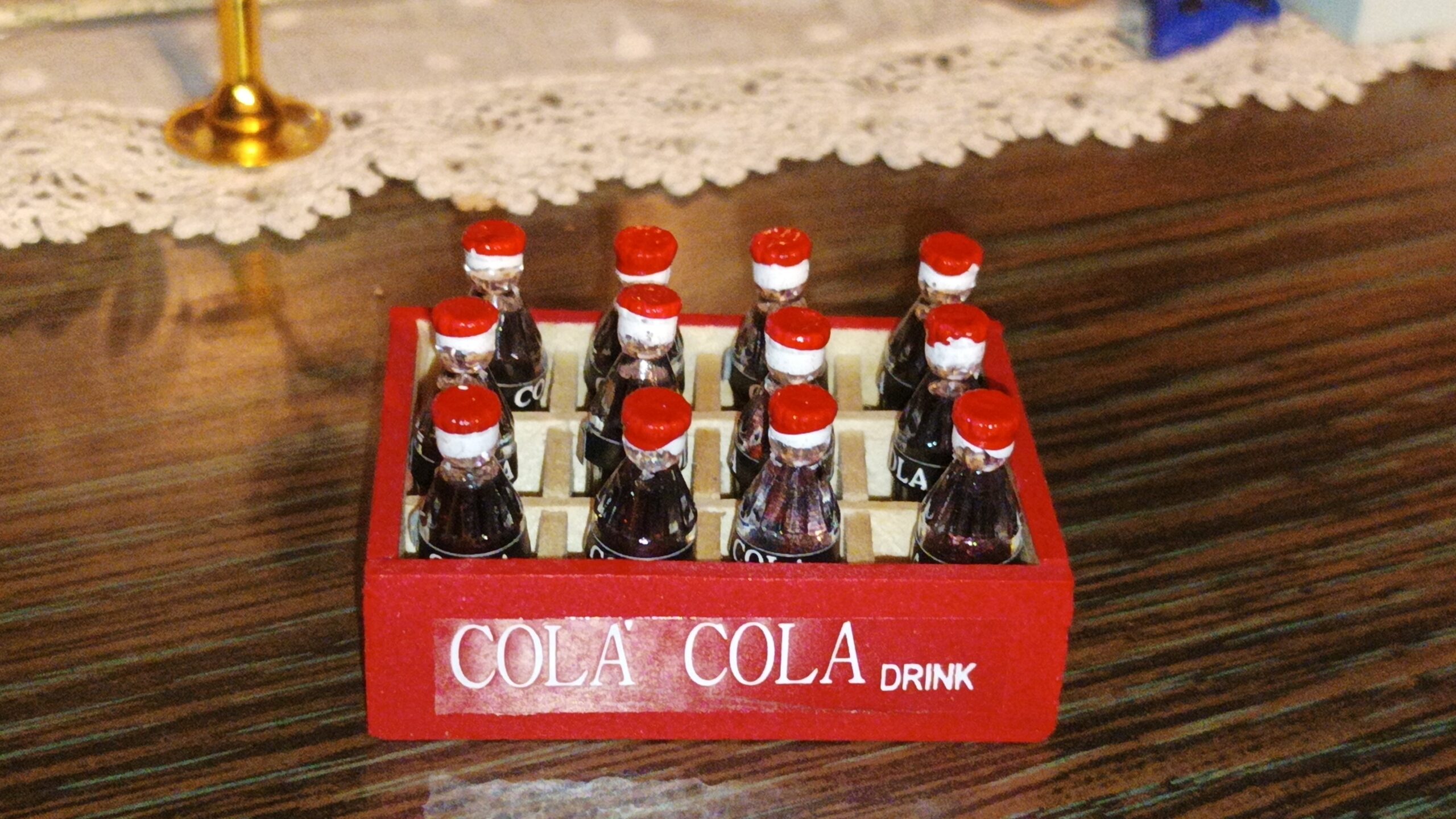 12 lahviček Coca Coly v dřevěné přepravce