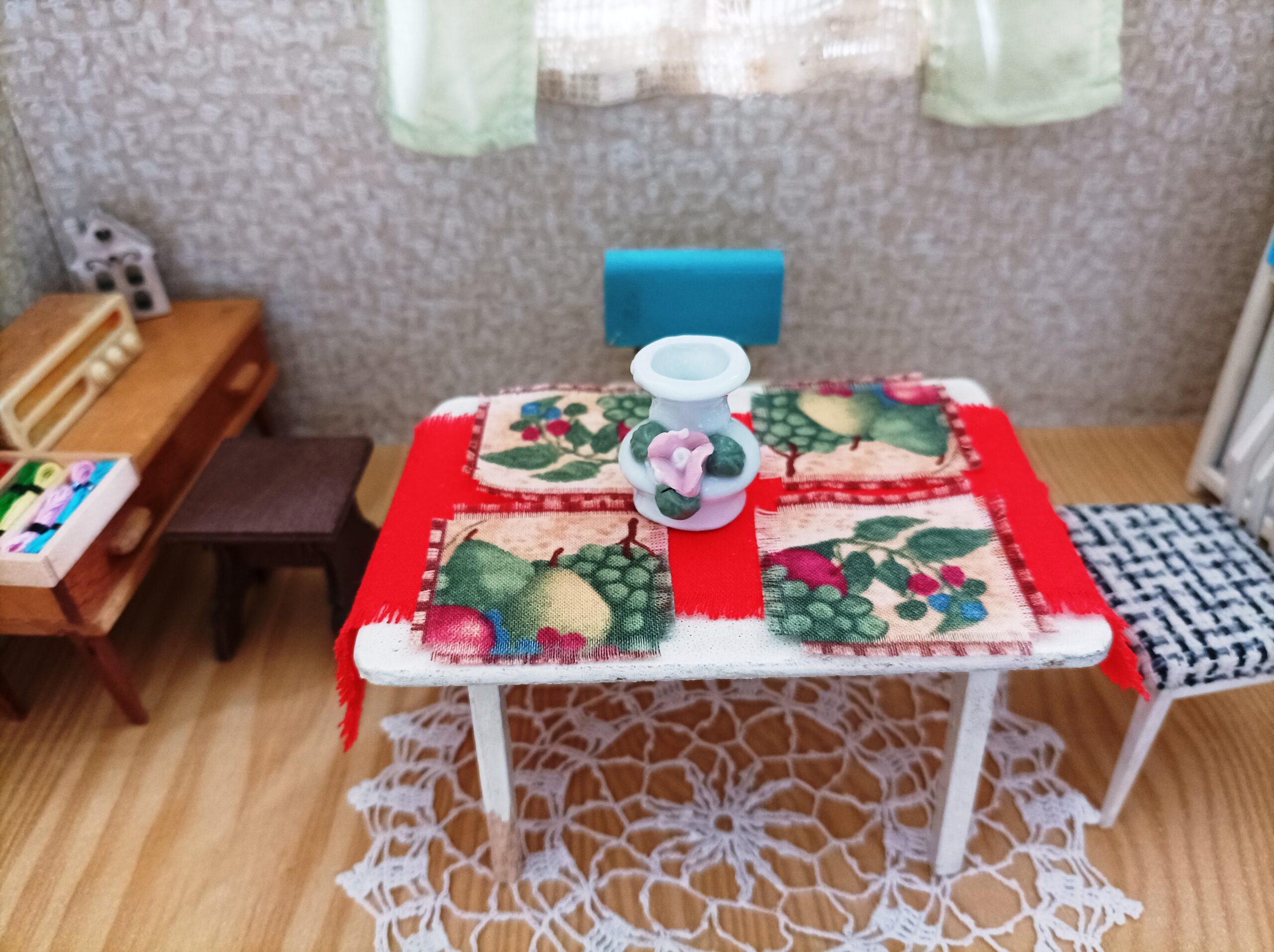 rozměr červeného ubrusu: 16,8 x 5,7 cm