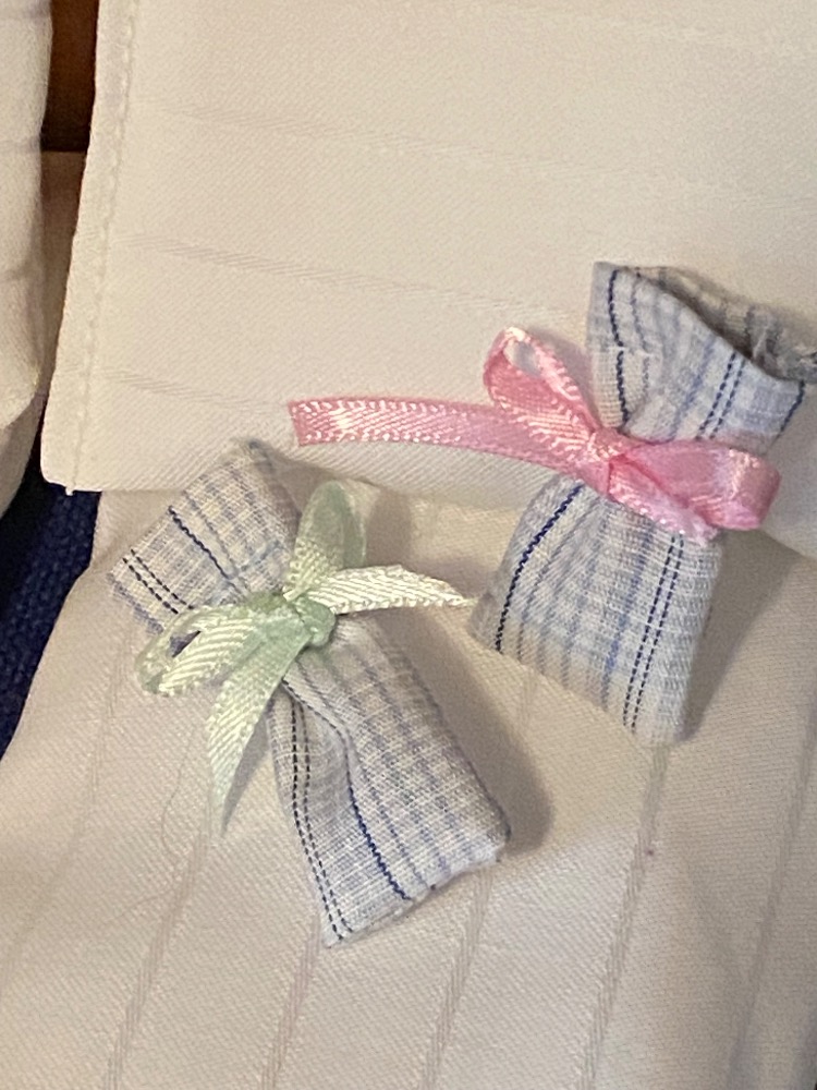 Lososová chňapka jako doplněk do kuchyňky pro panenky délka bez poutka: 4,5 cm materiál: filc
