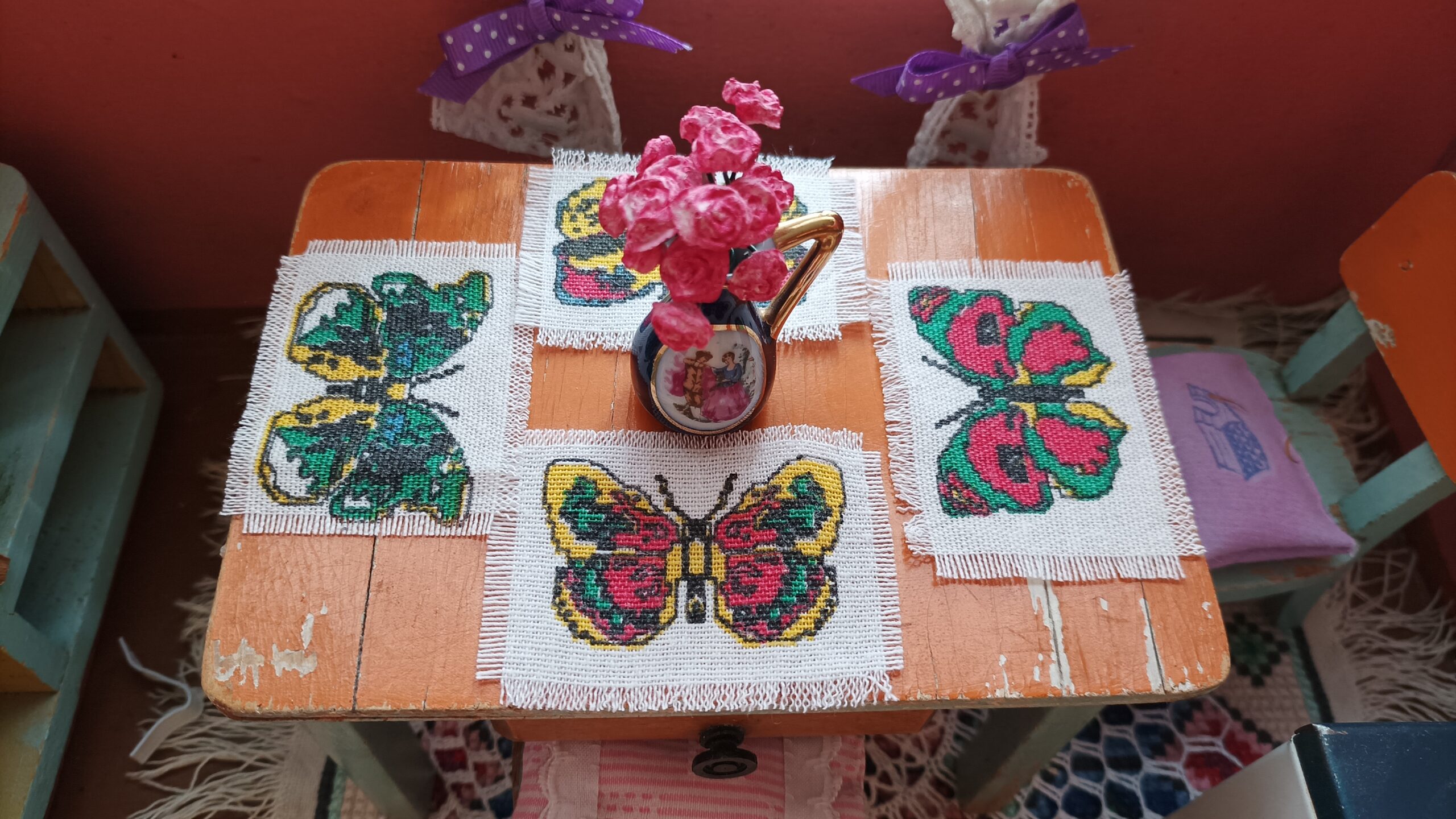 Sada 4 kusů prostírání s motýlky