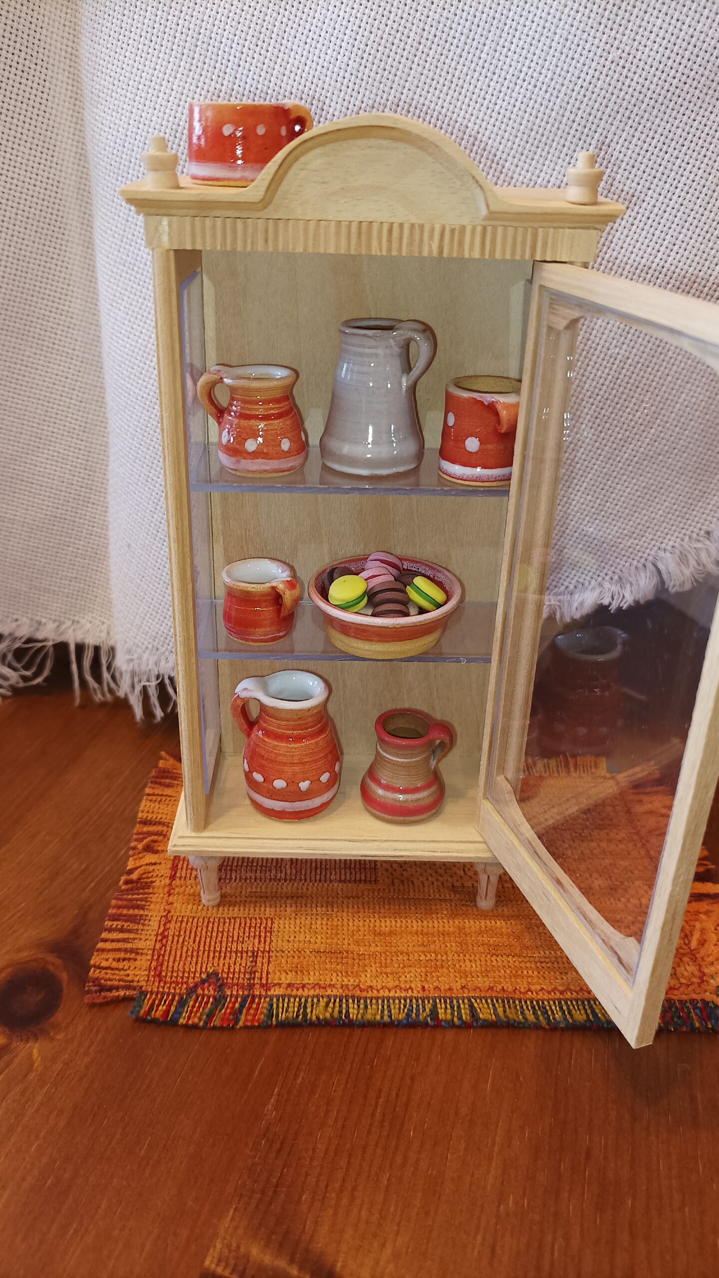 Záclonka do domečku pro panenky šířka: 15,5 cm délka: 13 cm Prodáváme 2 kusy, které se liší jen barvou korálků na konci konzole – růžové a žluté.…