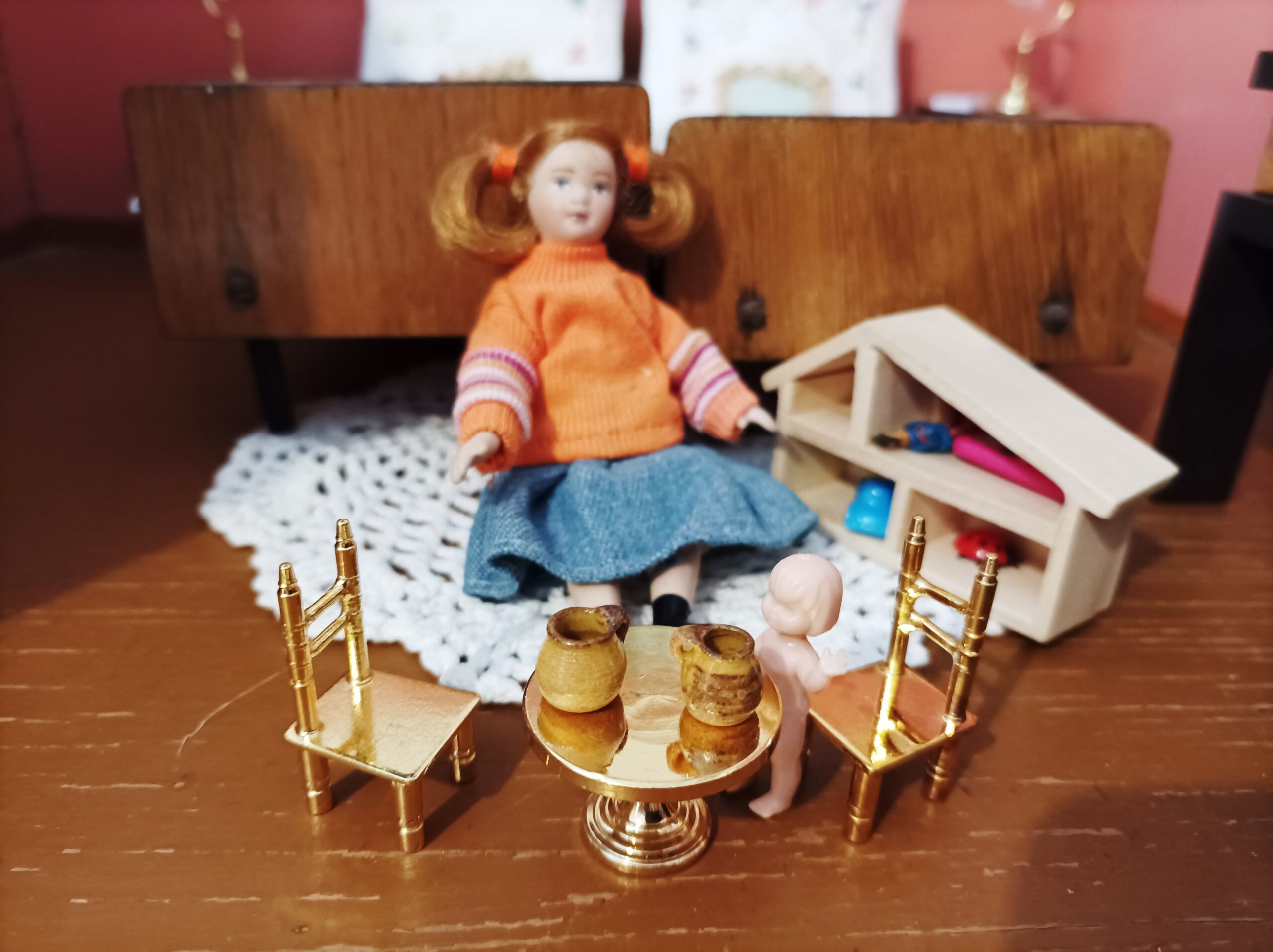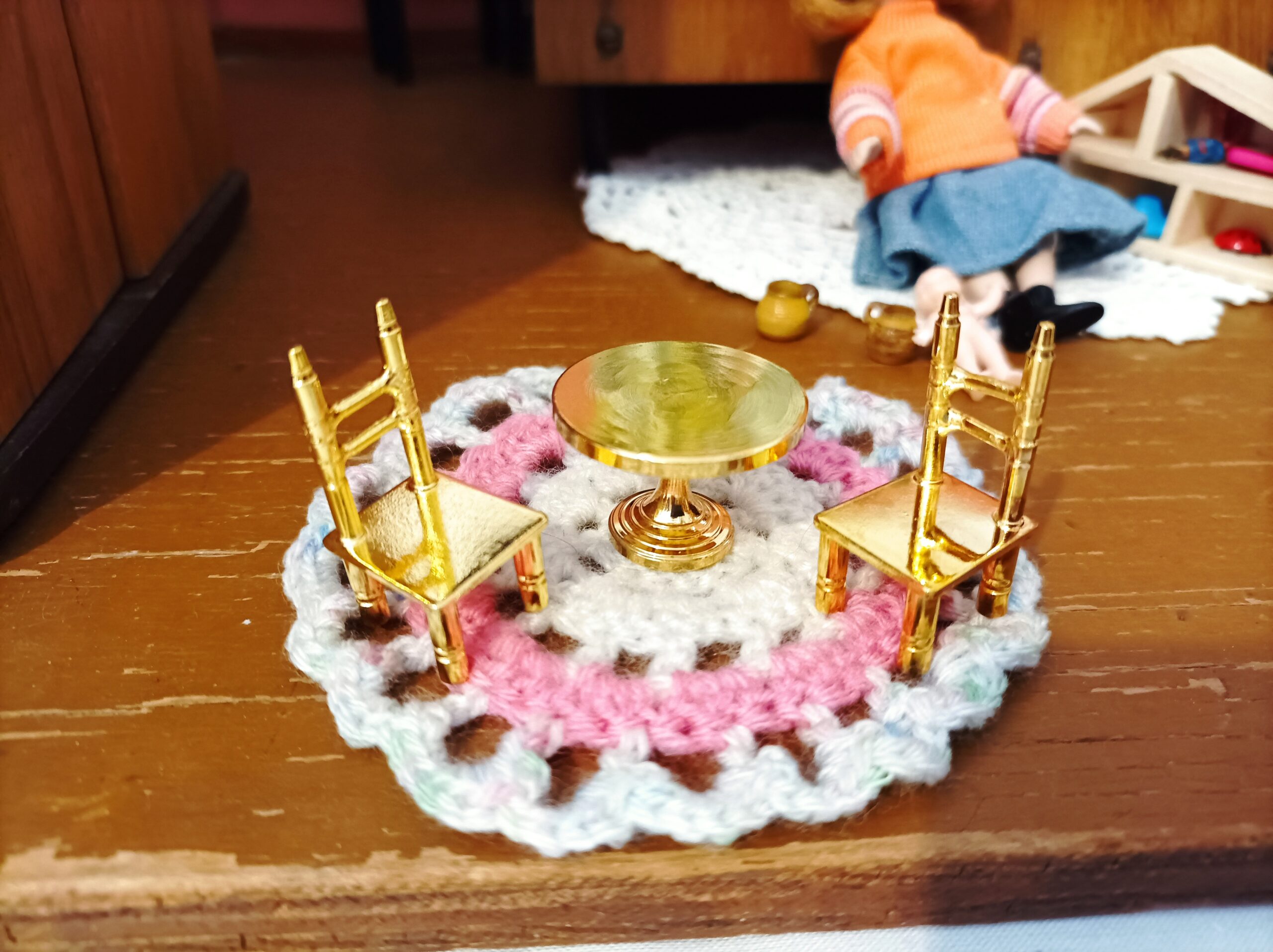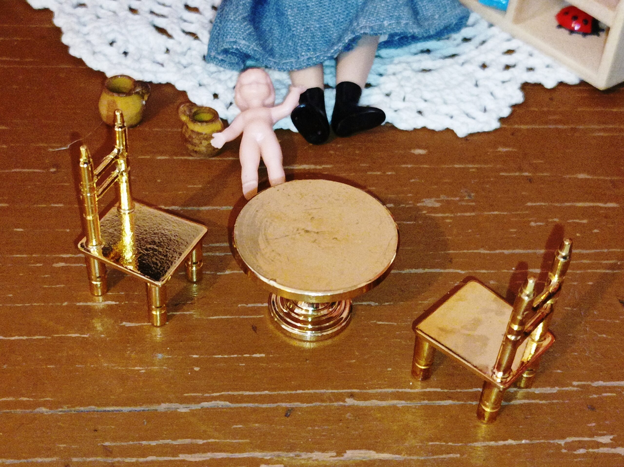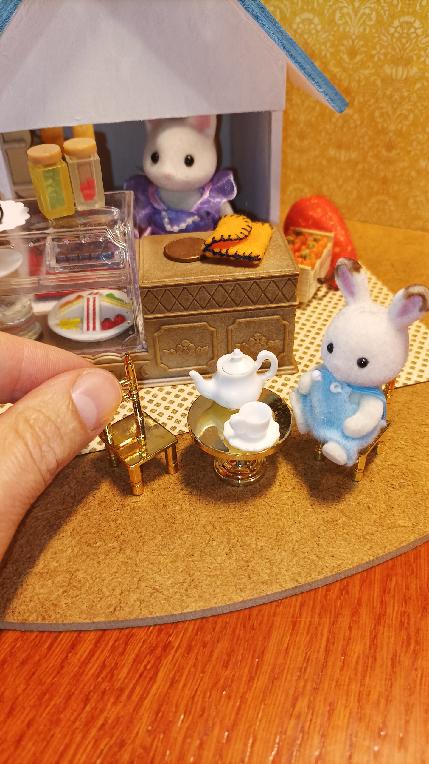 Na posledním ilustračním fotu můžete vidět, že i když je toto zlaté posezení velmi malé, vejde se na něj králíček od Sylvanian Family.
