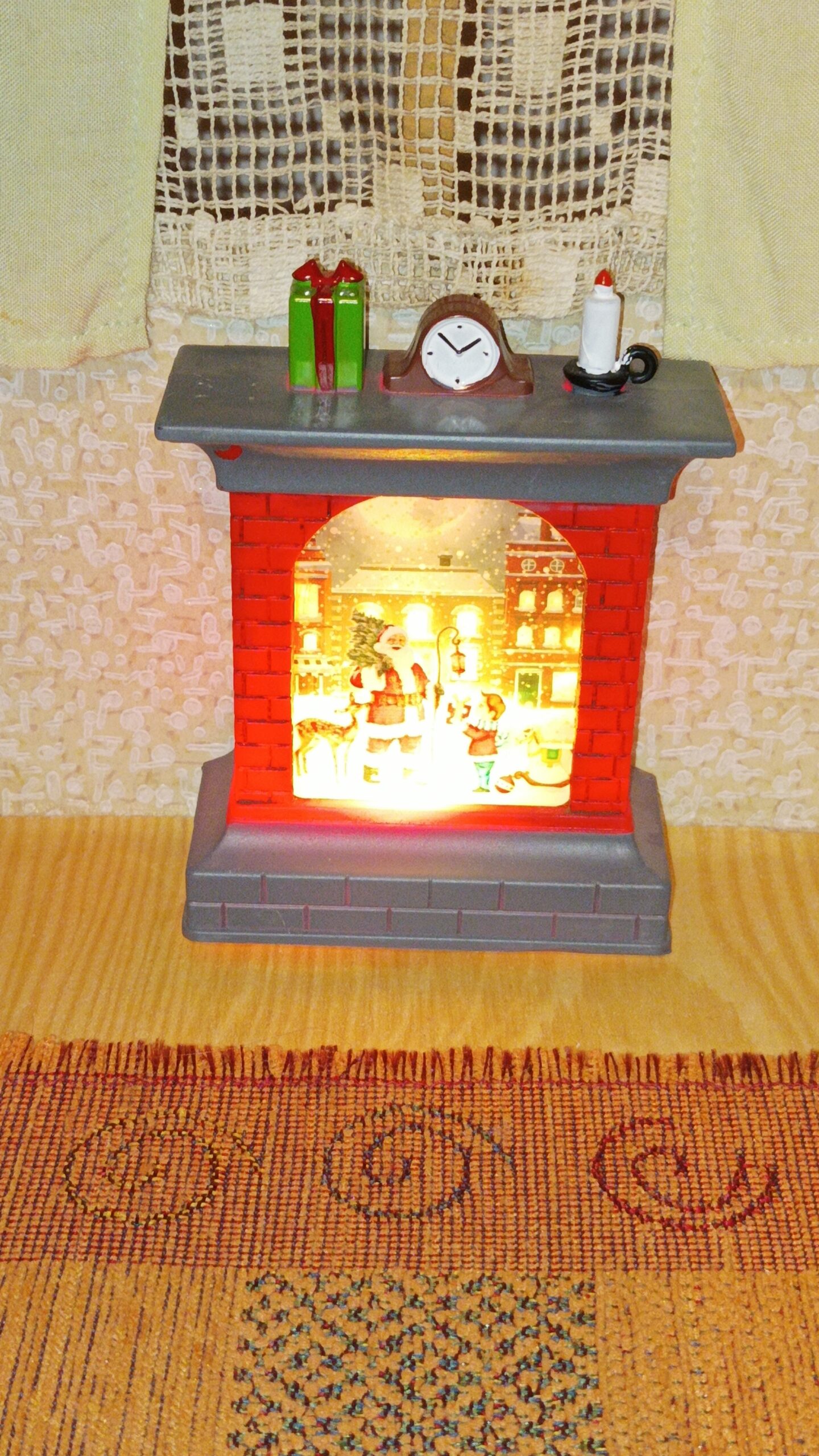 Svítící krb s motivem Santy