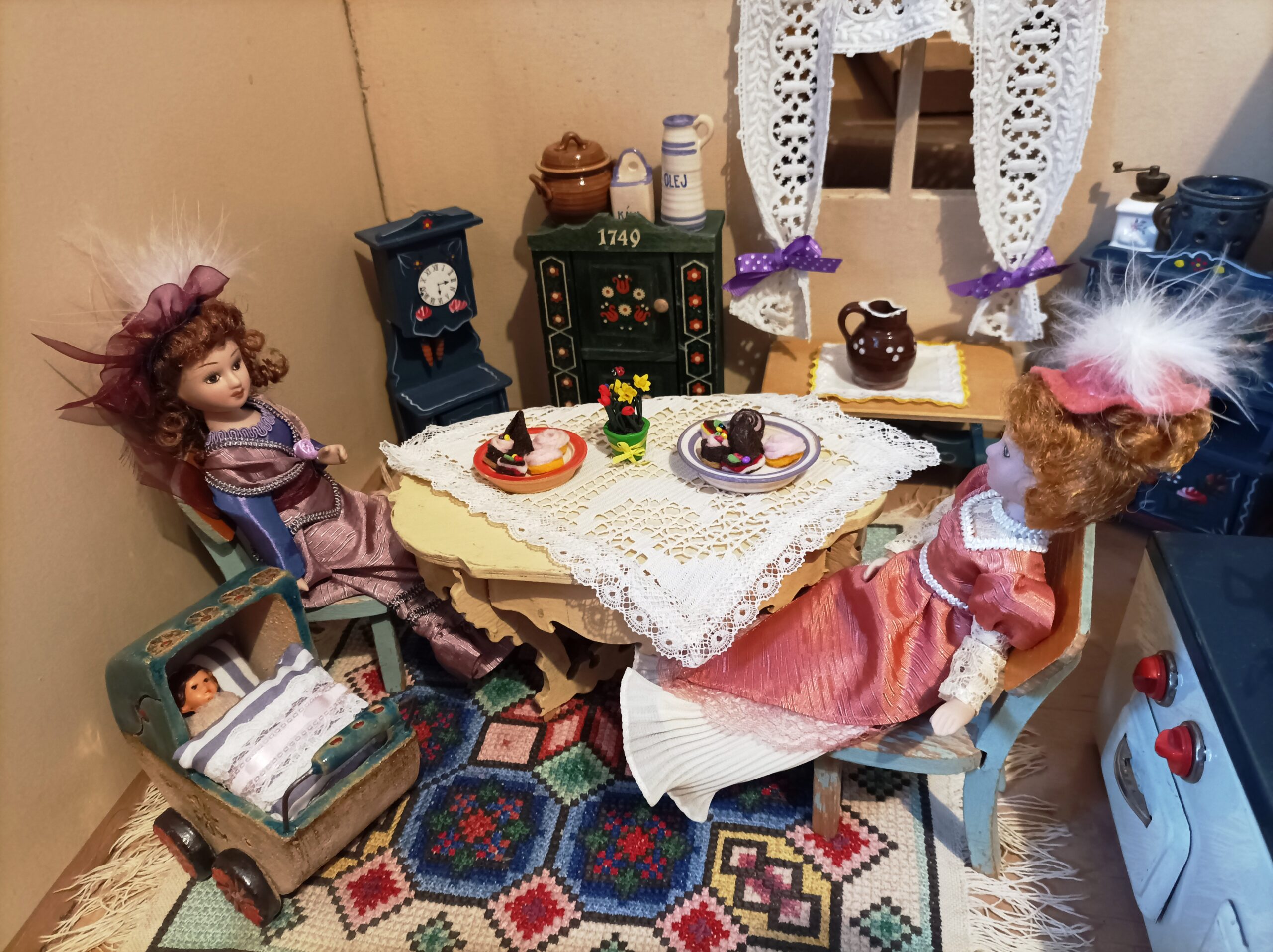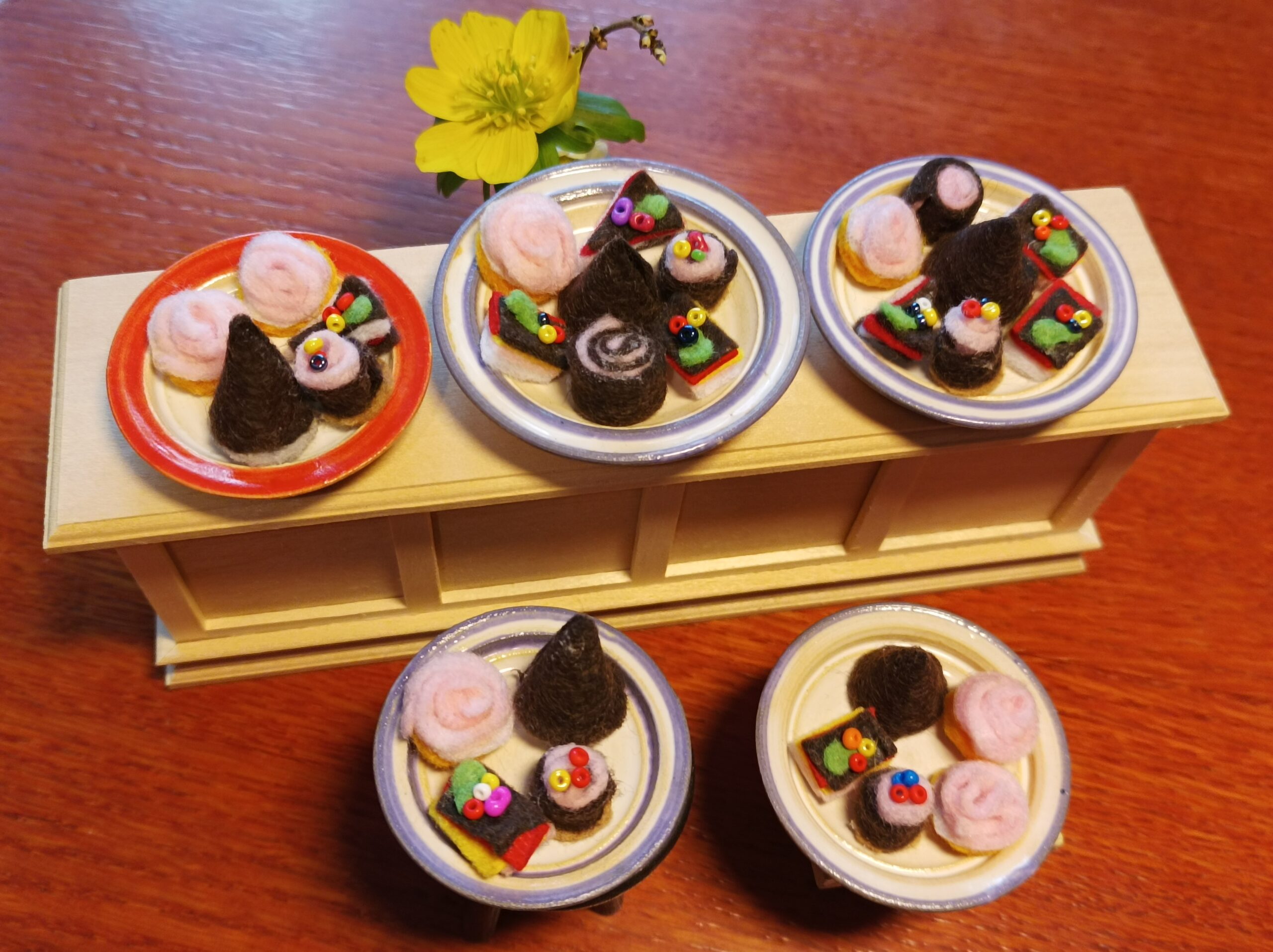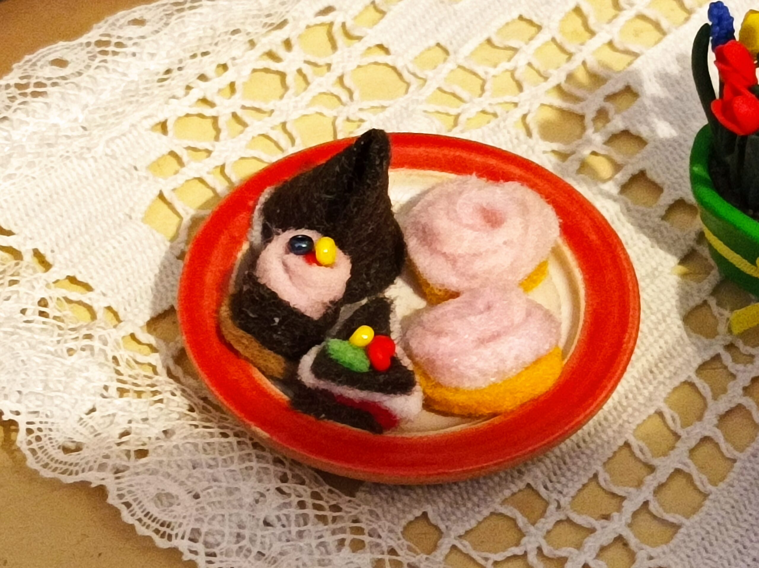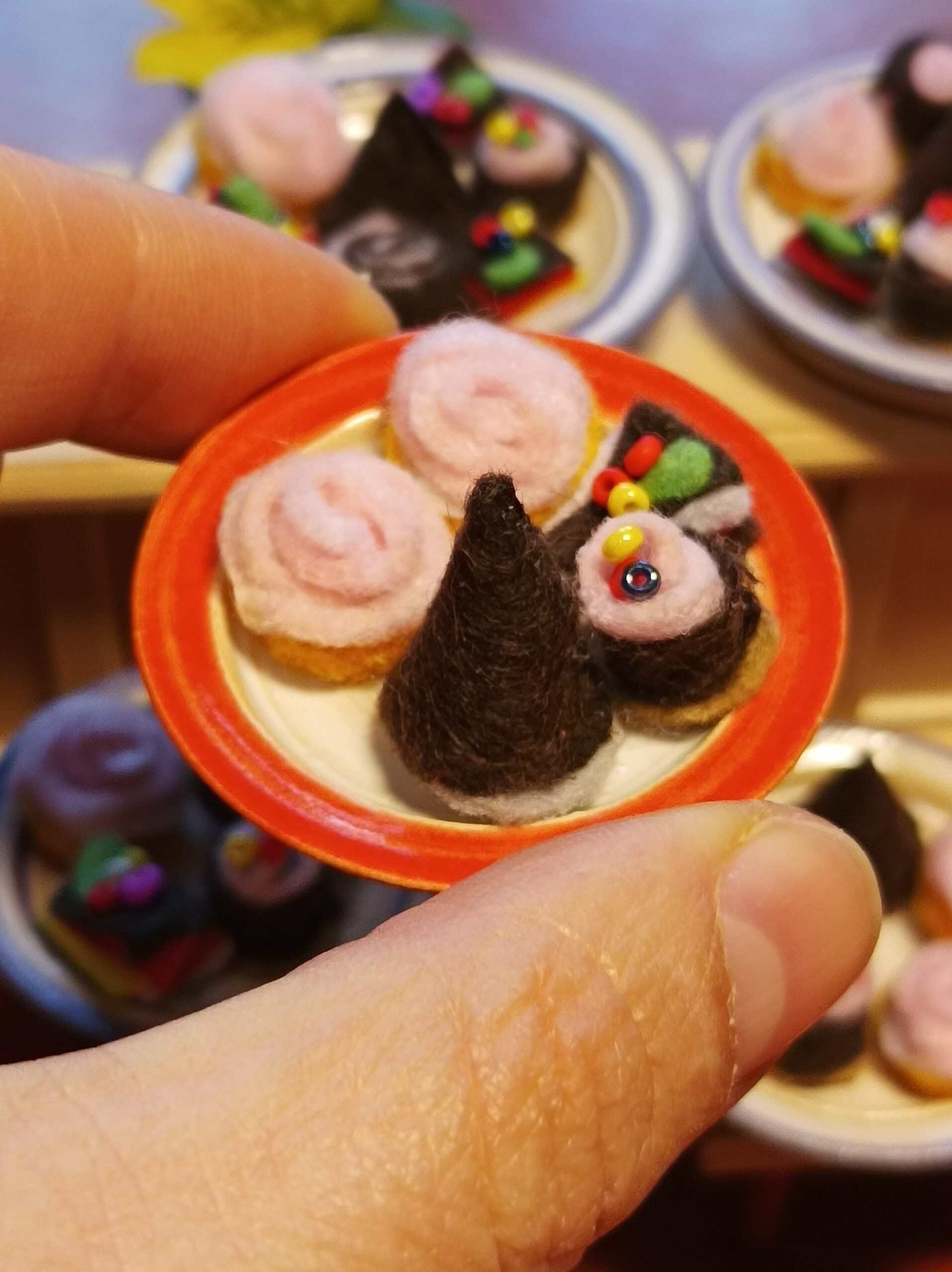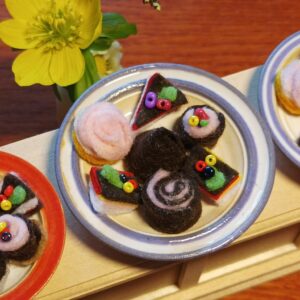 Dortíky jsou vyrobeny z filce. Na talířku jsou volně položeny.