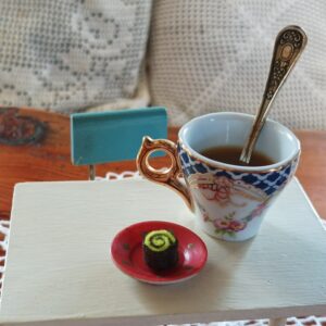 výška: asi 5 cm materiál: slída, alobal Hezký doplněk do obchůdků, cukrárniček i pokojíčků. Bonbónky jsou jenom ´jako´. Liší se barvou mašliček – náhodný výběr.