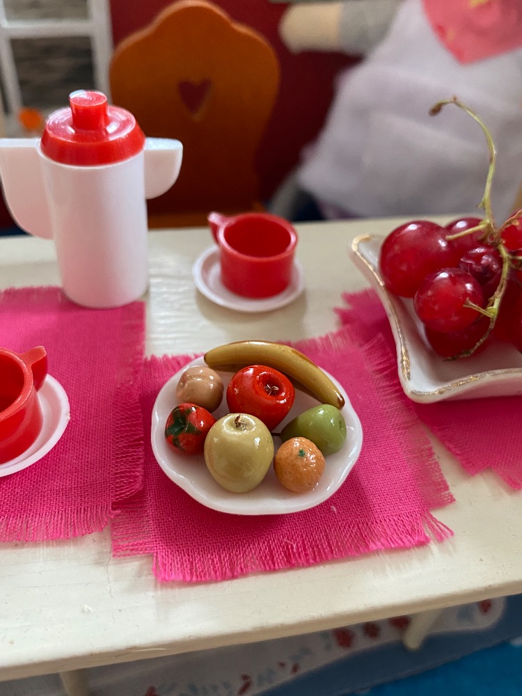 Záclonka do domečku pro panenky šířka: 15 cm délka: 15,5 cm Prodáváme 2 kusy, které se liší jen barvou korálků na konci konzole – zelené…