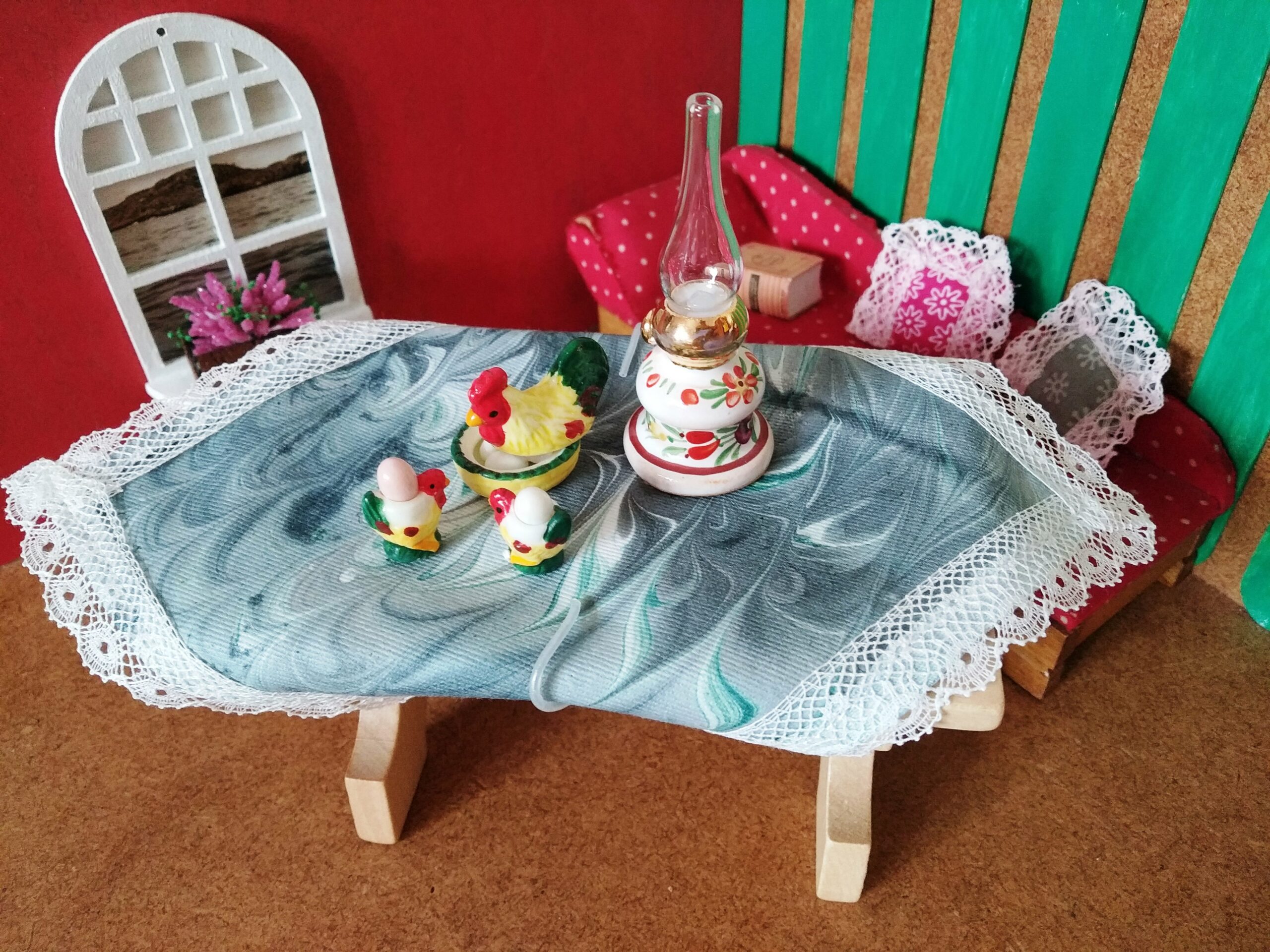 Záclonka do domečku pro panenky šířka: 17,5 cm délka: 16 cm Prodáváme 2 kusy, které se liší jen barvou korálků na konci konzole – červené a žluté.…