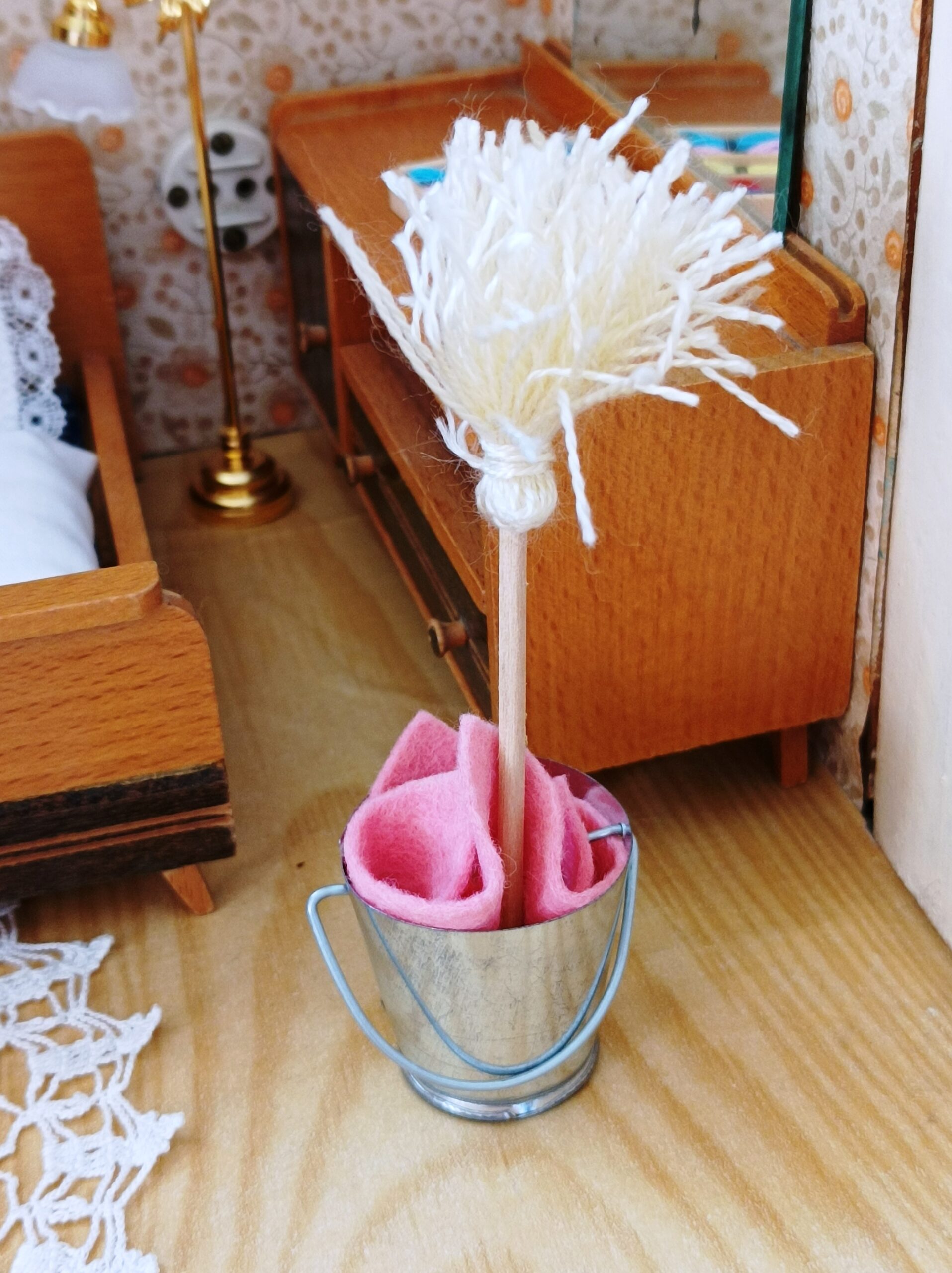 Sada obsahuje kýbl, mop (délka 10 cm) a hadr