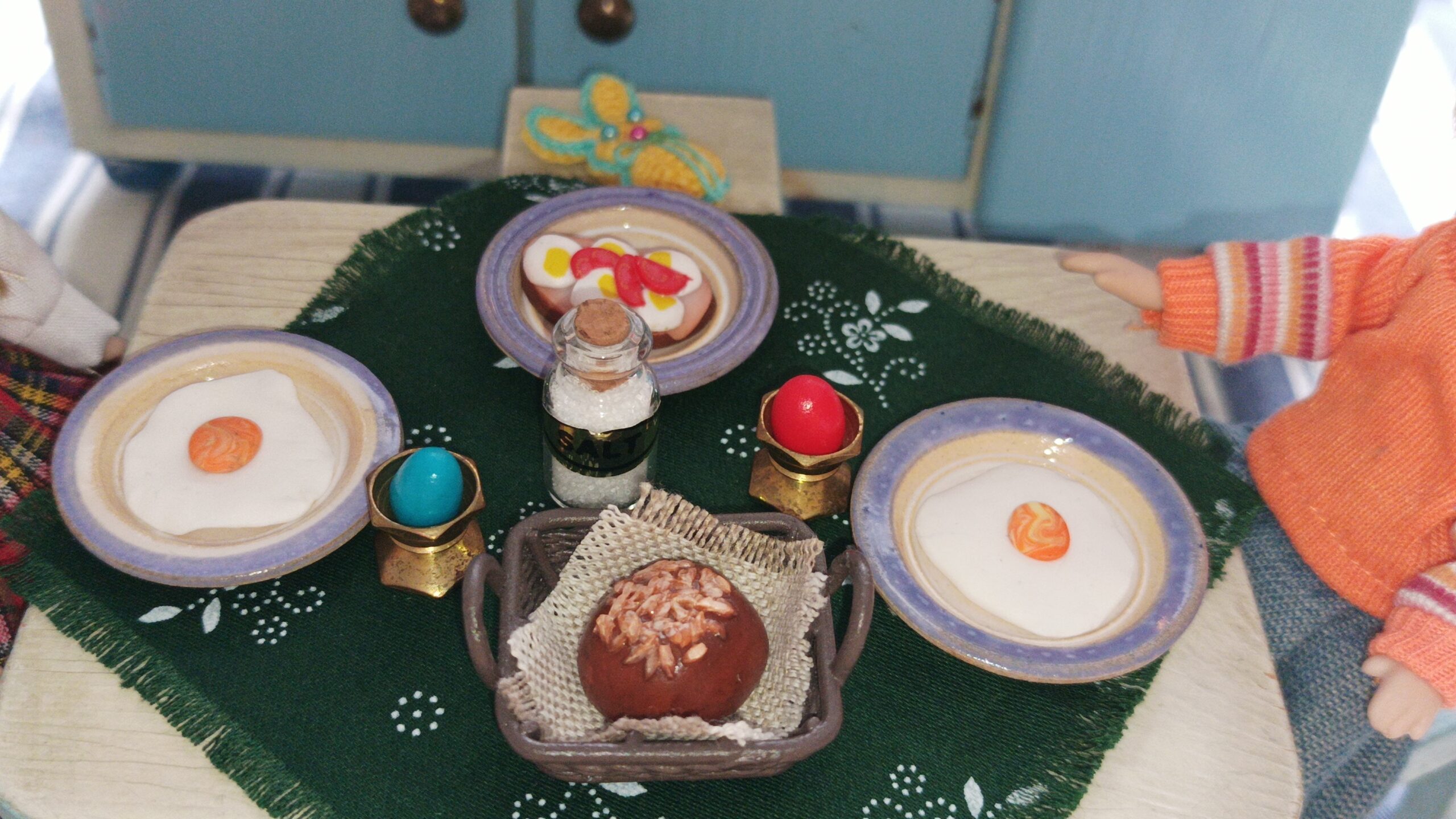 Vajíčka jsou vyrobena z Fimo hmoty.