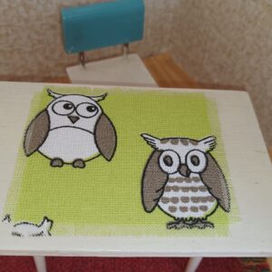 Záclonka do domečku pro panenky šířka: 17,5 cm délka: 16 cm Prodáváme 2 kusy, které se liší jen barvou korálků na konci konzole – červené a žluté.…